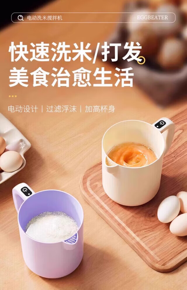 Solista Joyoung's new electric egg beater home kitchen egg whisk cup filter cup rice washing rice mixer warm beige electric stirring / type-c charging