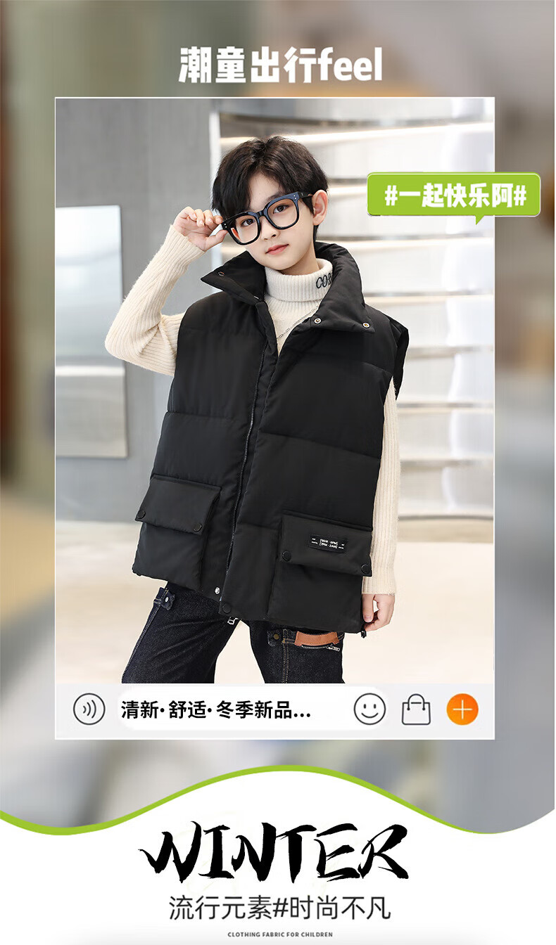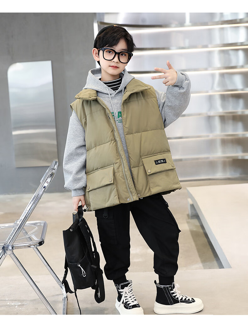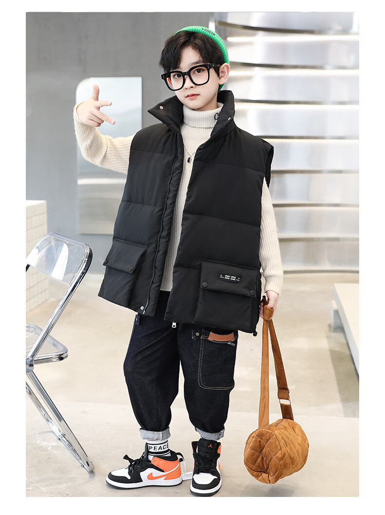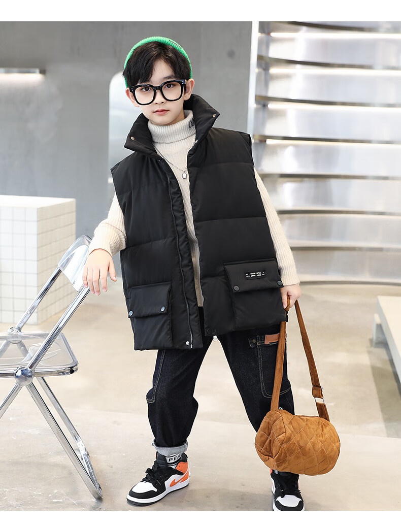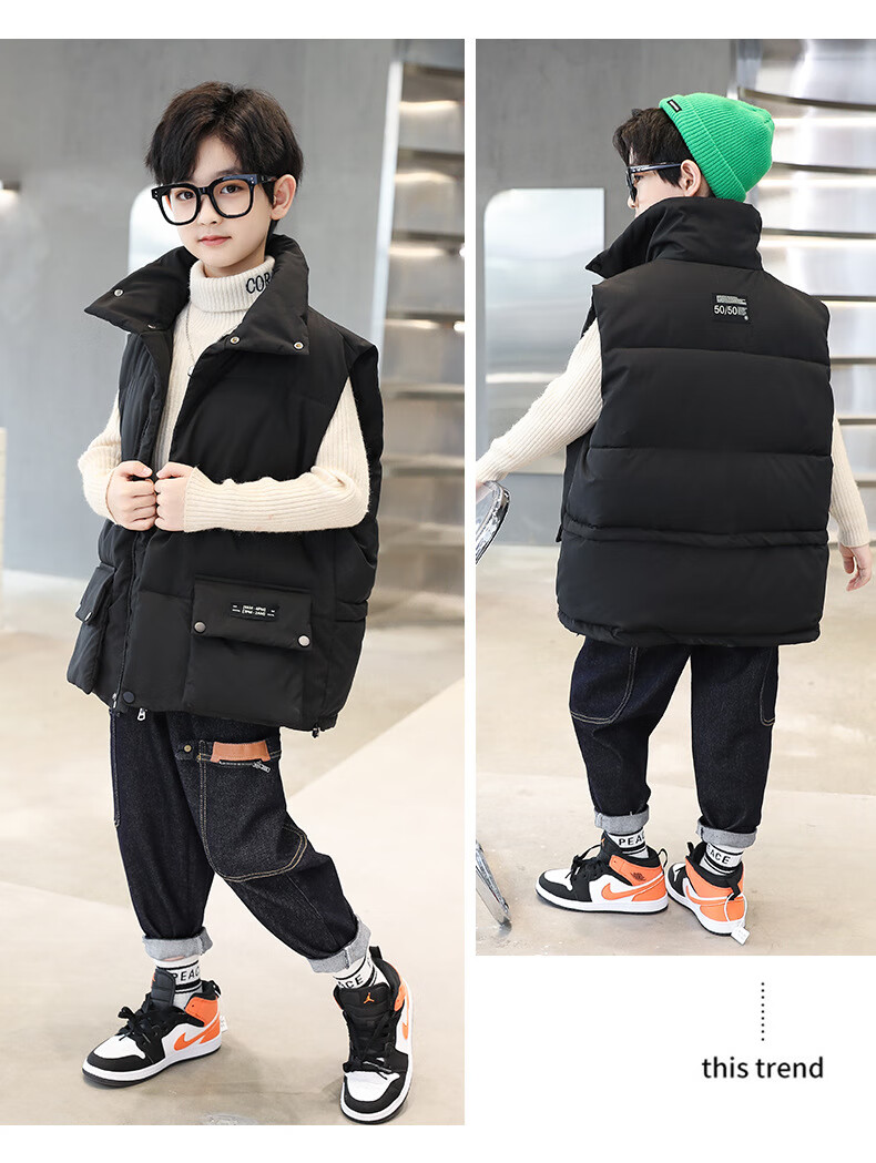 Disney boys' vest autumn and winter 2025 new winter fashionable outer vest medium and large children's warm thickened casual jacket black 130 cm