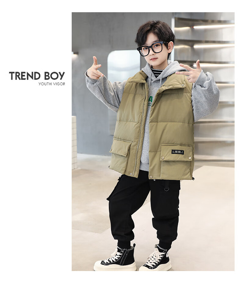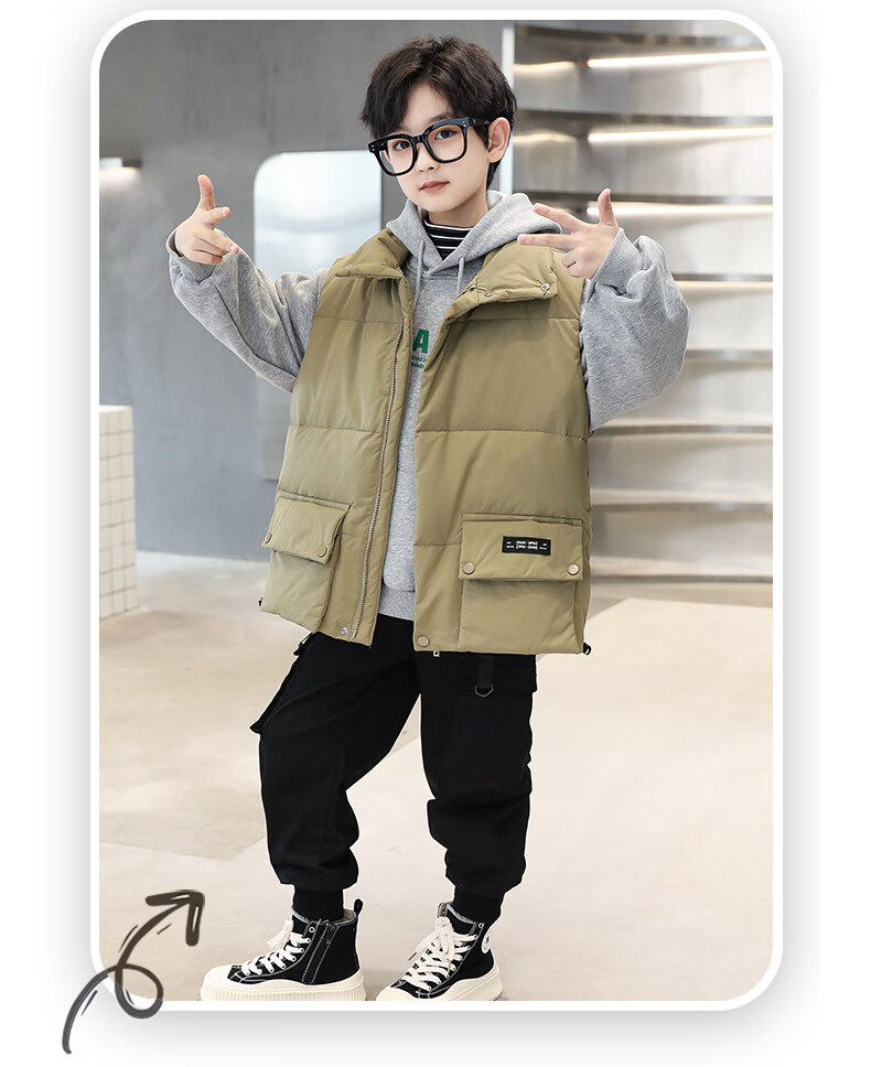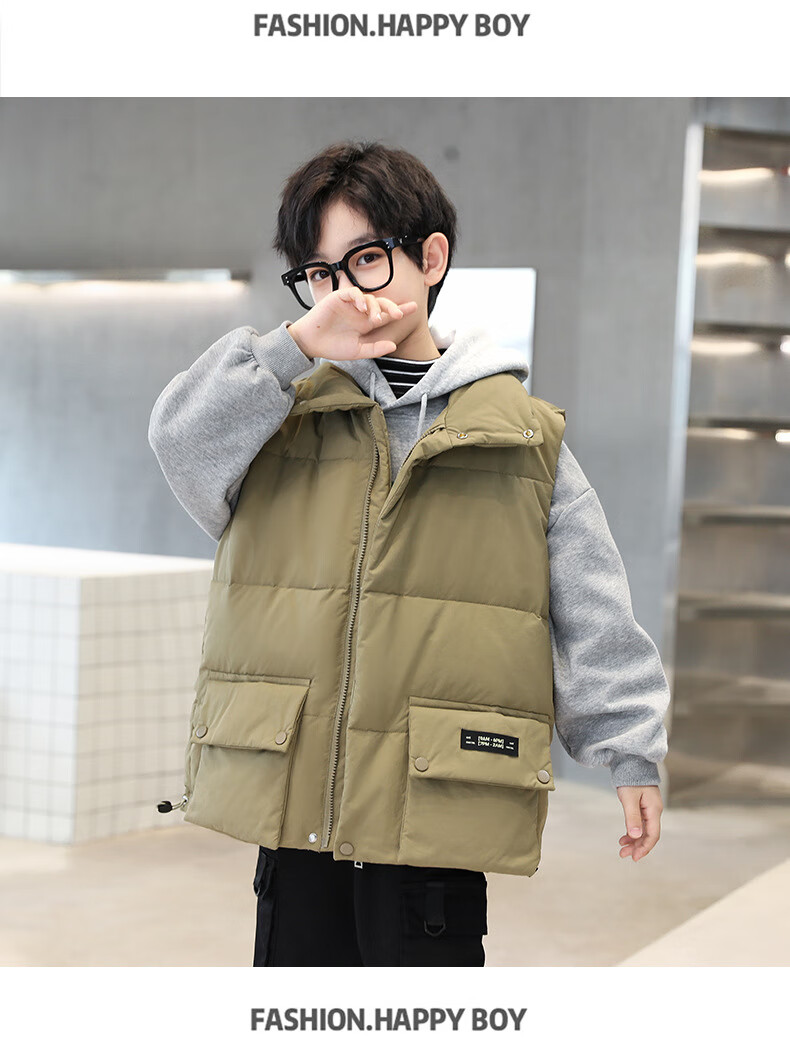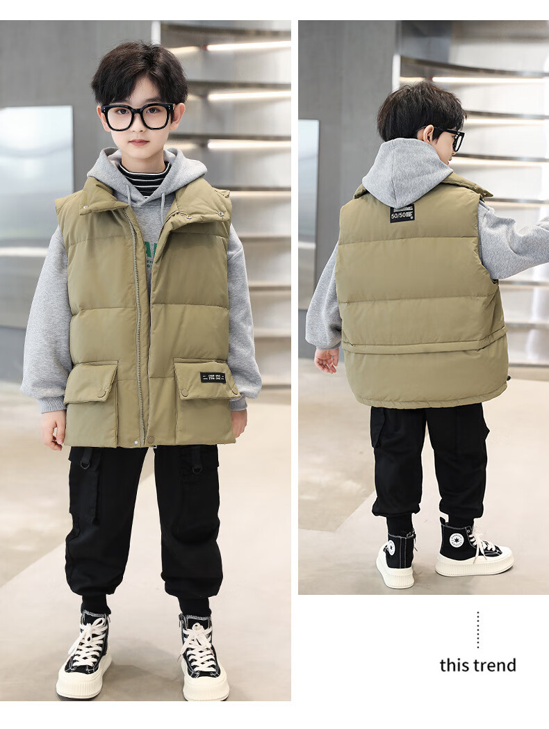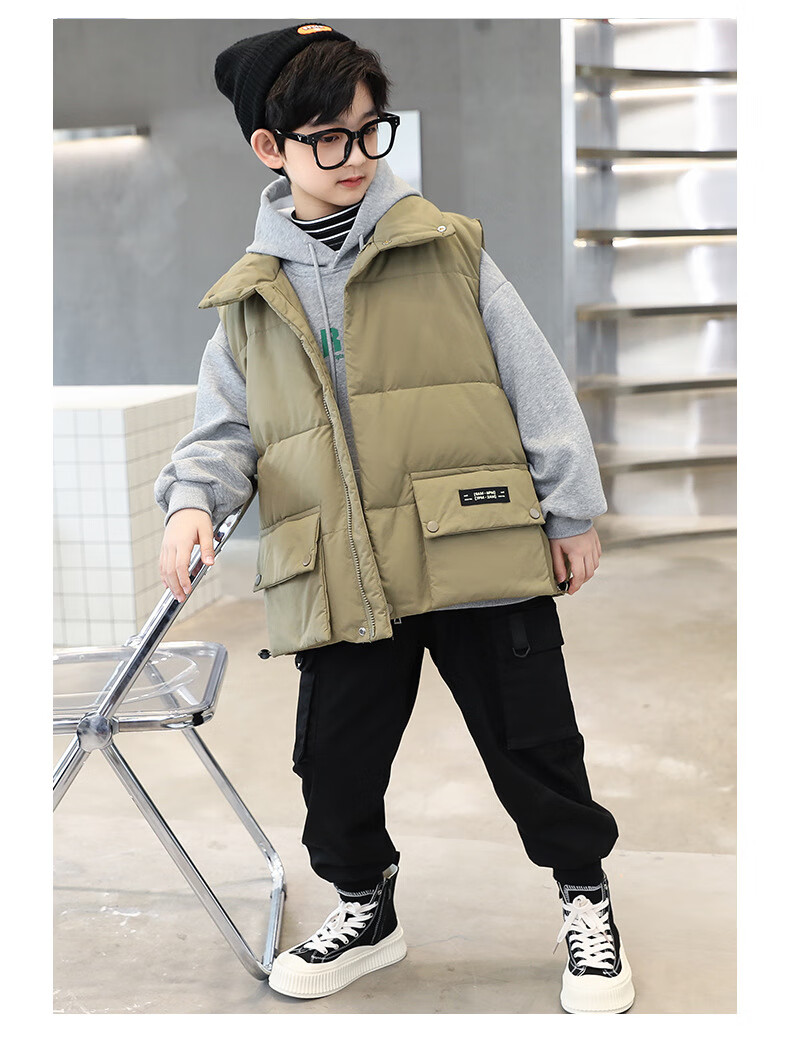 Disney boys' vest autumn and winter 2025 new winter fashionable outer vest medium and large children's warm thickened casual jacket black 130 cm