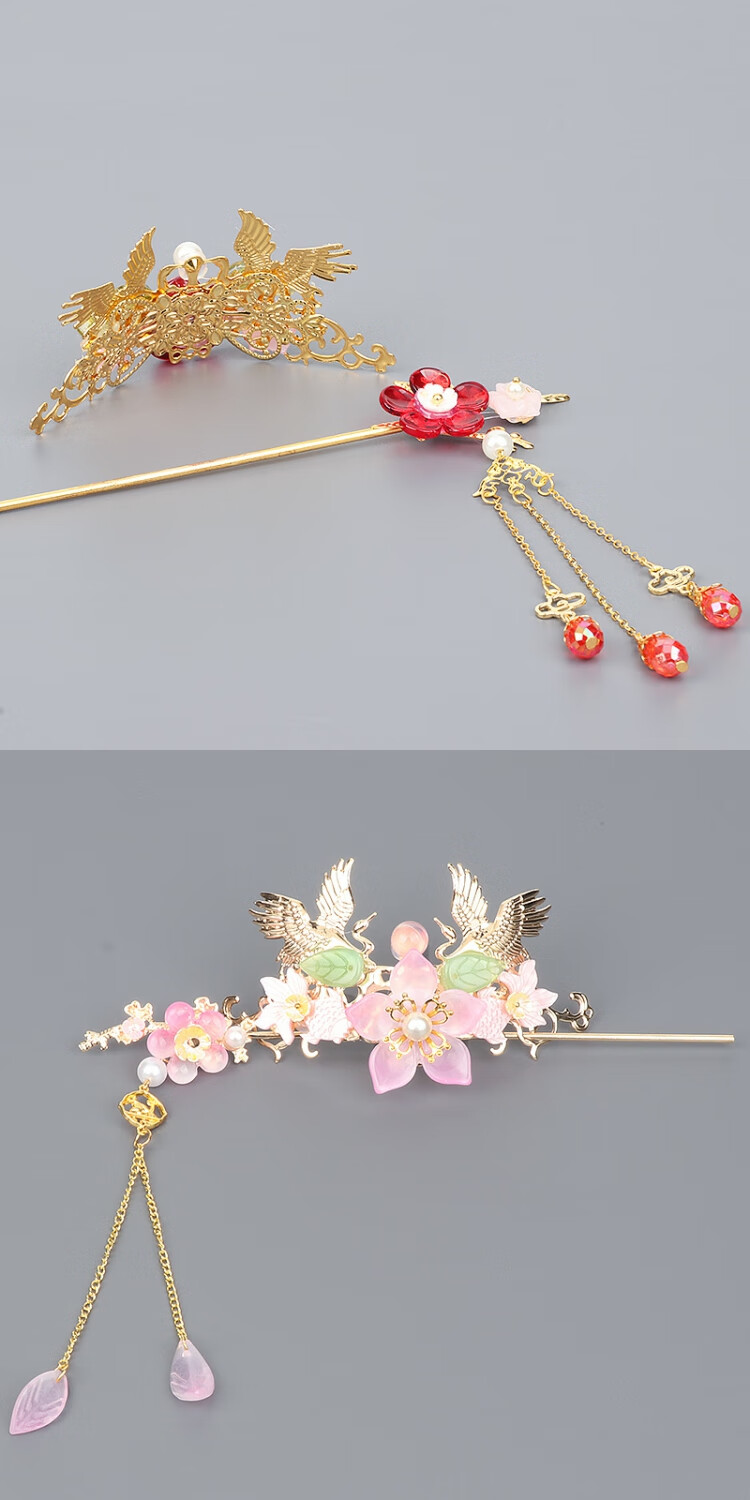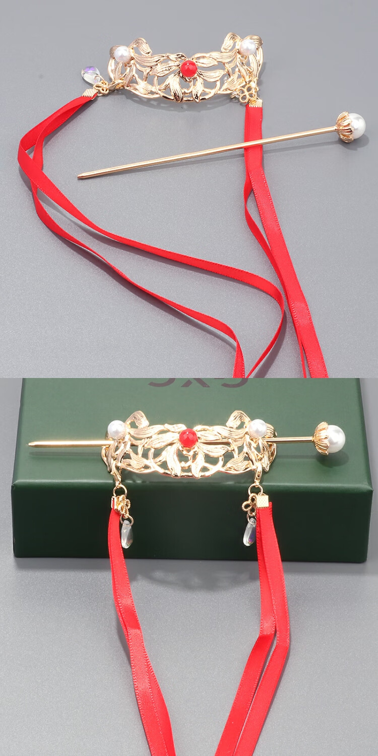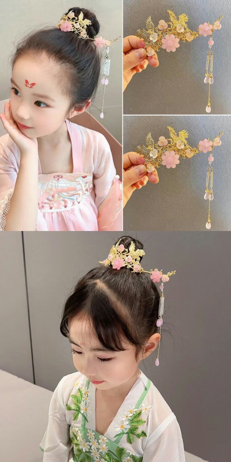 Qimei Love New Year Children's Hanfu Hair Accessories Ancient Style Step Princess Hairpin Girls Chinese Style Red Tassel Ball Hair Crown 2 Hair Crowns Red Ribbon Style