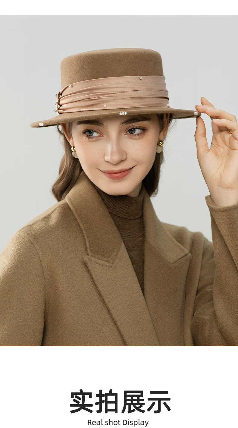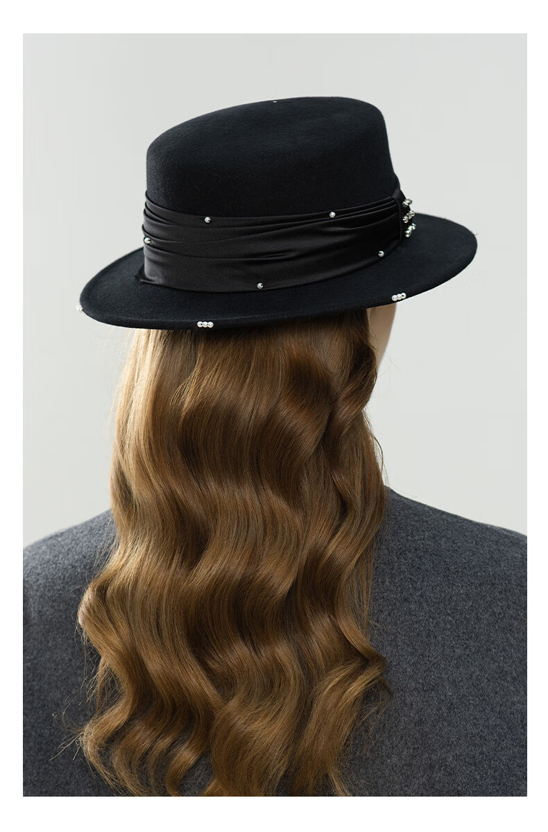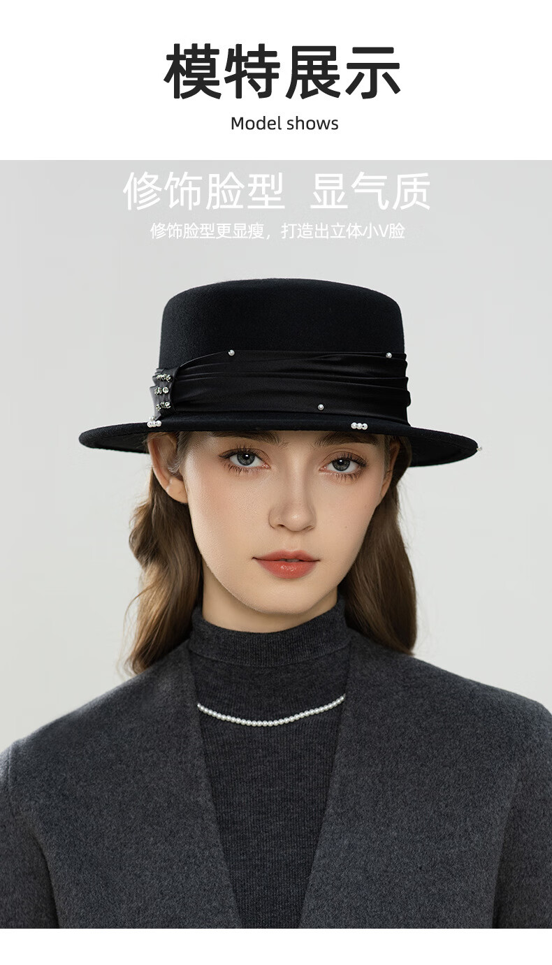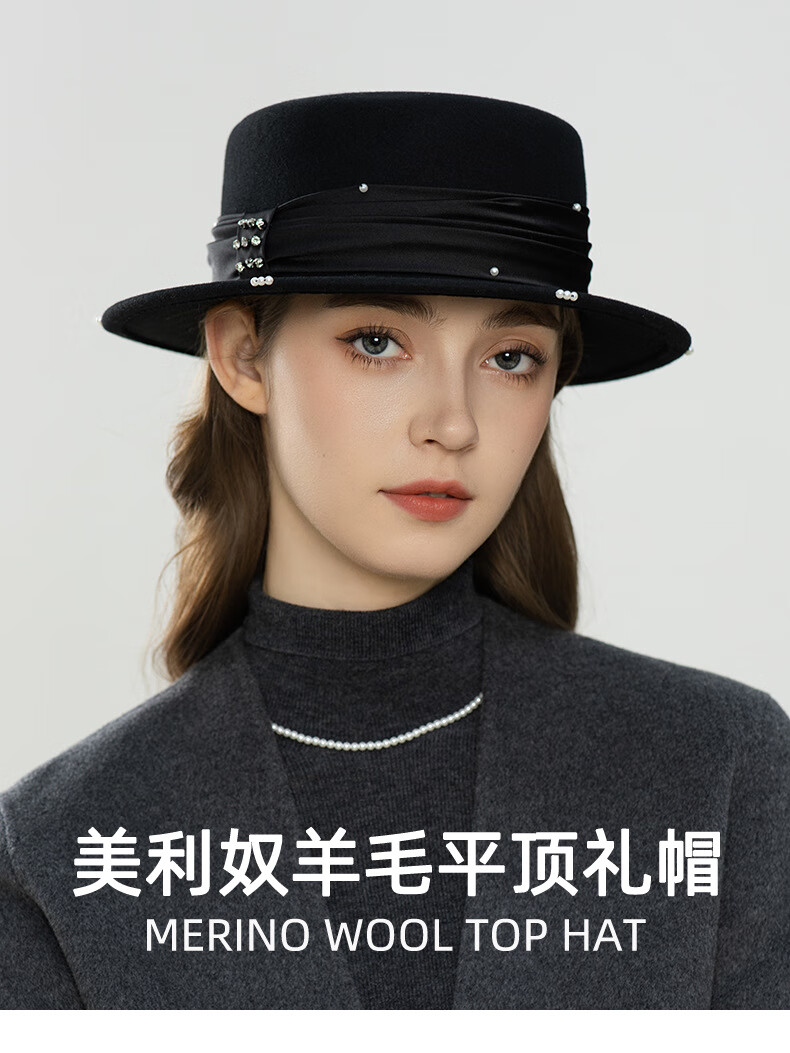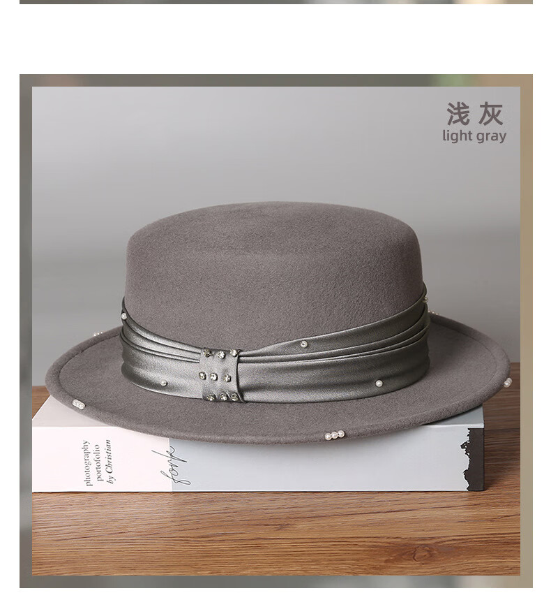 GEFWEIMKL French Pearl Bow Flat Top Women's Hat Autumn and Winter New Merino Wool Felt Hat Hepburn Style Hat Women Light Gray One Size (56-58cm)