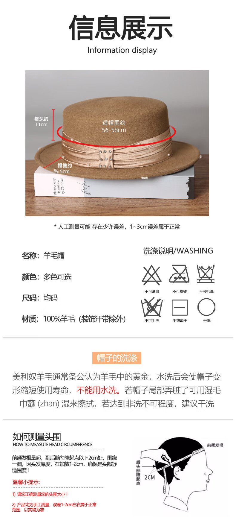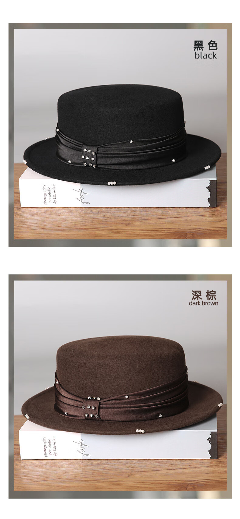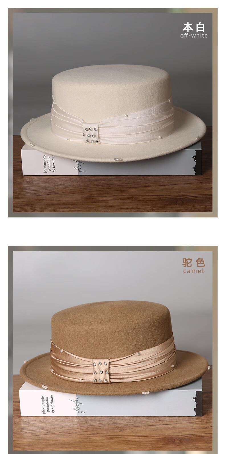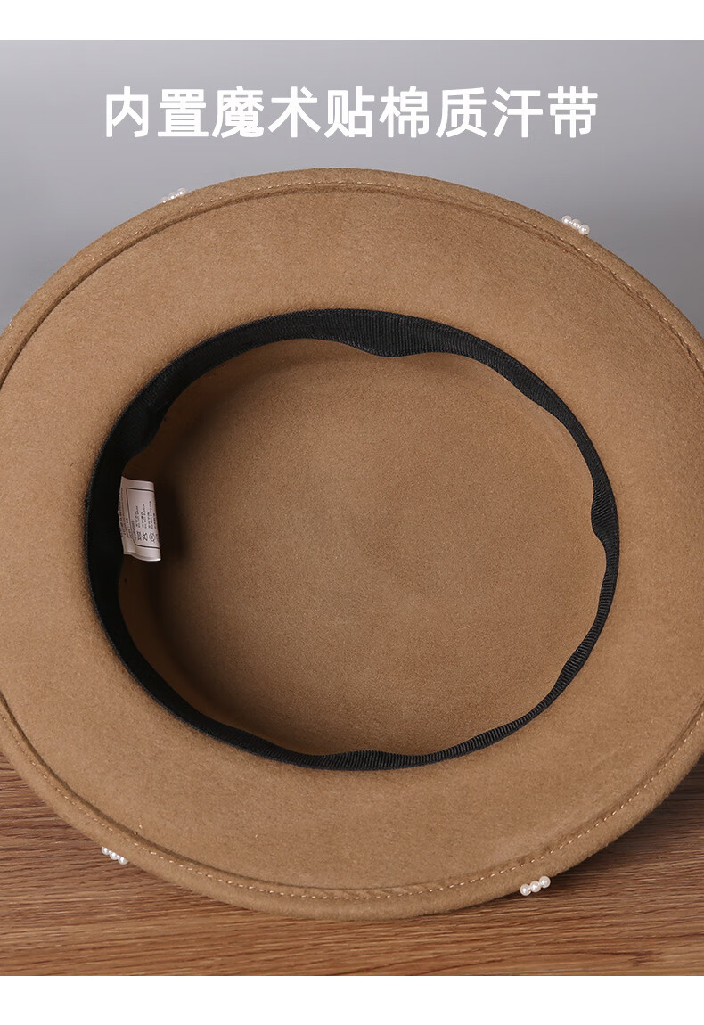 GEFWEIMKL French Pearl Bow Flat Top Women's Hat Autumn and Winter New Merino Wool Felt Hat Hepburn Style Hat Women Light Gray One Size (56-58cm)