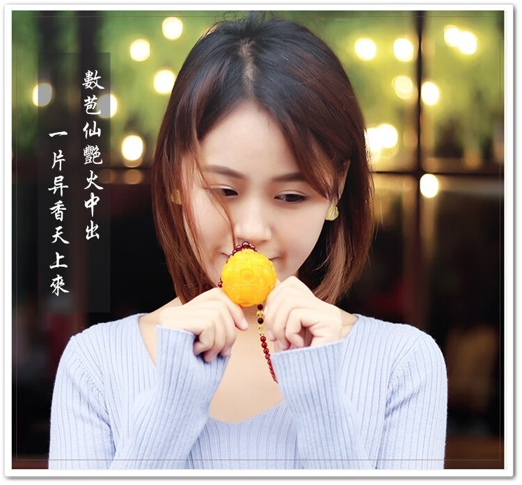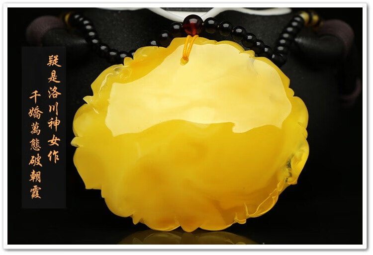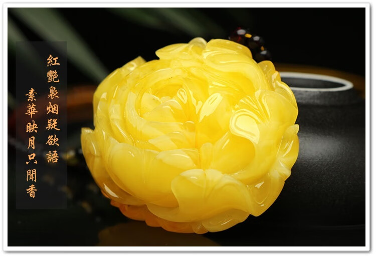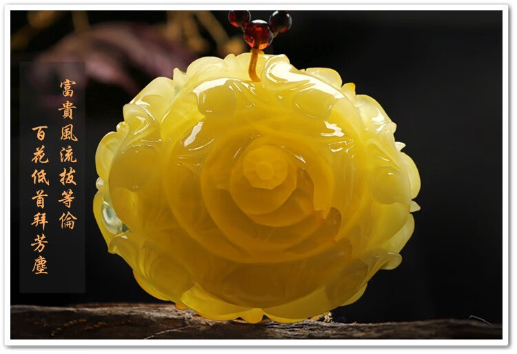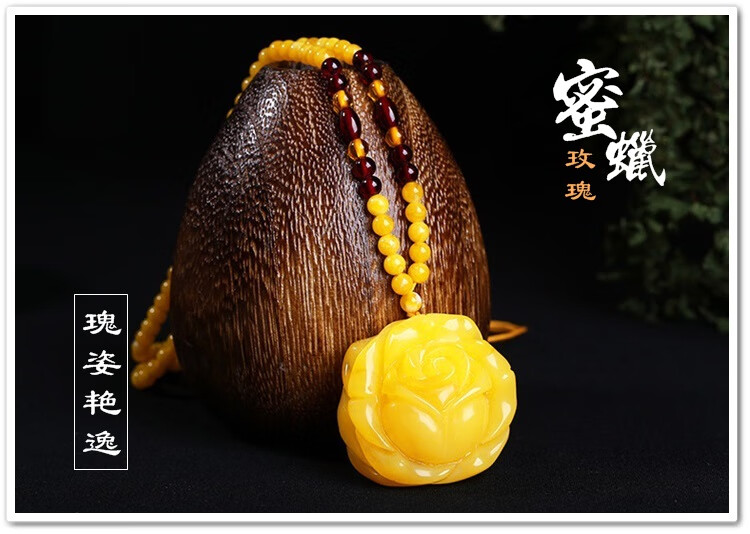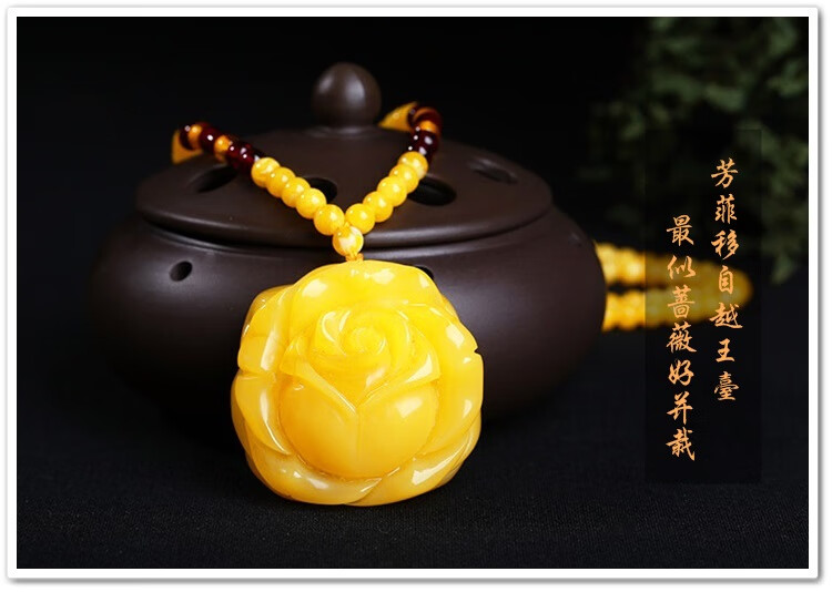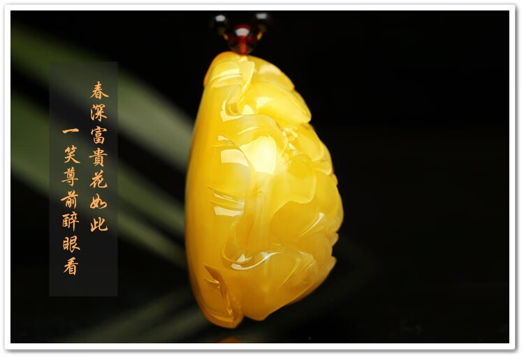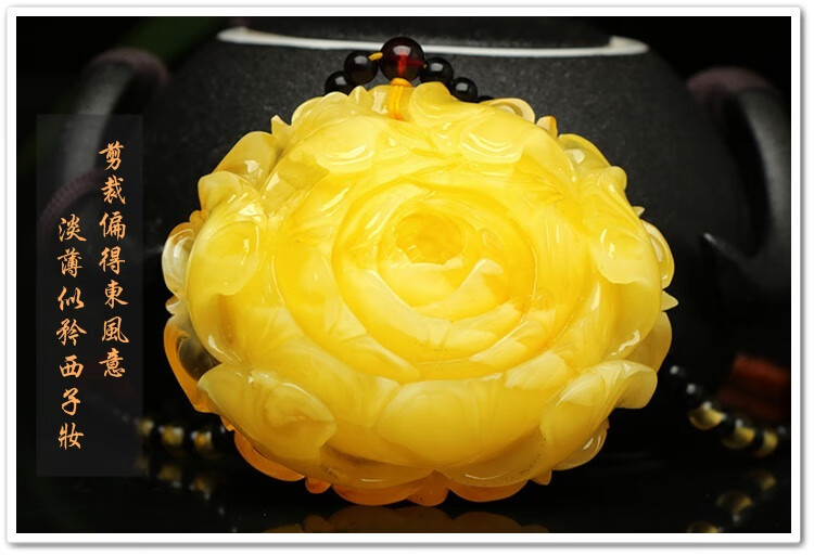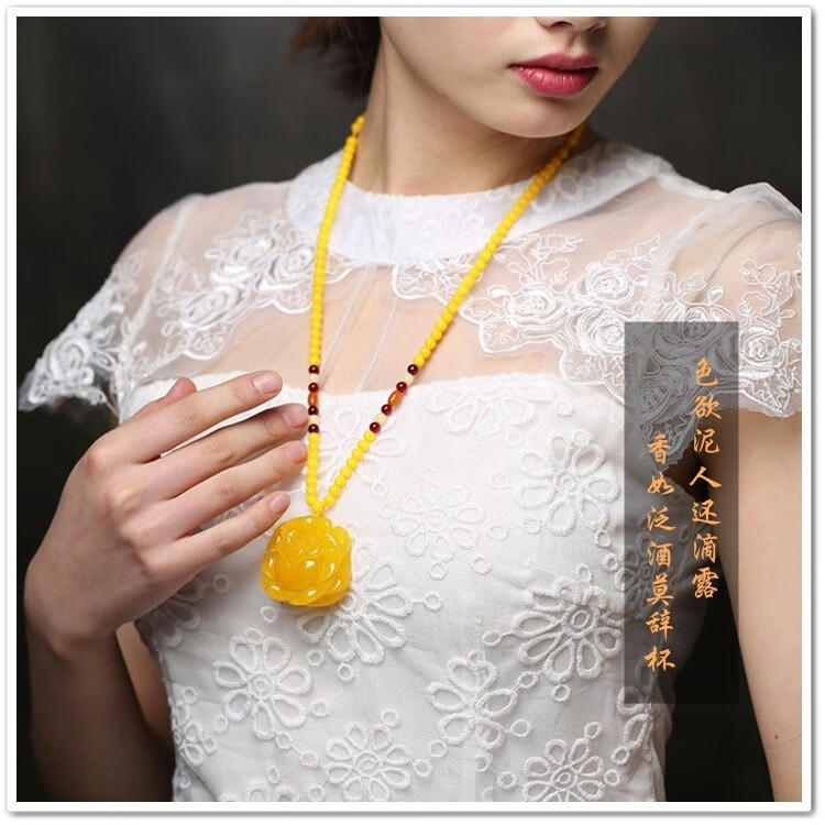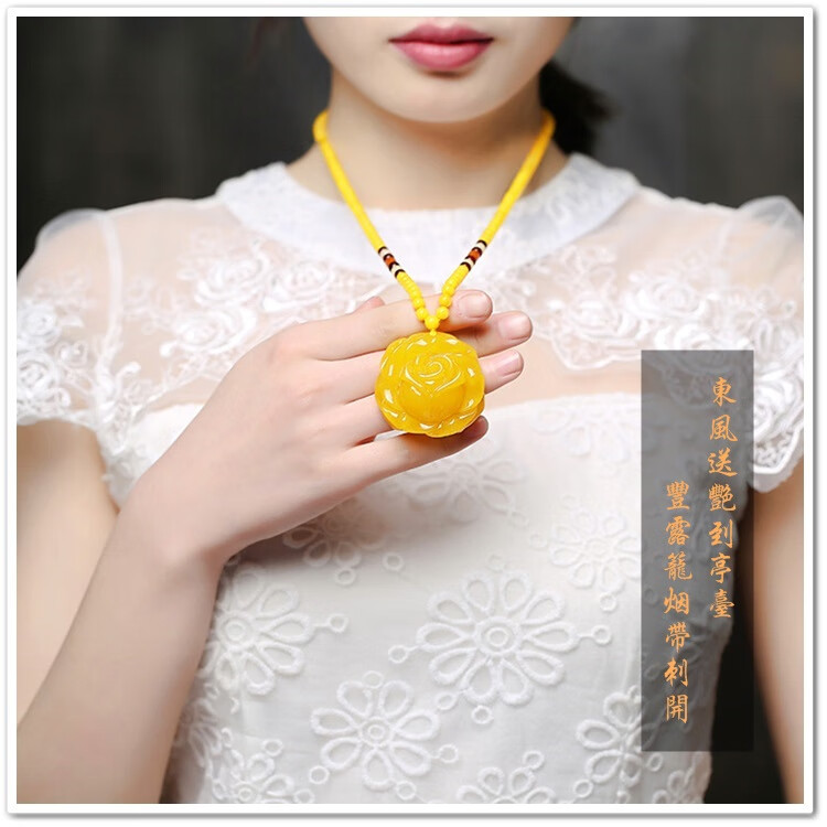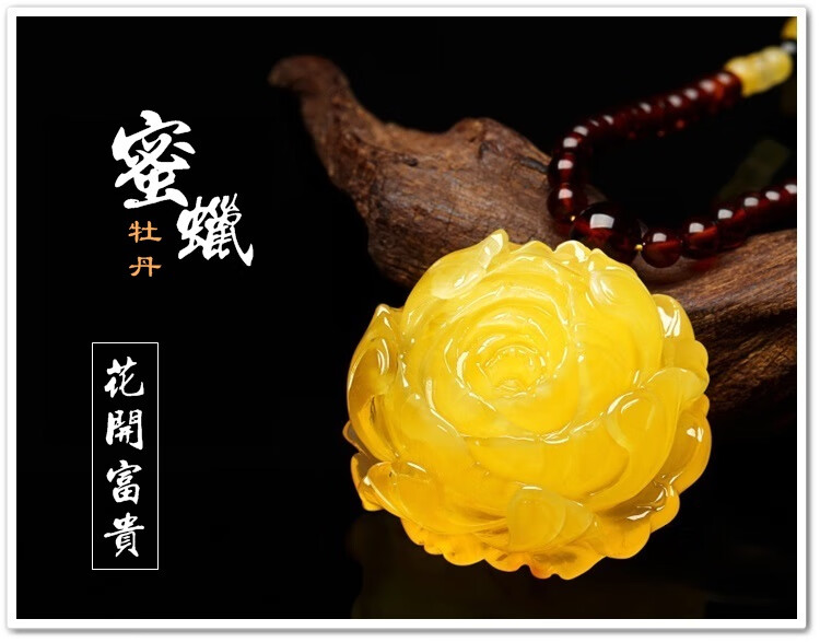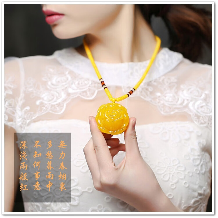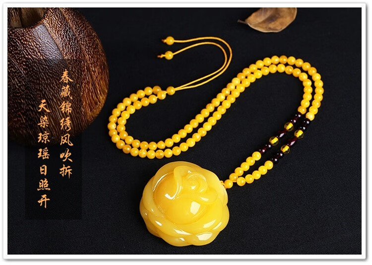 Buhesyt Baltic Sea natural amber beeswax chicken oil yellow peony rose pendant women's long sweater chain with certificate peony style