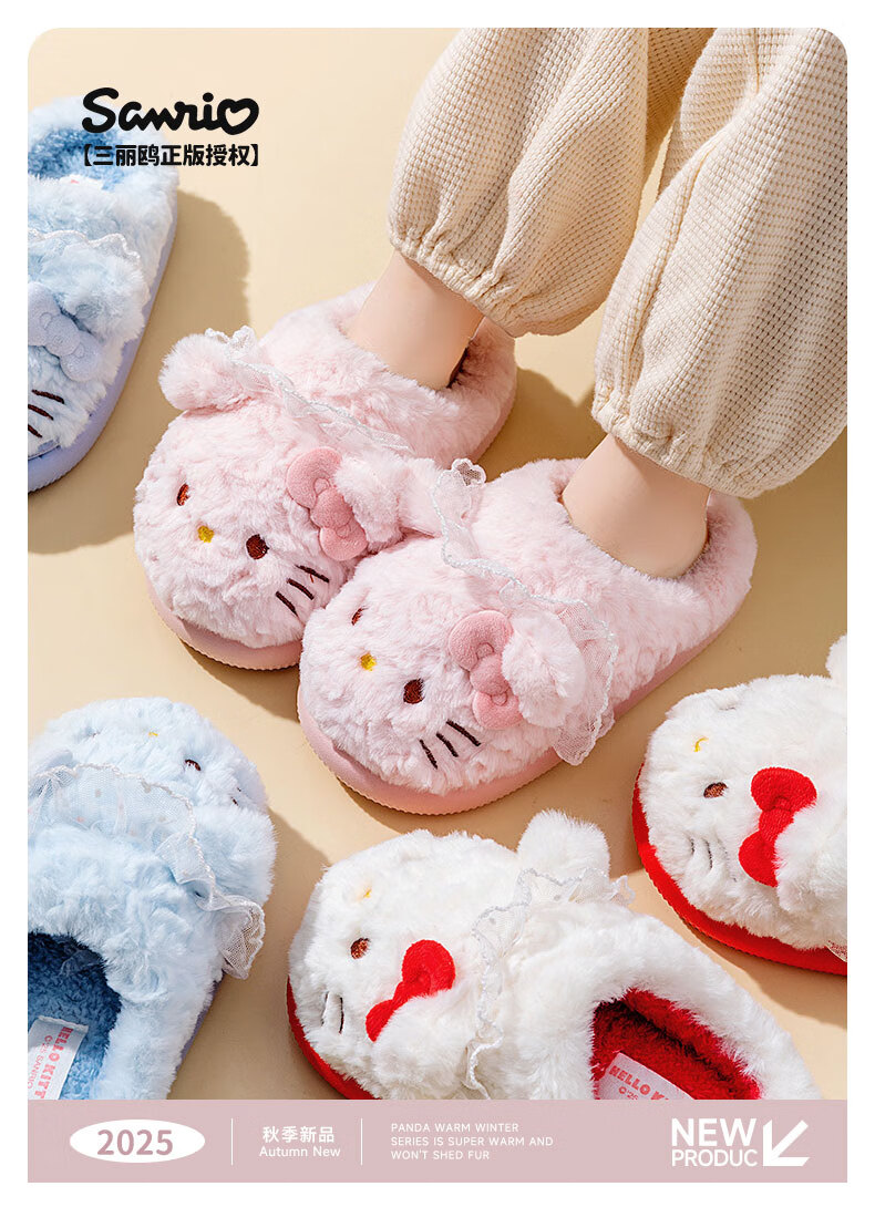 Pig Daddy Melody Children's Cotton Slippers Girls Autumn and Winter New Home Indoor Non-Slip Girls Sanrio Parent-Child Slippers Pink Hello Kitty Sanrio Genuine Authorization 23 Inner Length 21CM Suitable for Foot Length 20CM