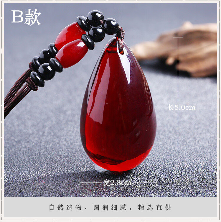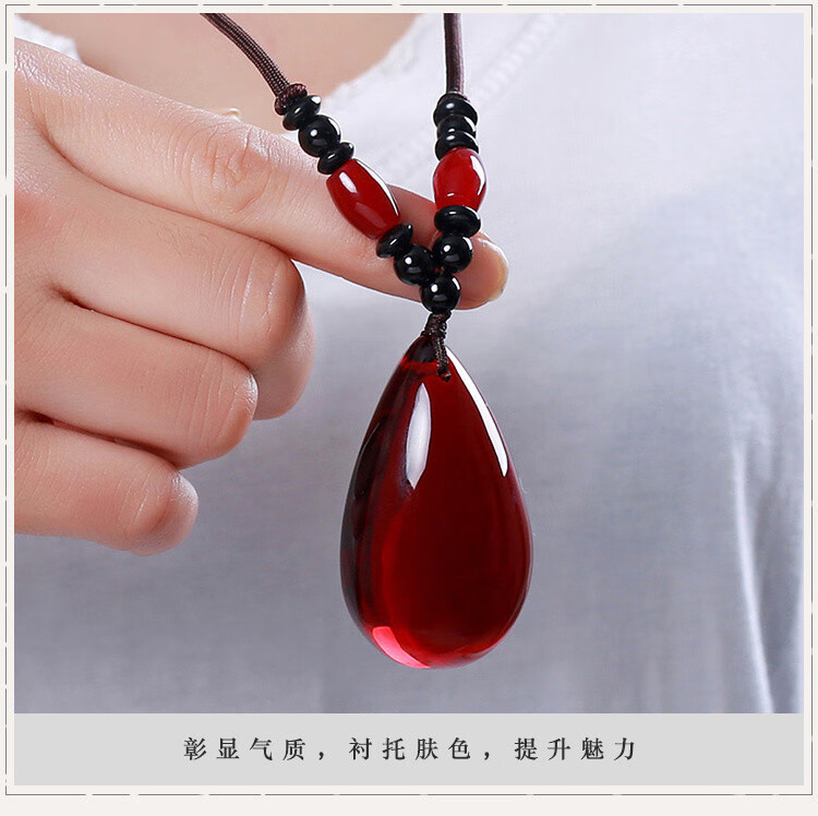 Buhesyt natural blood pool water drop pendant beeswax peace sign pendant for men and women ethnic style amber necklace sweater chain accessories blood amber square sign pendant + lanyard