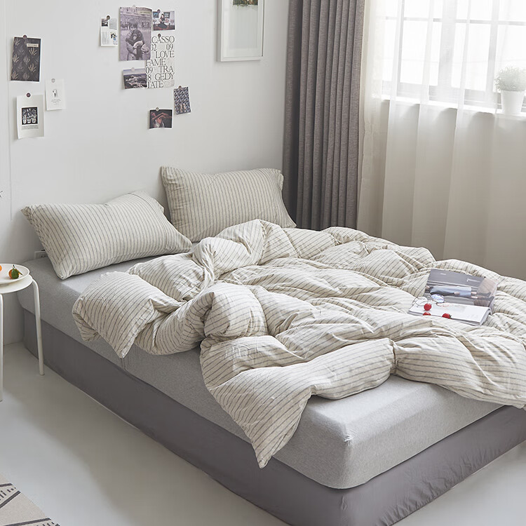 He Jiagong Tianzhu cotton quilt cover single piece pure cotton 1.5x2mx2.3 single 200x230cm220x240 quilt cover 180x200 hemp gray thin strips baby quilt cover single piece 120cm*150cm