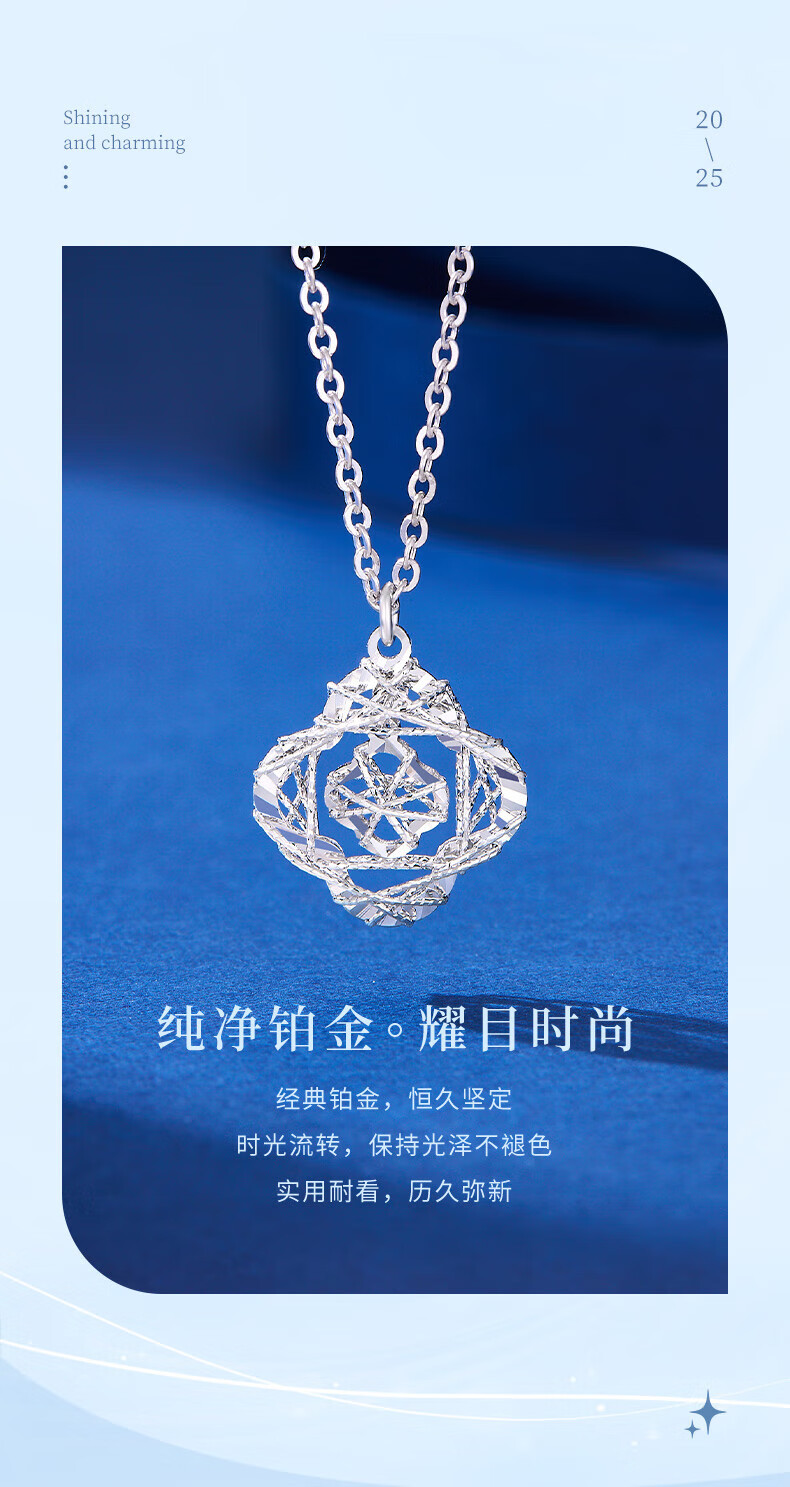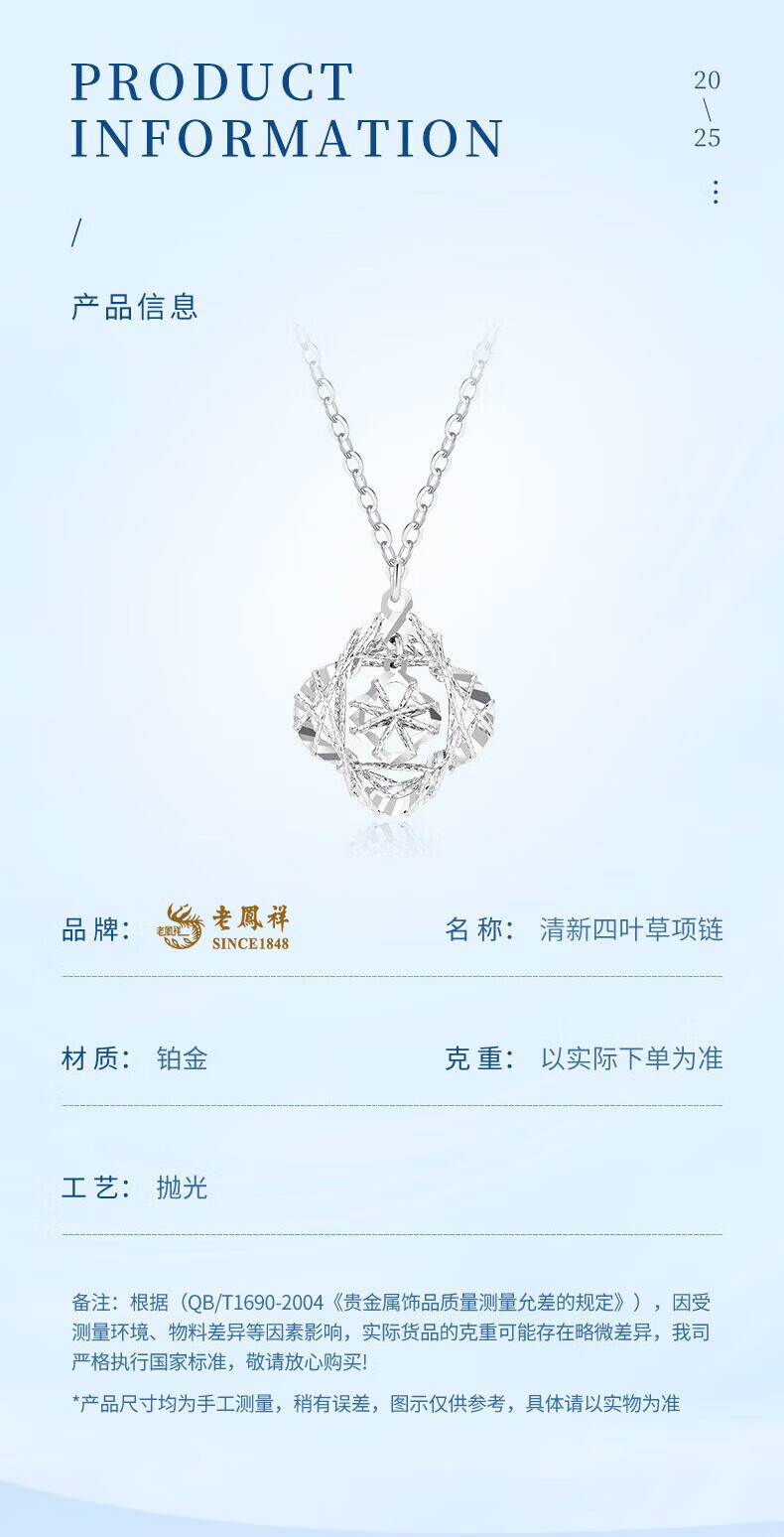 Lao Fengxiang PT950 platinum four-leaf clover pendant women's platinum necklace Mid-Autumn Festival birthday gift for girlfriend Platinum four-leaf clover necklace about 4.7g selection gift box
