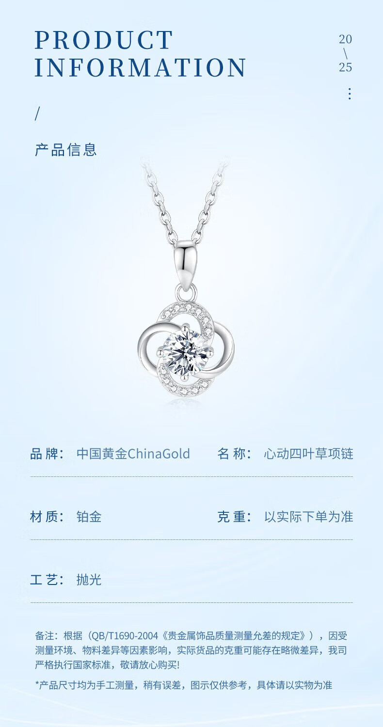 China Gold (CHINA GOLD) PT950 platinum four-leaf clover pendant women's platinum necklace Valentine's Day birthday gift for girlfriend and wife Platinum four-leaf clover pendant about 1.3 free silver chain + medium gold gift box