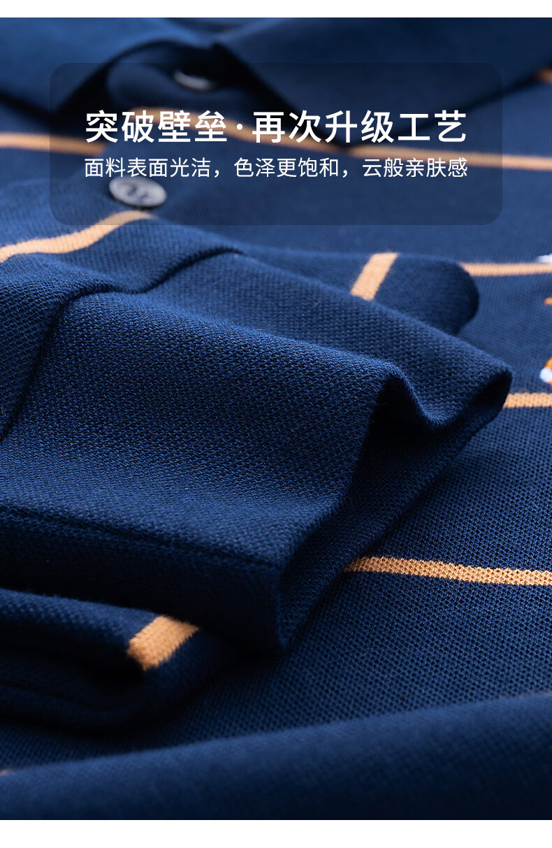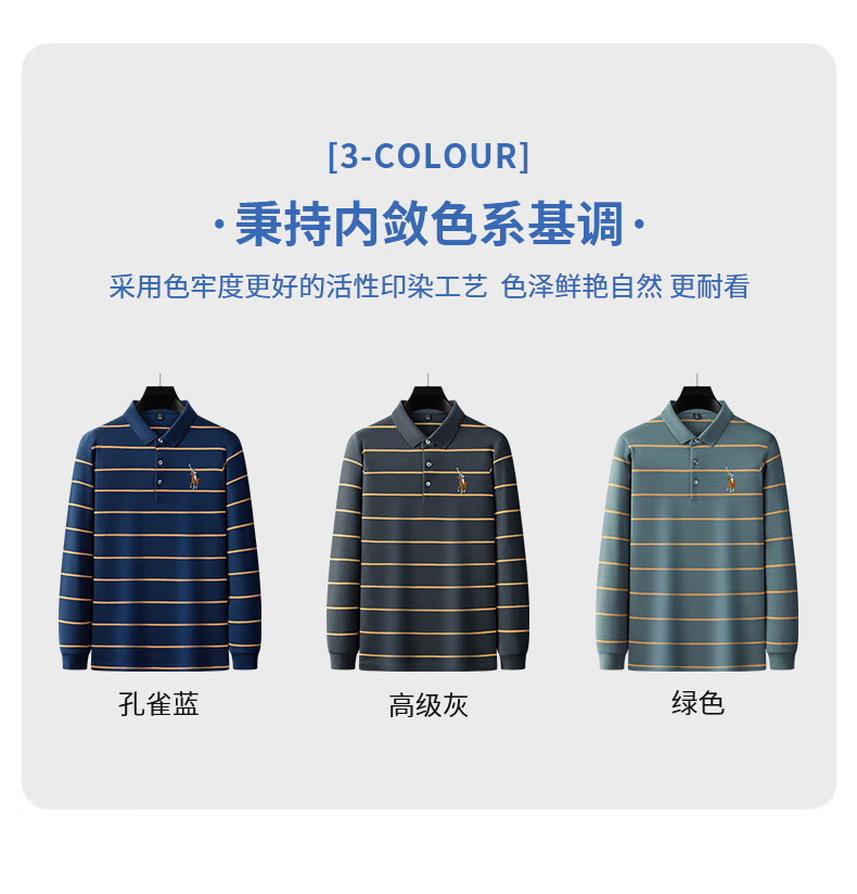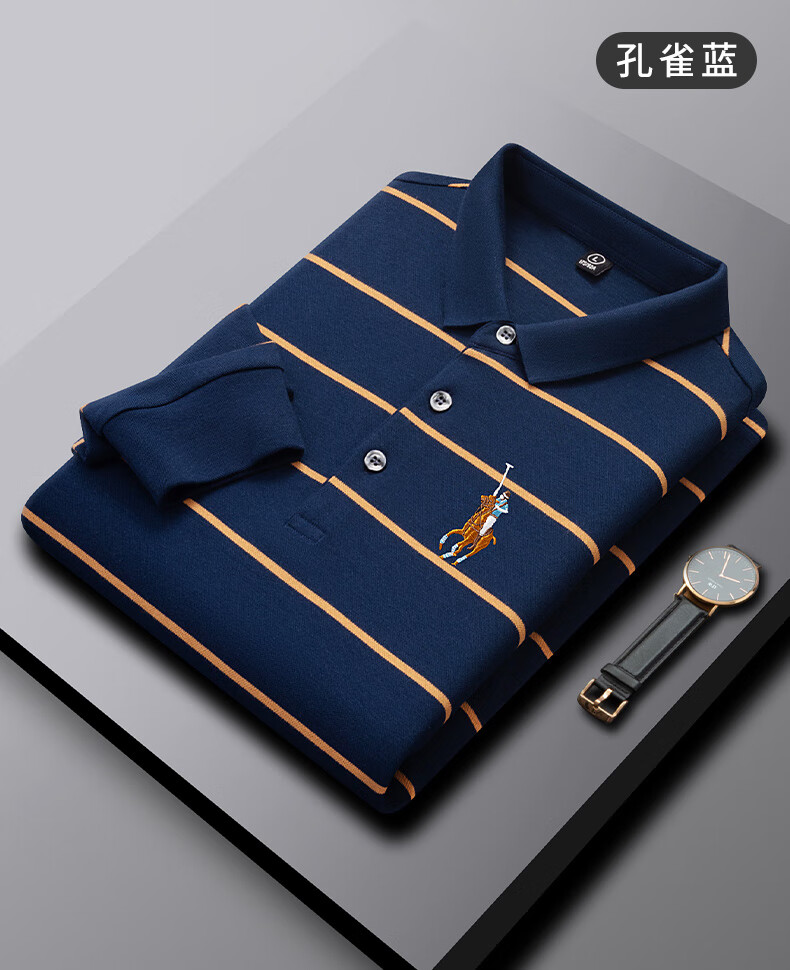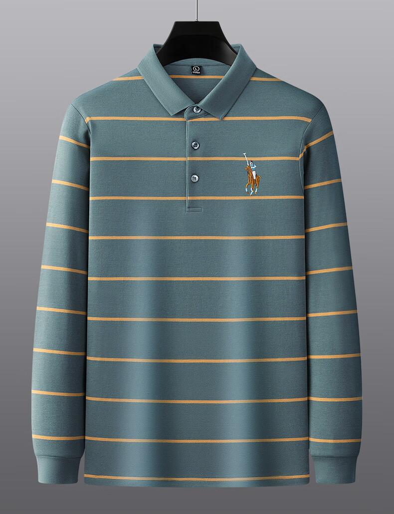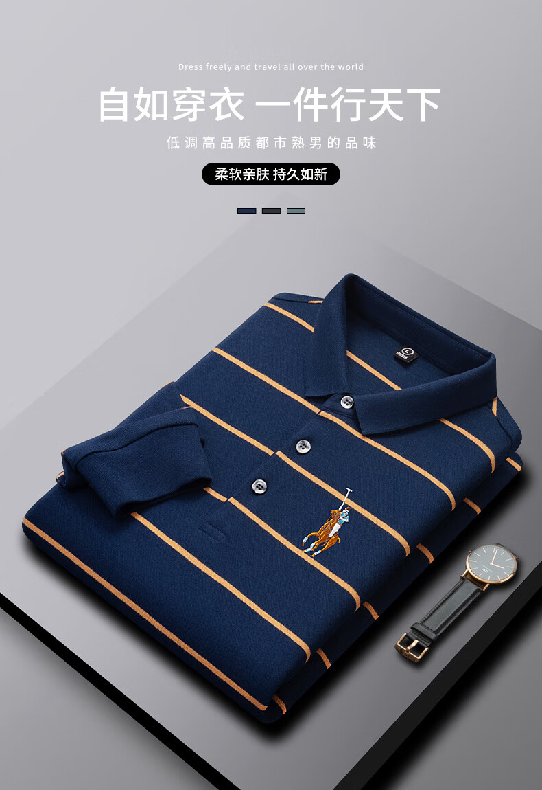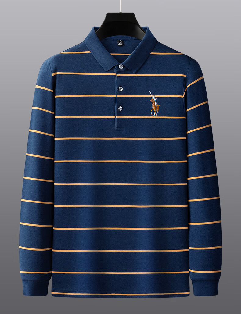 Orest Paul official striped spring and autumn long-sleeved T-shirt men's cotton polo shirt 2025 new high-end men's middle-aged embroidery 8275 Peacock Blue 2XL
