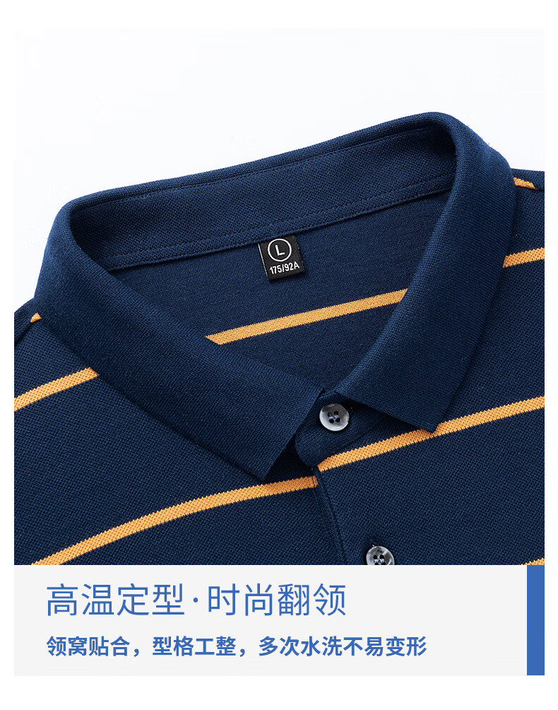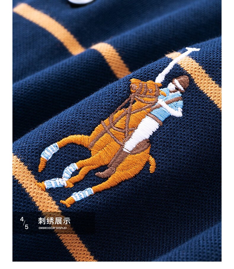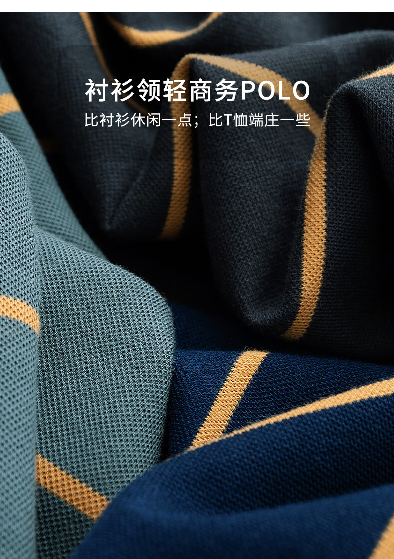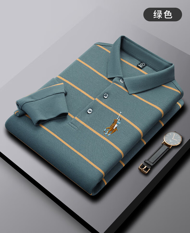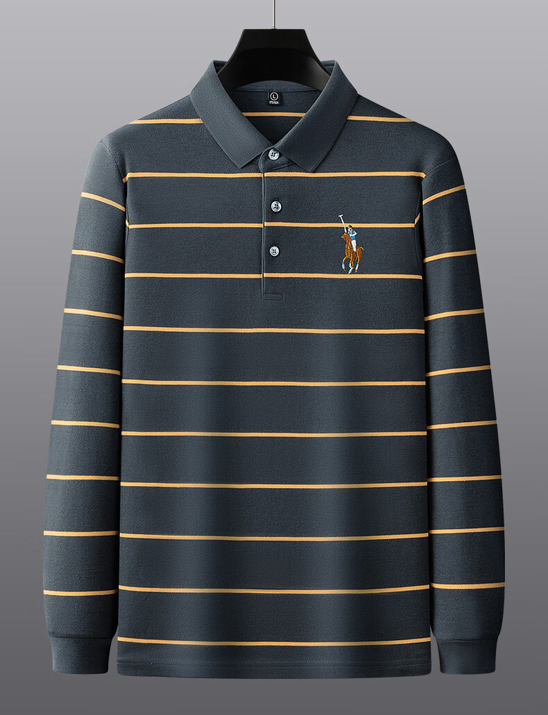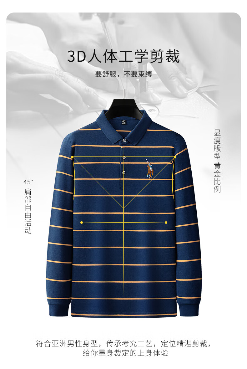 Orest Paul official striped spring and autumn long-sleeved T-shirt men's cotton polo shirt 2025 new high-end men's middle-aged embroidery 8275 Peacock Blue 2XL
