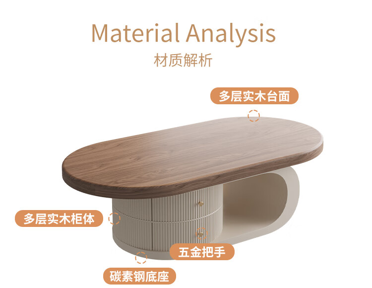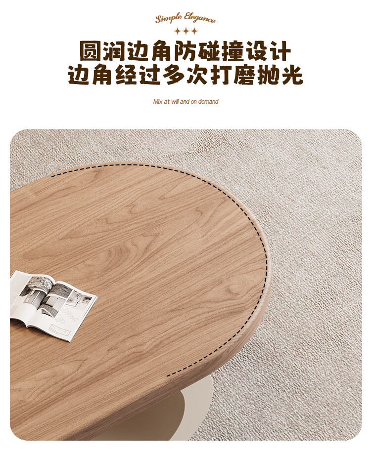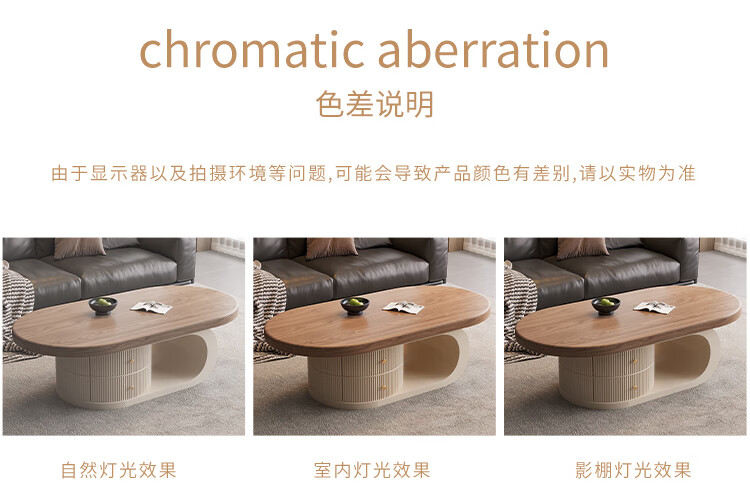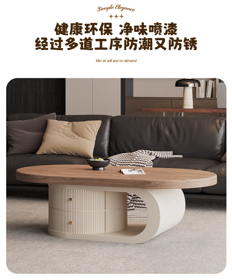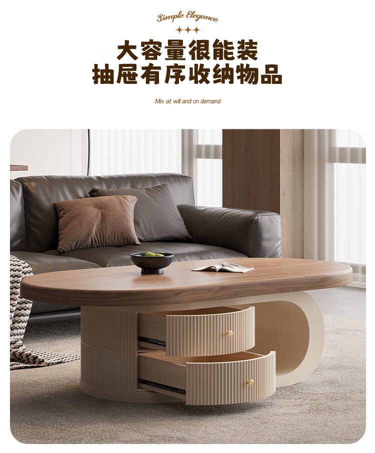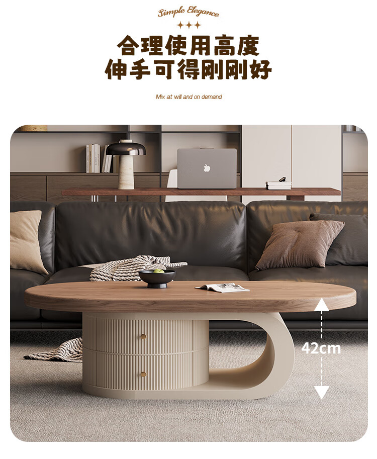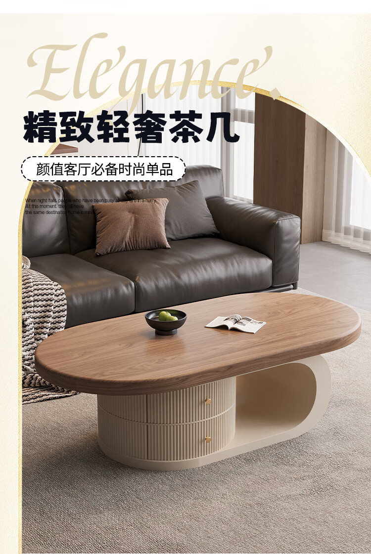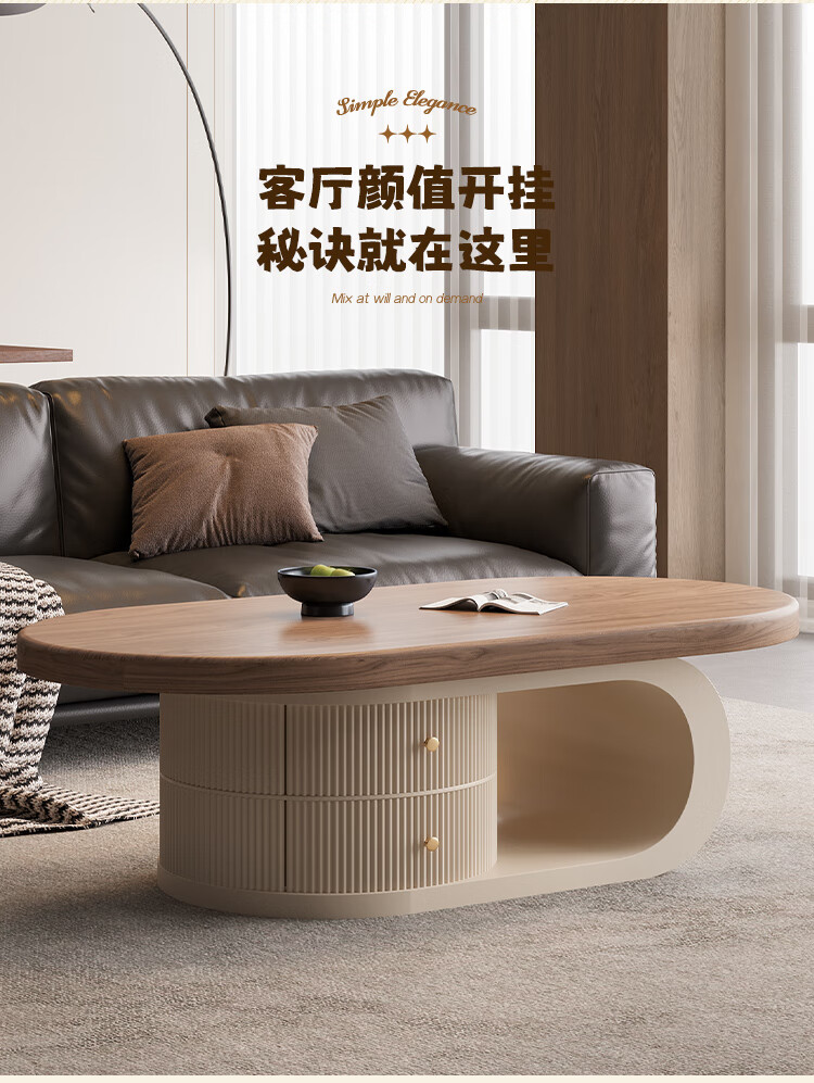 Zuoke Zuojia (ZUOKEZUOJIA) Medieval Cream Style Solid Wood Tea House for Small Apartment Living Room 2025 New Designer Oval Premium Tea Table Solid Wood Coffee Table Apricot Cabinet 120*60CM