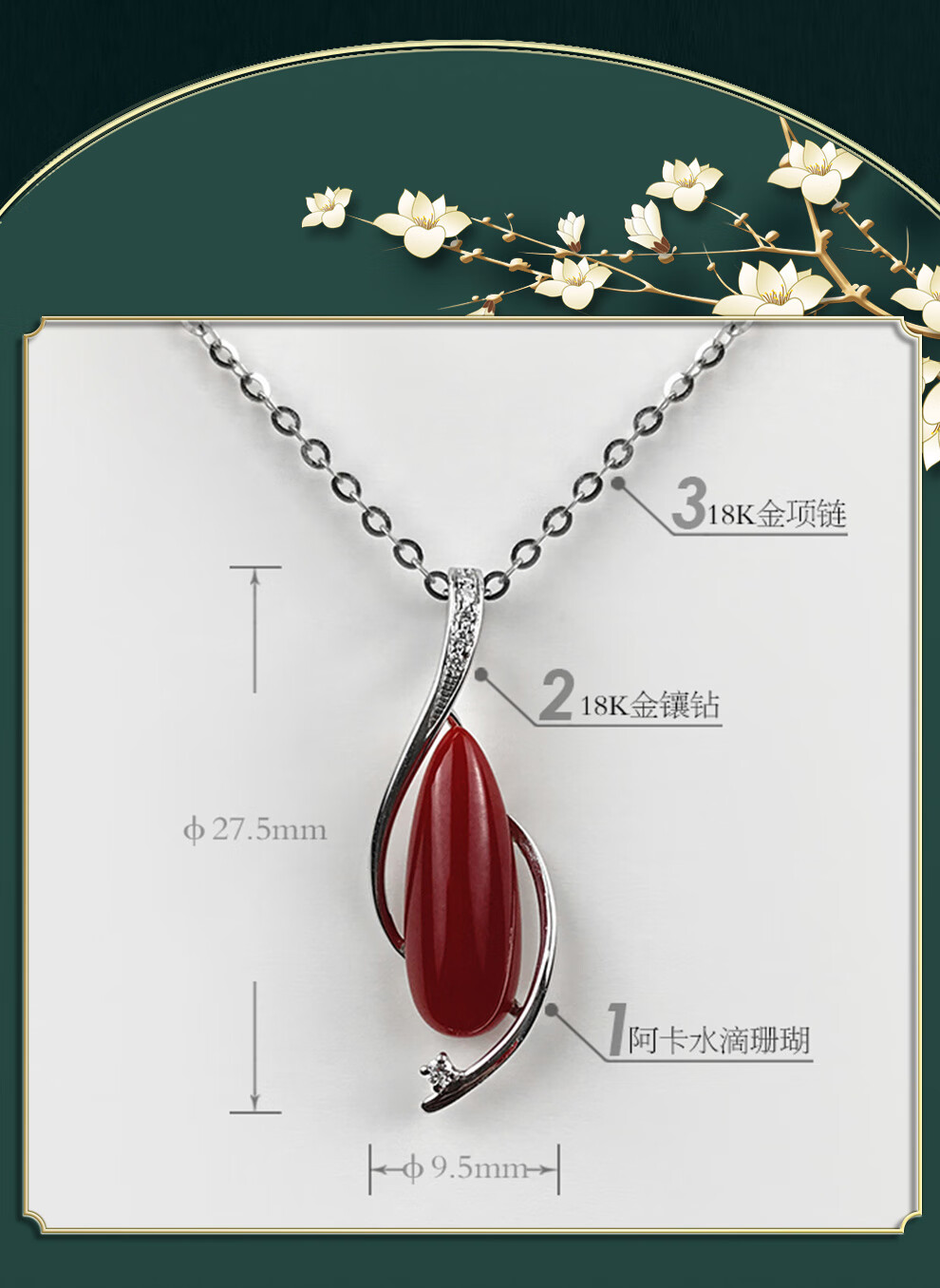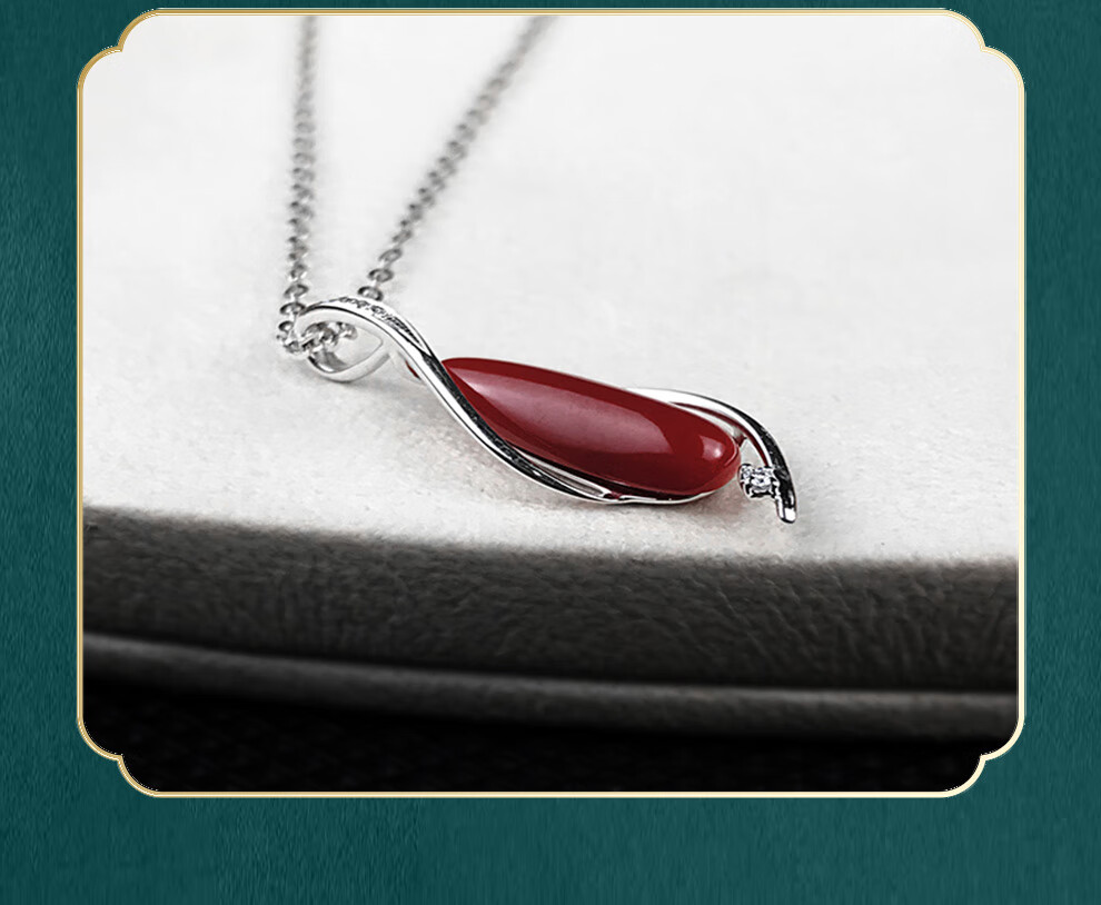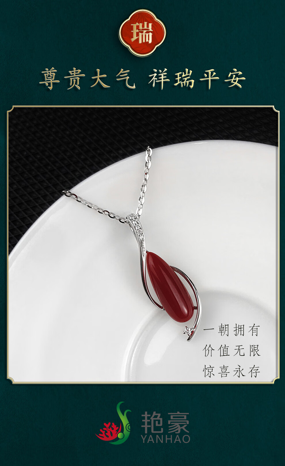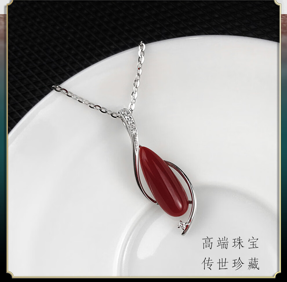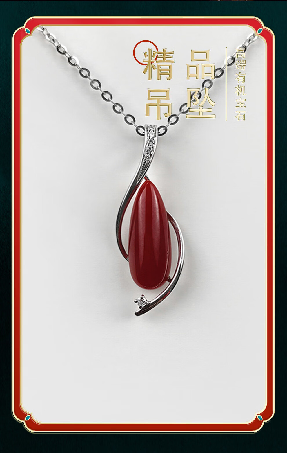 Yanhao boutique ox blood red Akha pendant 18K gold inlaid coral drop pendant high-end jewelry premium gift