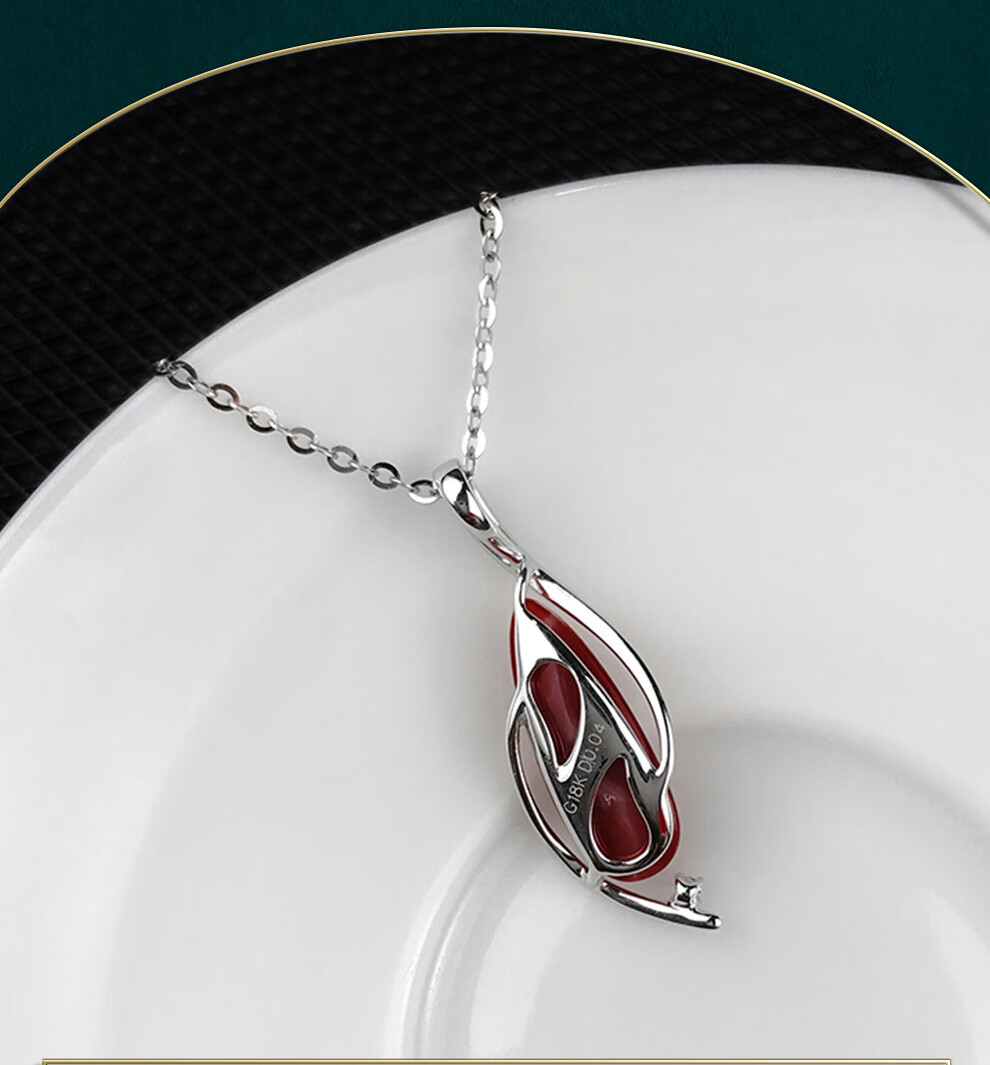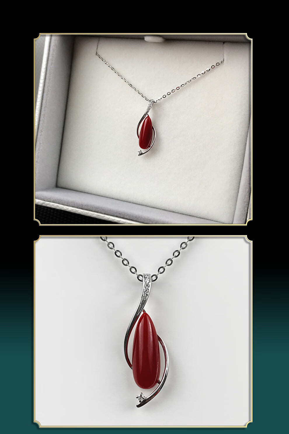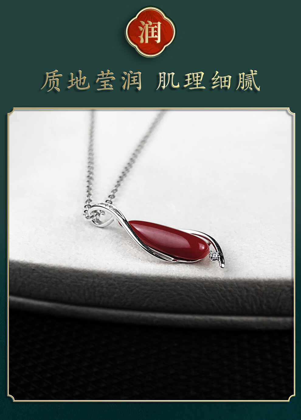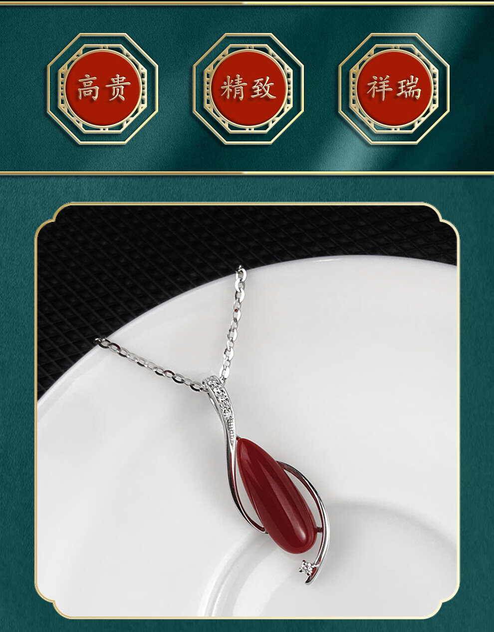 Yanhao boutique ox blood red Akha pendant 18K gold inlaid coral drop pendant high-end jewelry premium gift