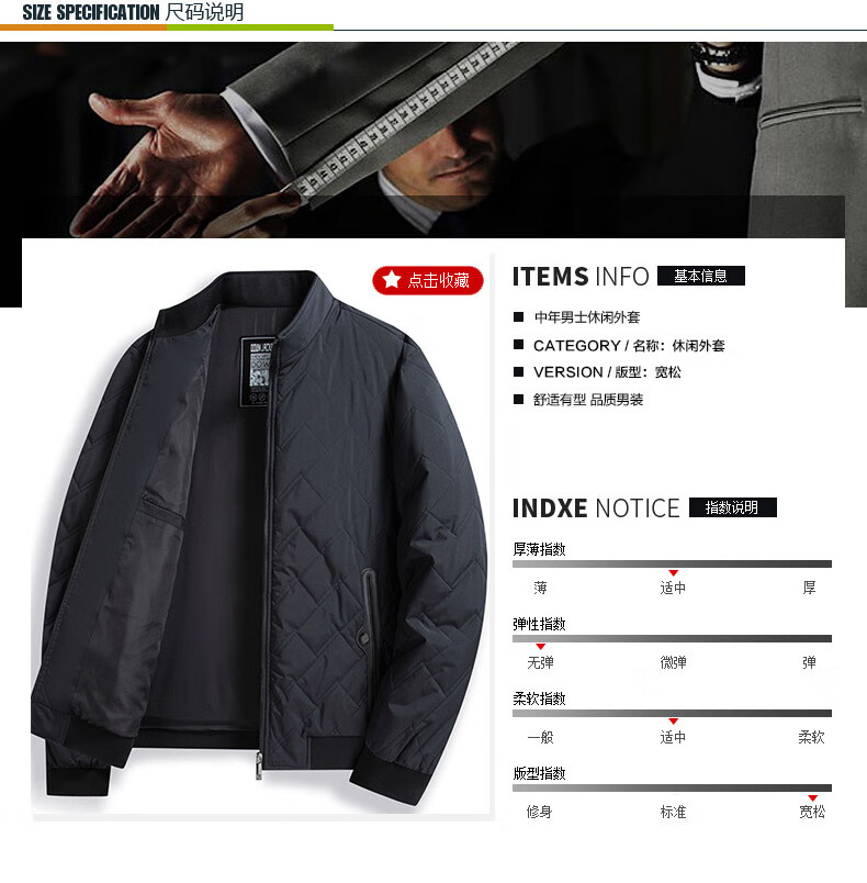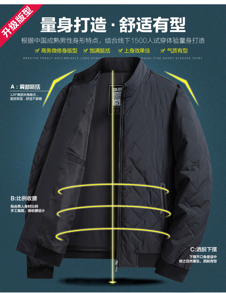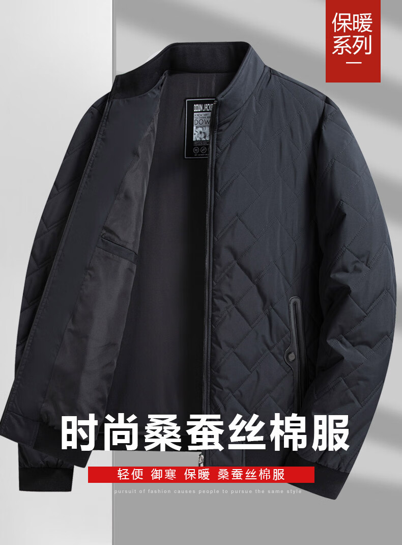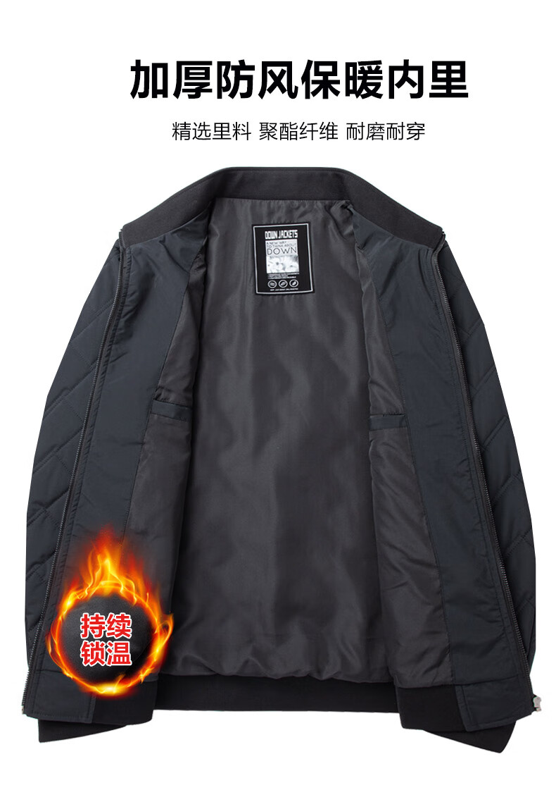 GOLDLION G+ Goldlion Autumn and Winter Cotton Jacket Middle-aged Men's Lightweight Cotton Jacket Stand Collar Cotton Jacket 092 Black M 170