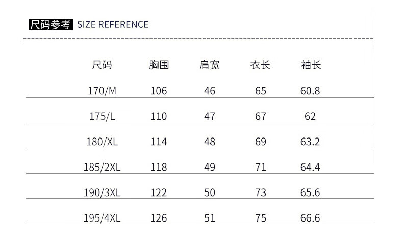 China (cm) 165 / 88-90 170 / 96-98 175 / 108-110 180 / 118-122 185 / 126-130