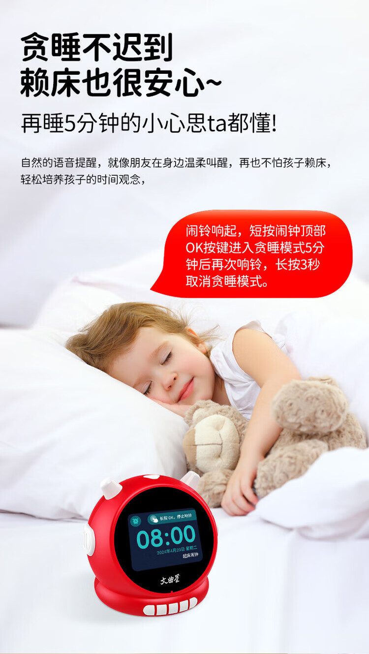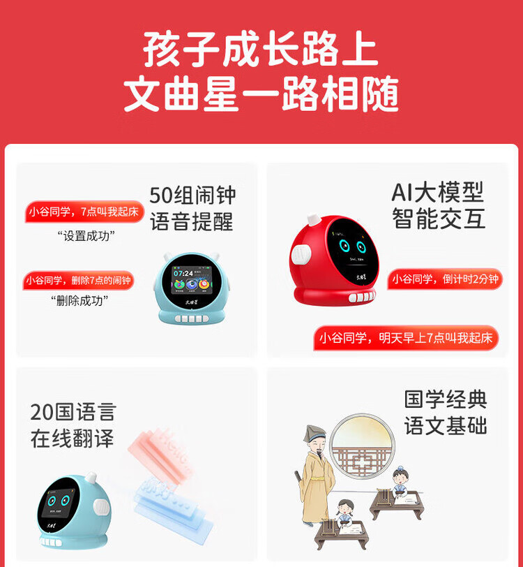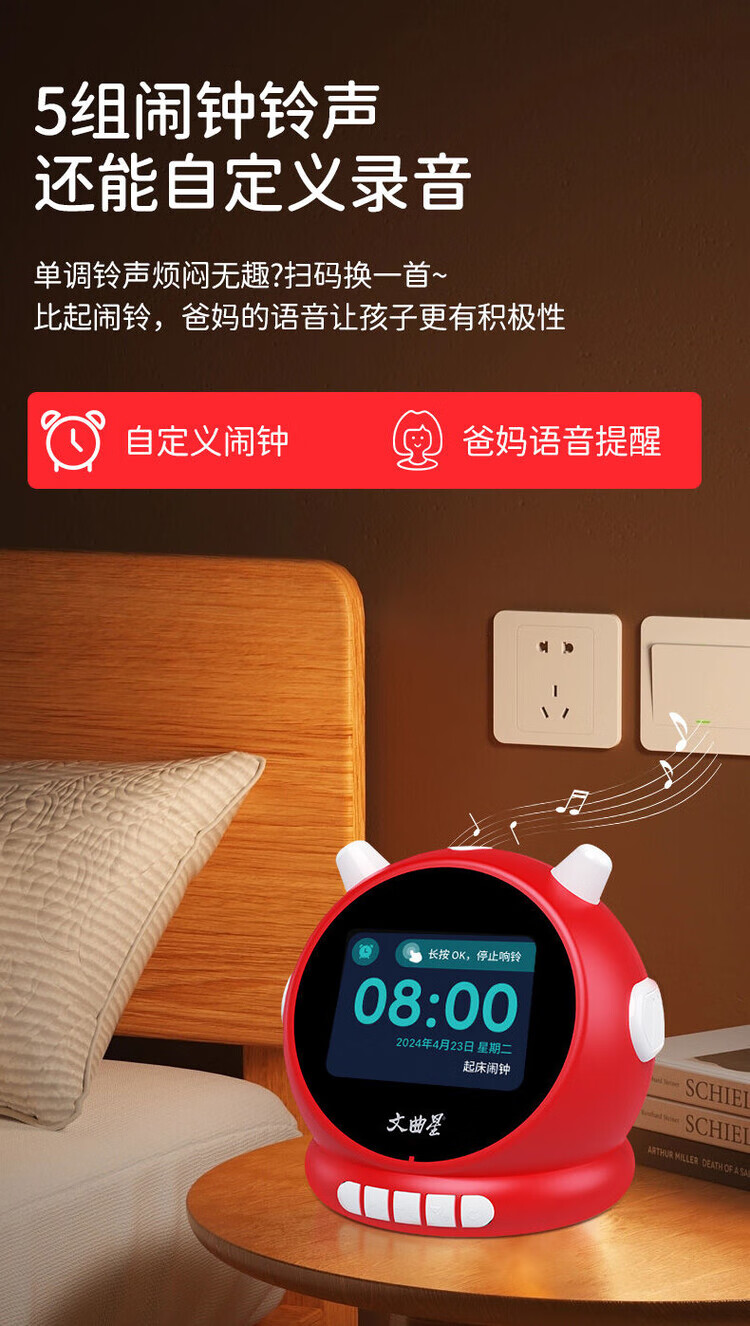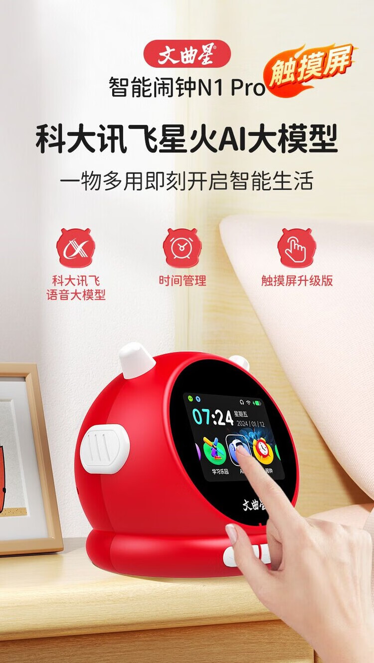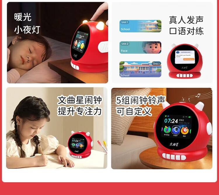Wenquxing (WQX) Smart Learning Alarm Clock Children's Time Manager Early Education Machine Story Machine Student Learning Children's Gift Red Anytime Training丨Accurate Pronunciation丨Self-disciplined Learning Newly upgraded touch screen model iFLYTEK AI Smart Alarm Clock