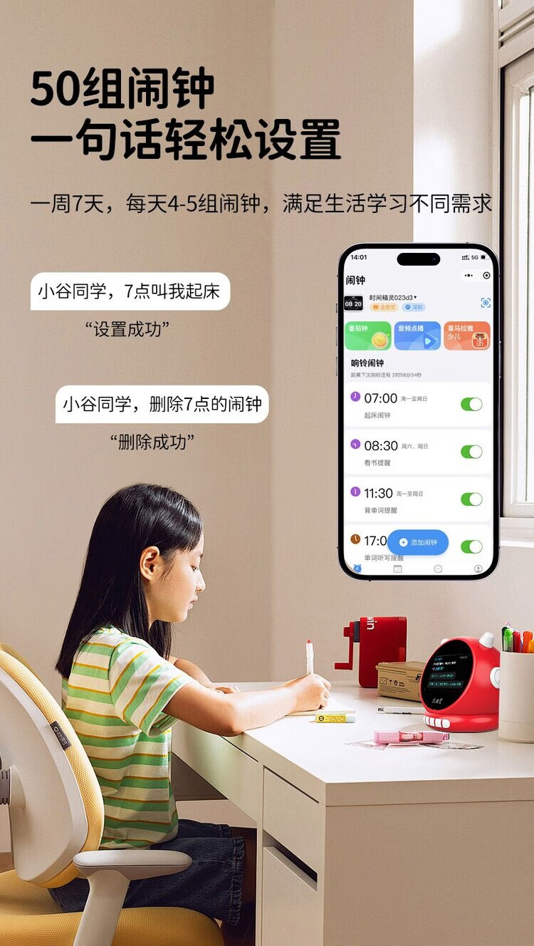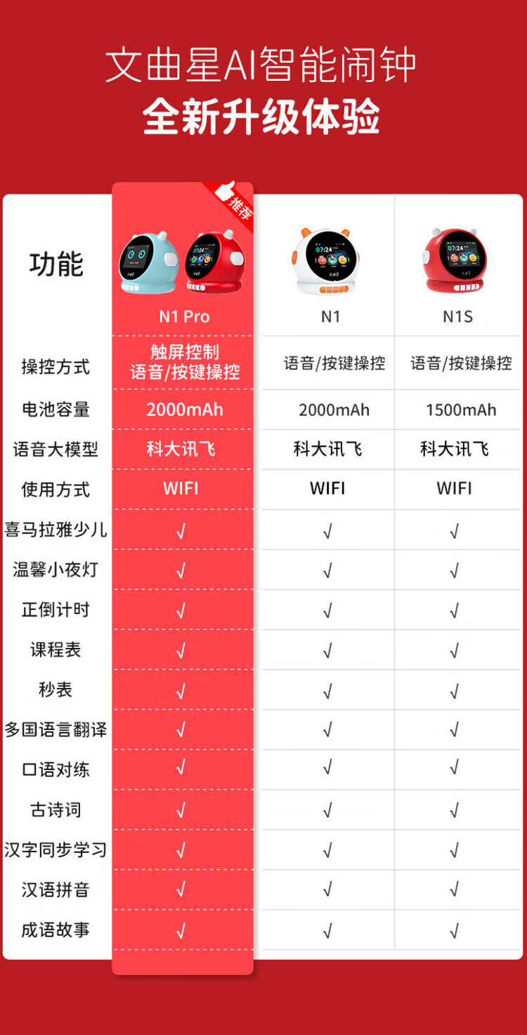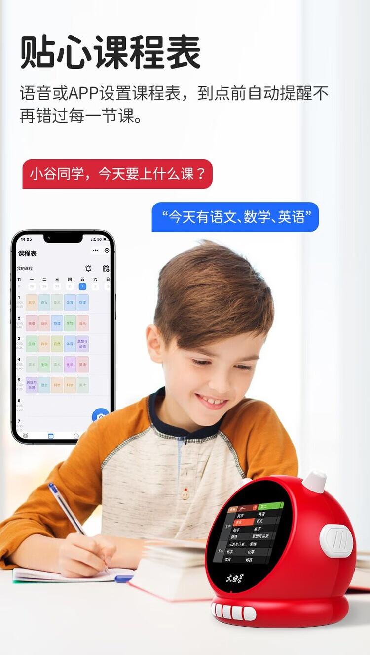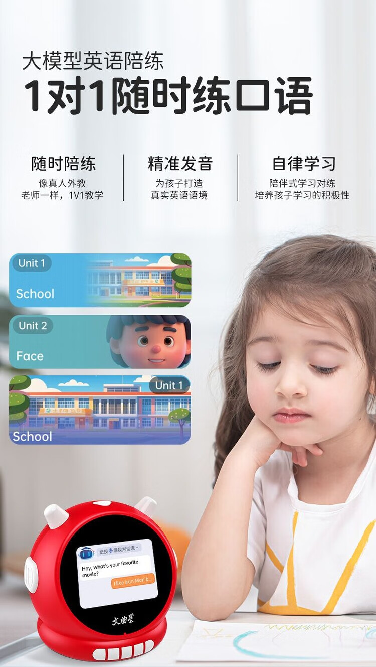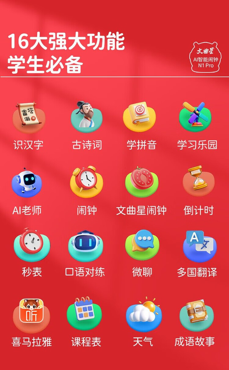 Wenquxing (WQX) Smart Learning Alarm Clock Children's Time Manager Early Education Machine Story Machine Student Learning Children's Gift Red Anytime Training丨Accurate Pronunciation丨Self-disciplined Learning Newly upgraded touch screen model iFLYTEK AI Smart Alarm Clock