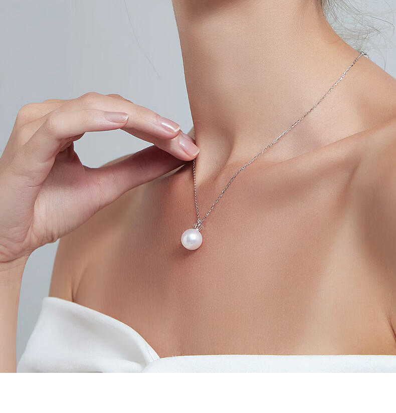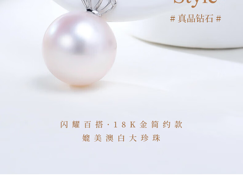 Jinxu comparable to Australian white 18K gold diamond freshwater pearl pendant women's single simple necklace clavicle chain minor flaws 13-14mm