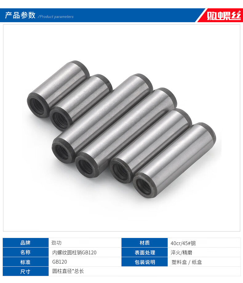 XMSJ430 hardened quenched internal thread cylindrical pin GB120 positioning pin tapping pin extraction pin 45 steel 25 140 internal teeth M161
