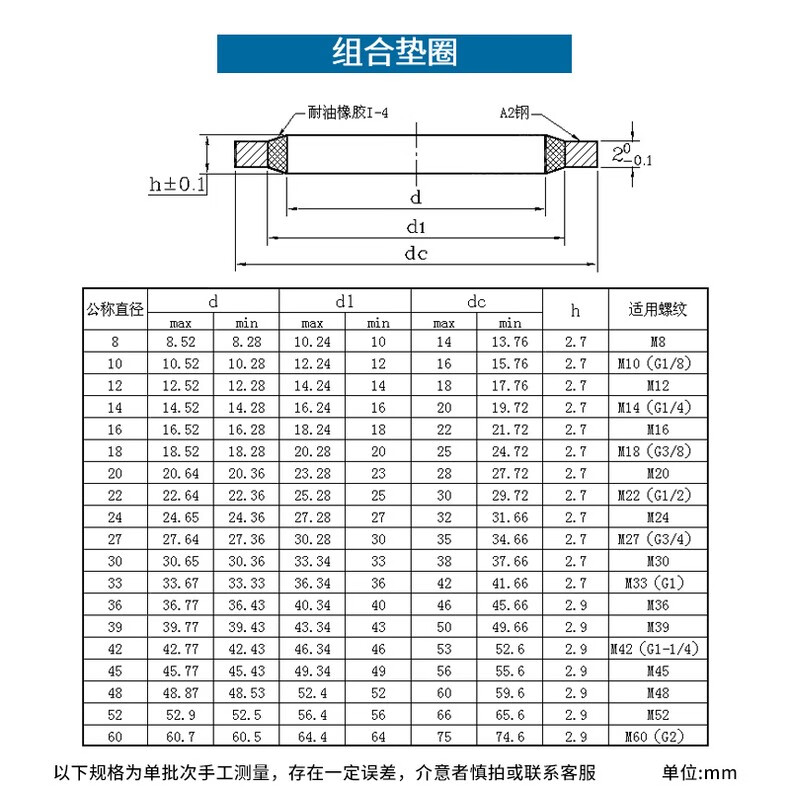 XMSJJB982 combination gasket nitrile metal sealing gasket sealing ring oil pipe seal combination gasket inner diameter 30*outer diameter 3820 pieces