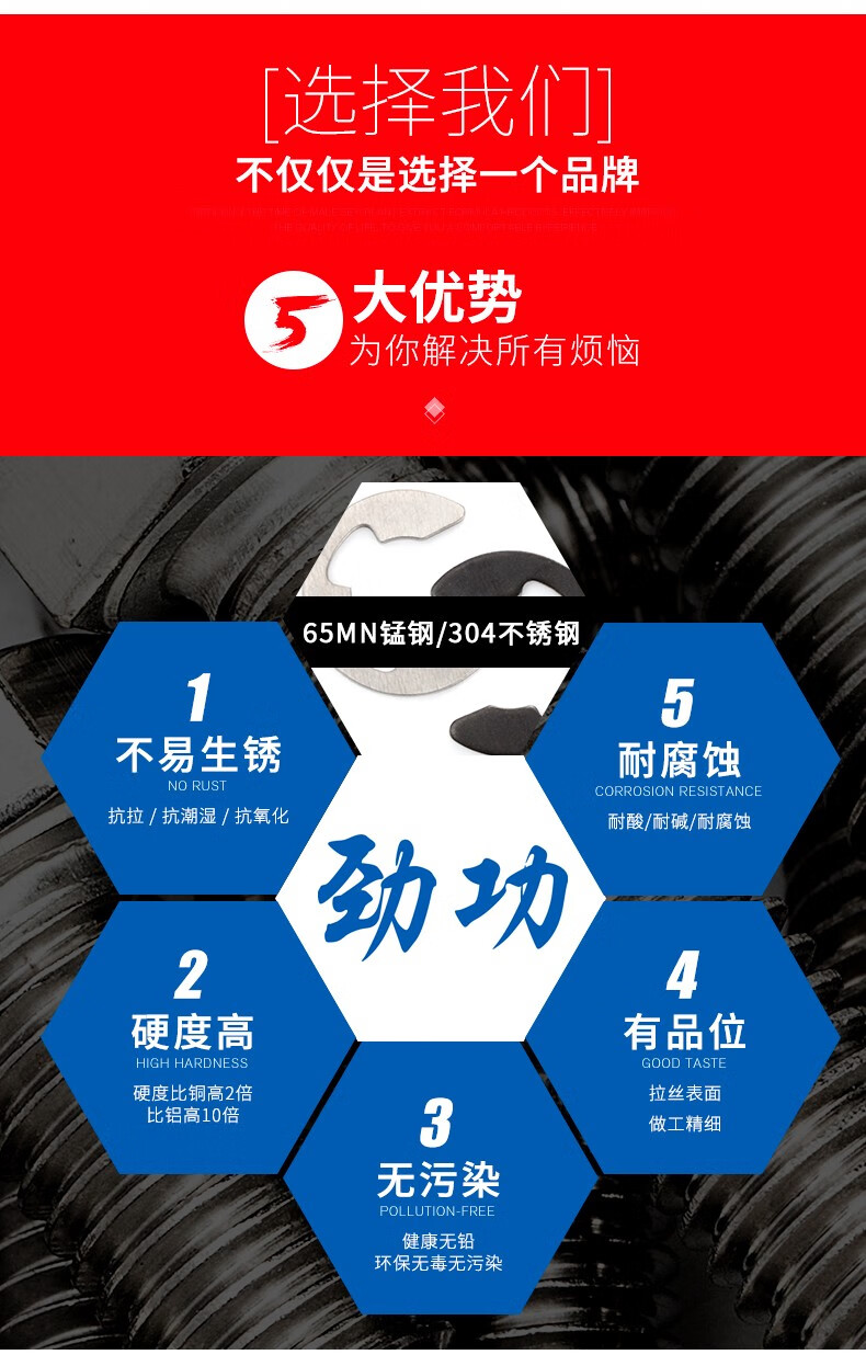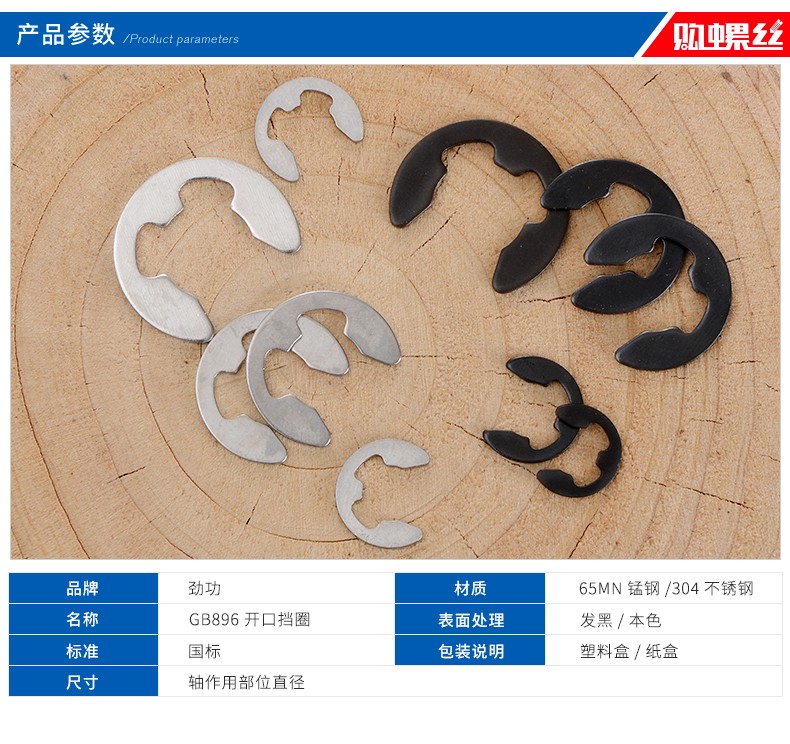 XMSJ65 manganese steel open retaining ring e-type circlip shaft snap ring buckle card open retaining ring GB8968 M1 point 2500 pieces 65 manganese steel