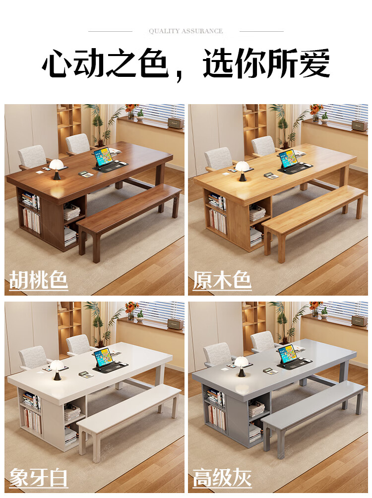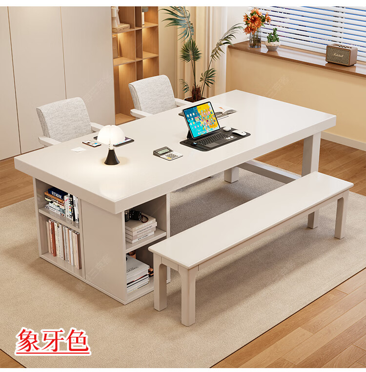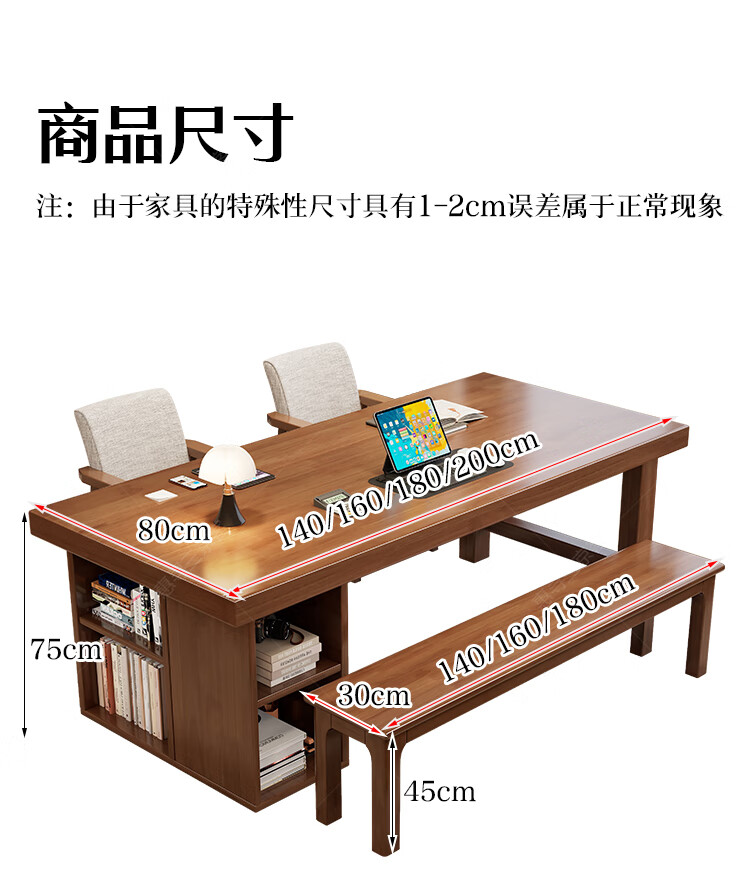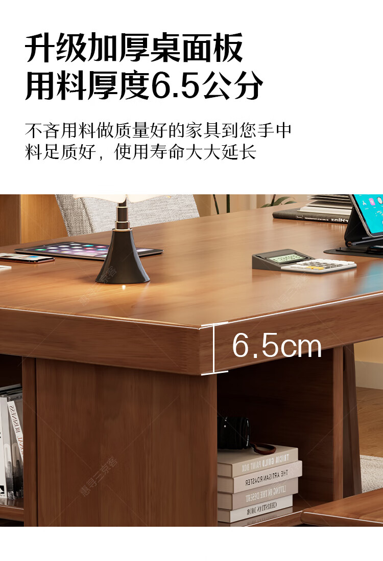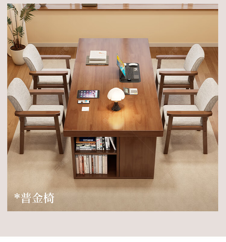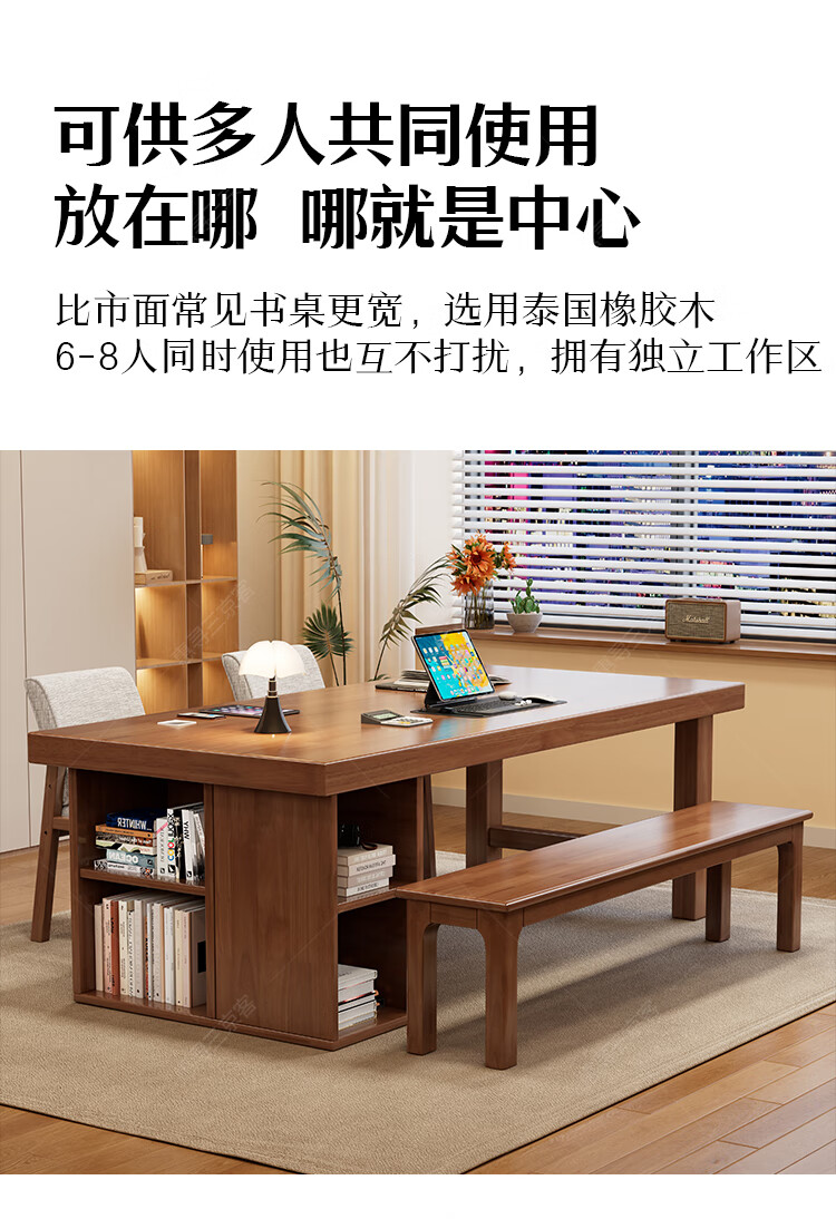 Huixun solid wood large board table living room long desk bookcase combination home dining table integrated workbench multi-person reading and study table walnut color #big board table 140cm*80cm*75cm desktop thickness 6.5cm