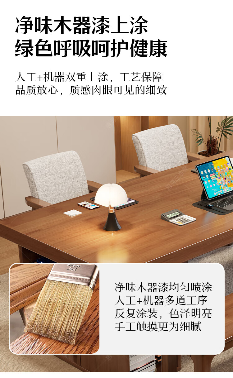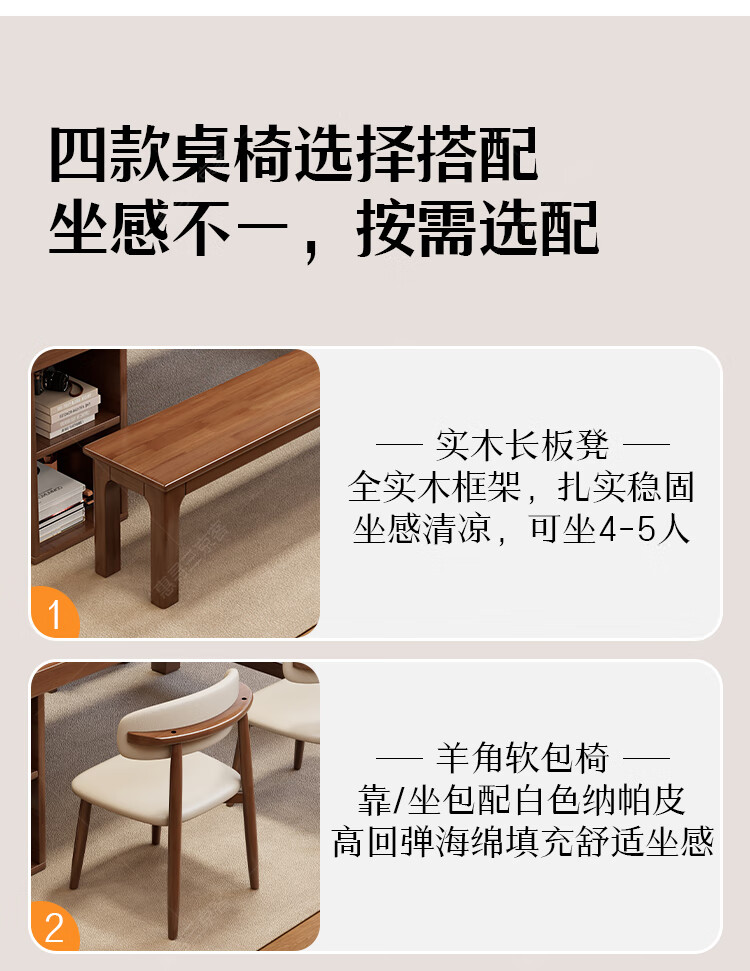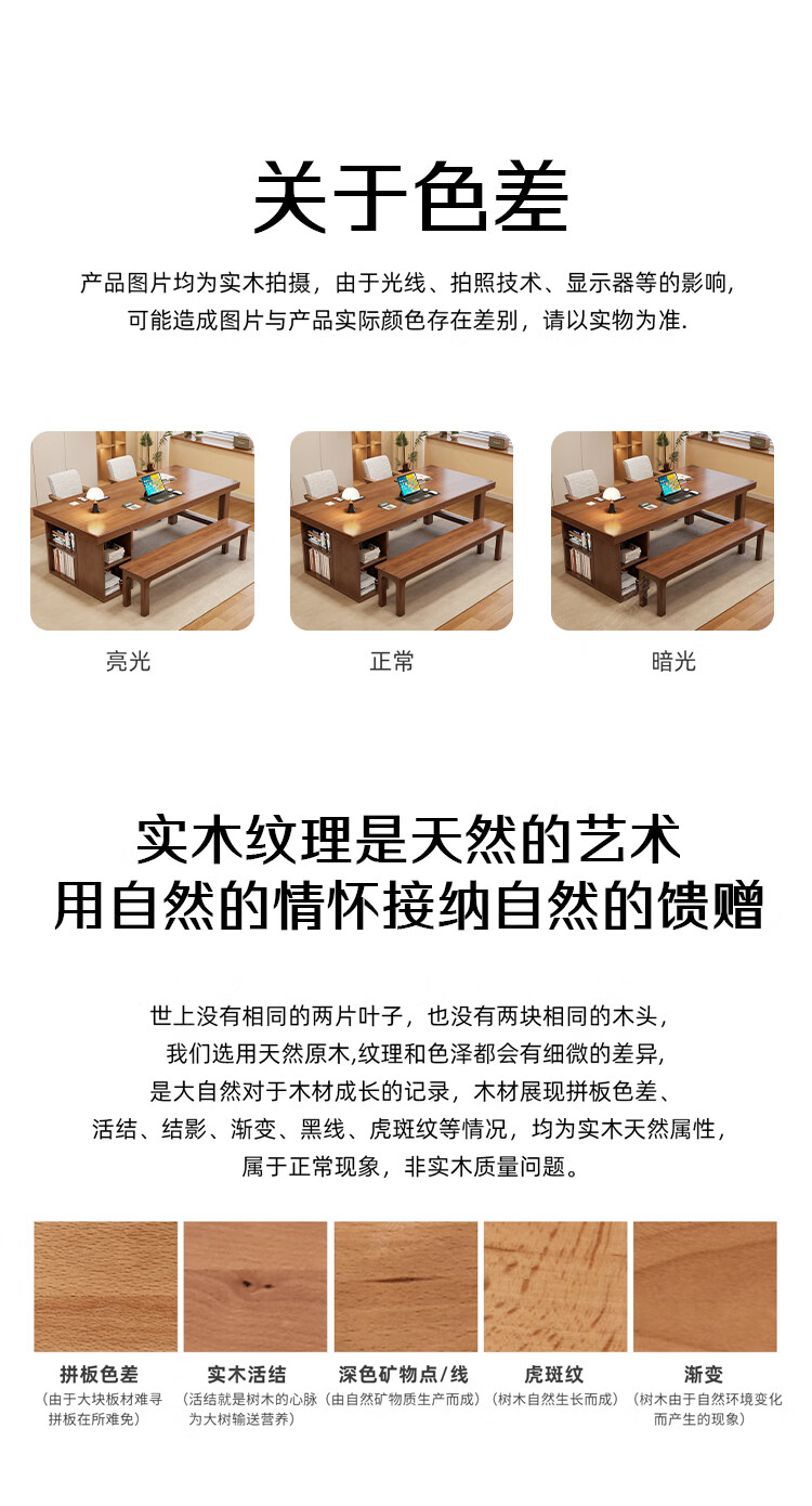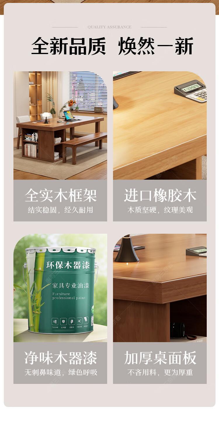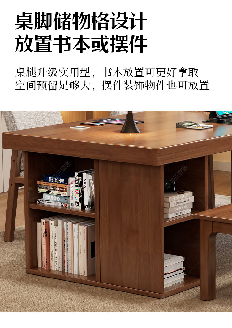 Huixun solid wood large board table living room long desk bookcase combination home dining table integrated workbench multi-person reading and study table walnut color #big board table 140cm*80cm*75cm desktop thickness 6.5cm