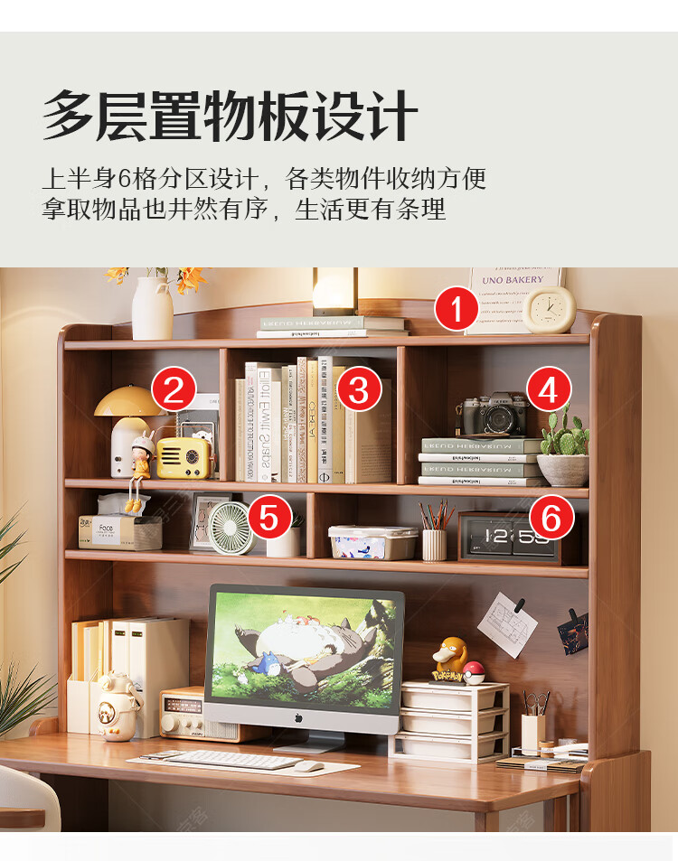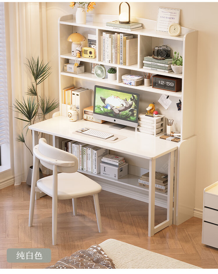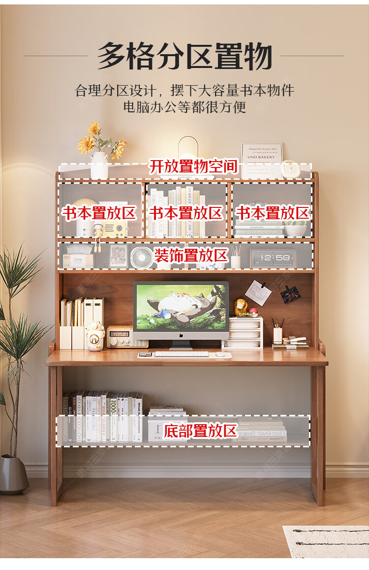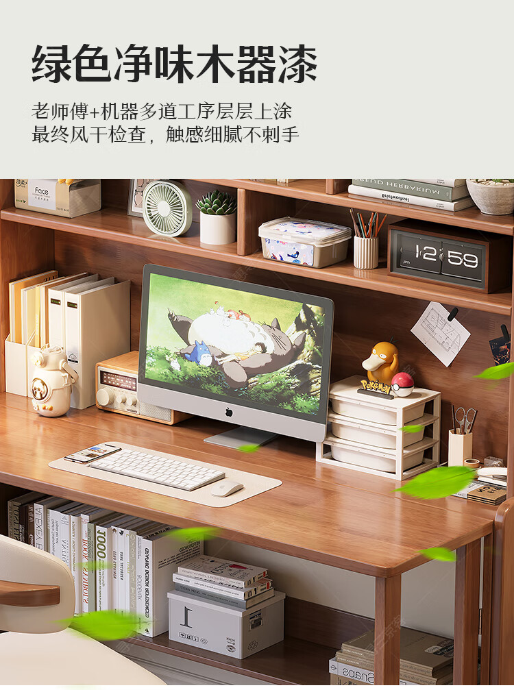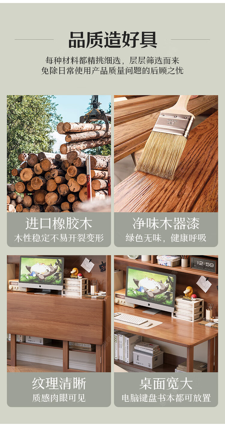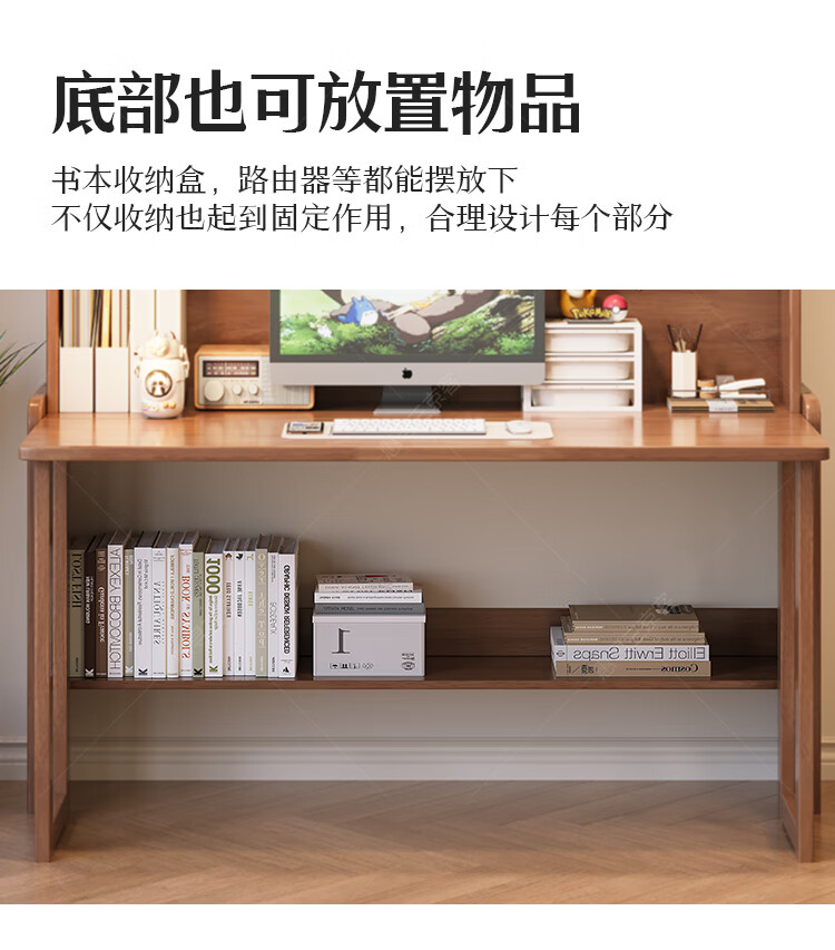 Huixun solid wood folding desk bookshelf integrated desk student computer desk home study table small apartment retractable abbreviation desk walnut color #folding desk + bookshelf 80cm*60cm*75cm total height 175cm