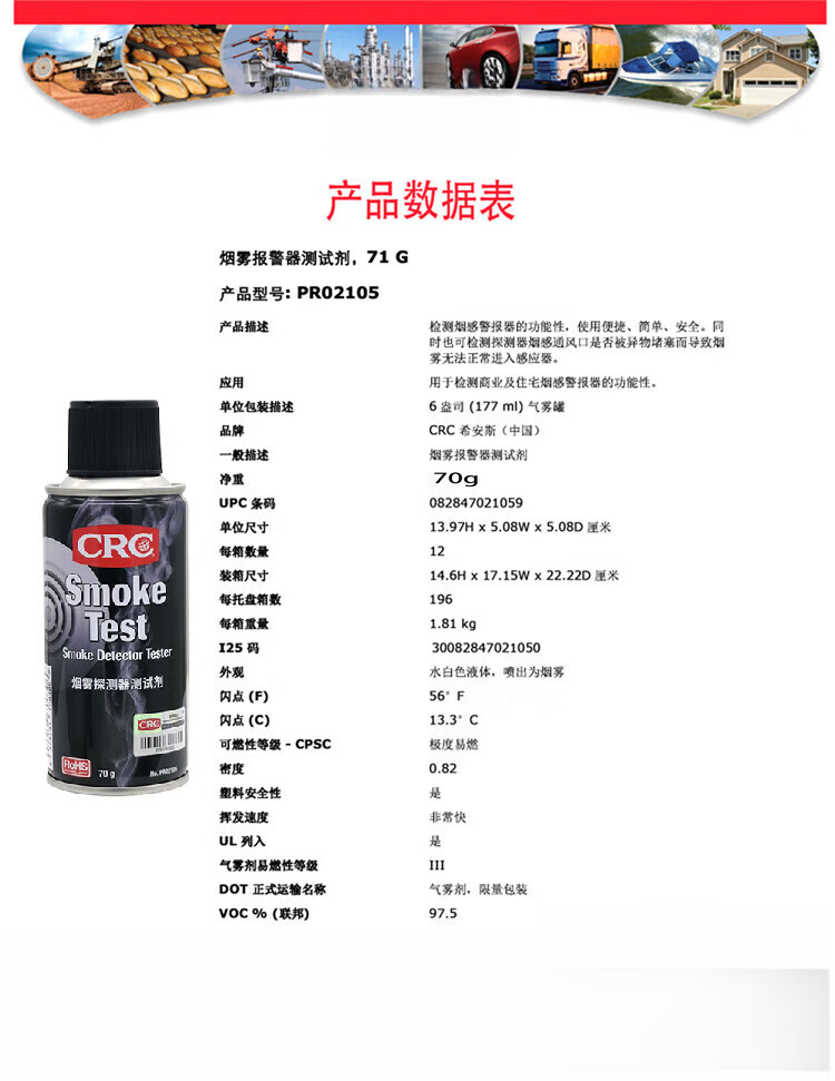 Smoke alarm test agent CRC02105 indoor kitchen alarm smoke detector alarm ship coal mine high-speed rail marine detector fire detector spray test CRCPR02105 single bottle price