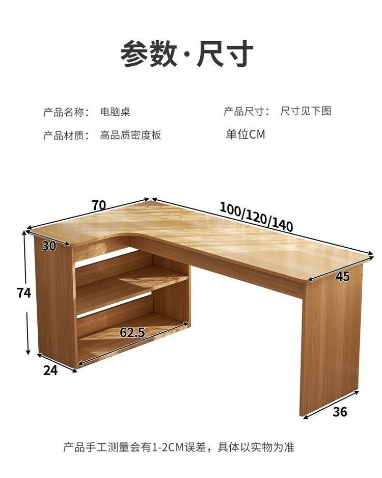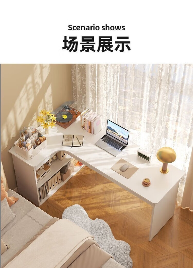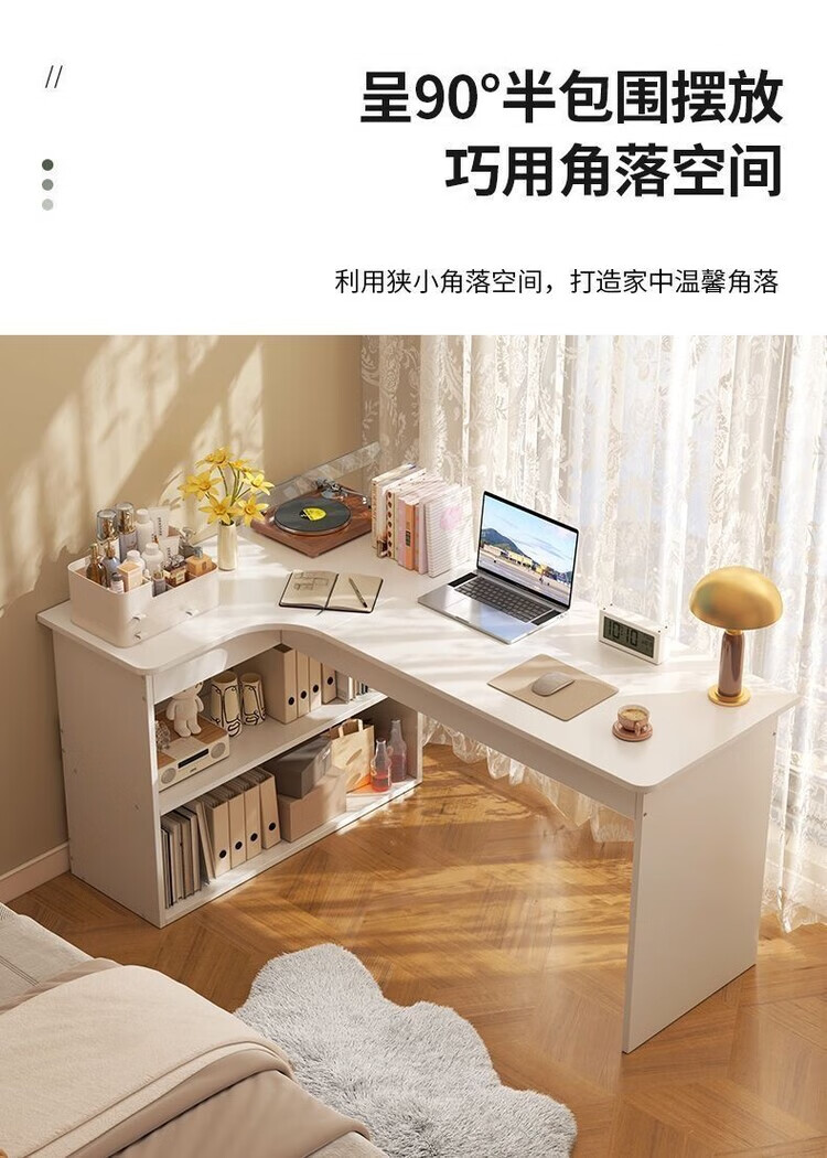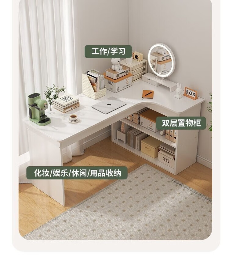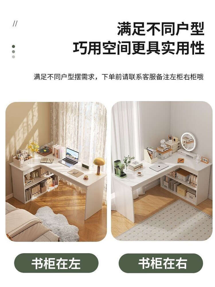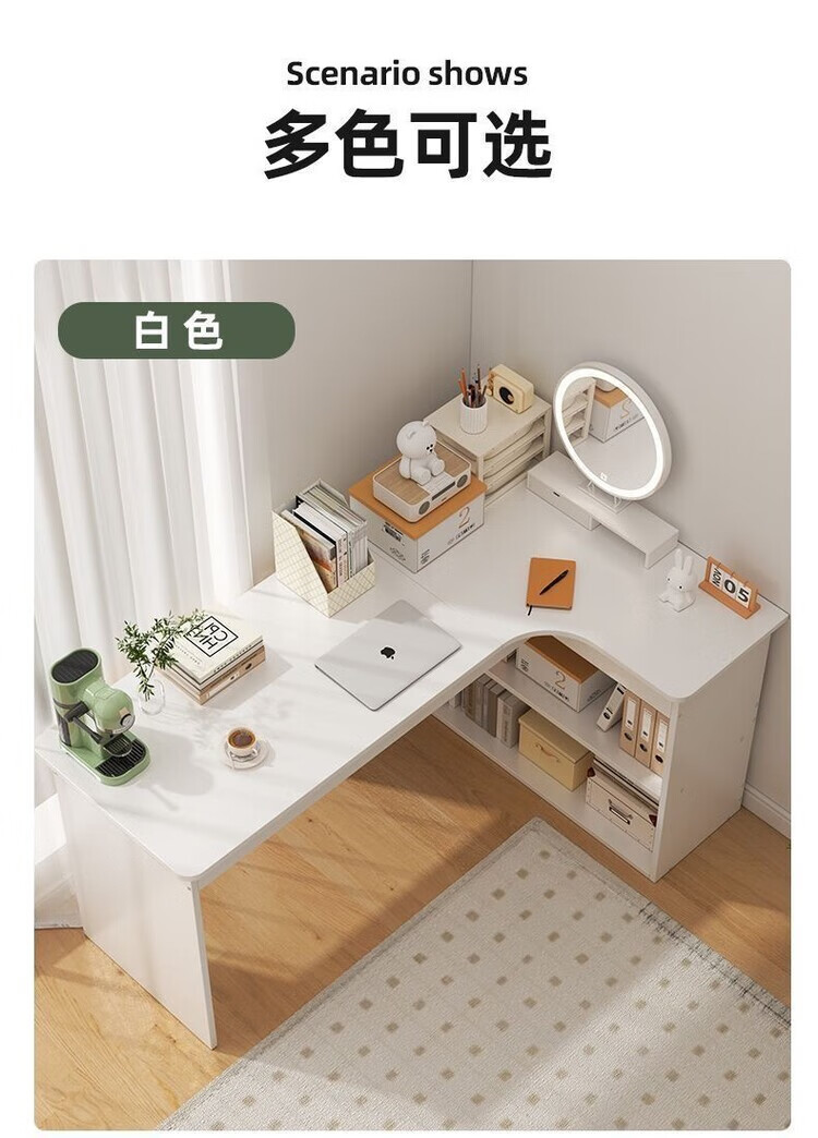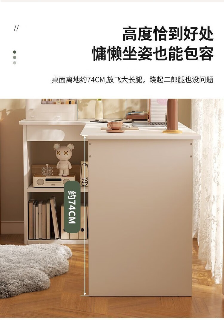 Laimeihui corner desk home study table bedroom girls dresser bookcase integrated corner computer desk office desk warm white right corner - length 120 width 70 height 74CM