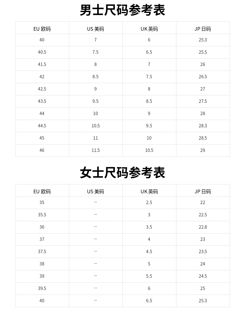 China (cm) 36 - 37 38 - 39 40 - 42 43 - 44 45 - 47