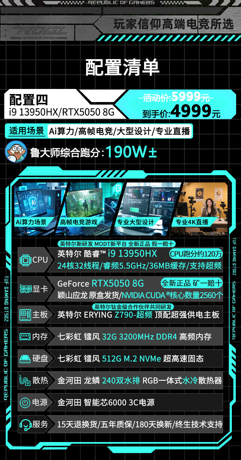Colorful RTX5060Ti/RTX5060 independent graphics + 24-core 13th generation Core i9 13900 desktop computer RTX4090/4080/4070/4060 e-sports live broadcast design AI host equipped with eight | 24-core 13th generation i9 + RTX5060Ti 16G computer host | five-year warranty AI computing power | e-sports | live broadcast | design