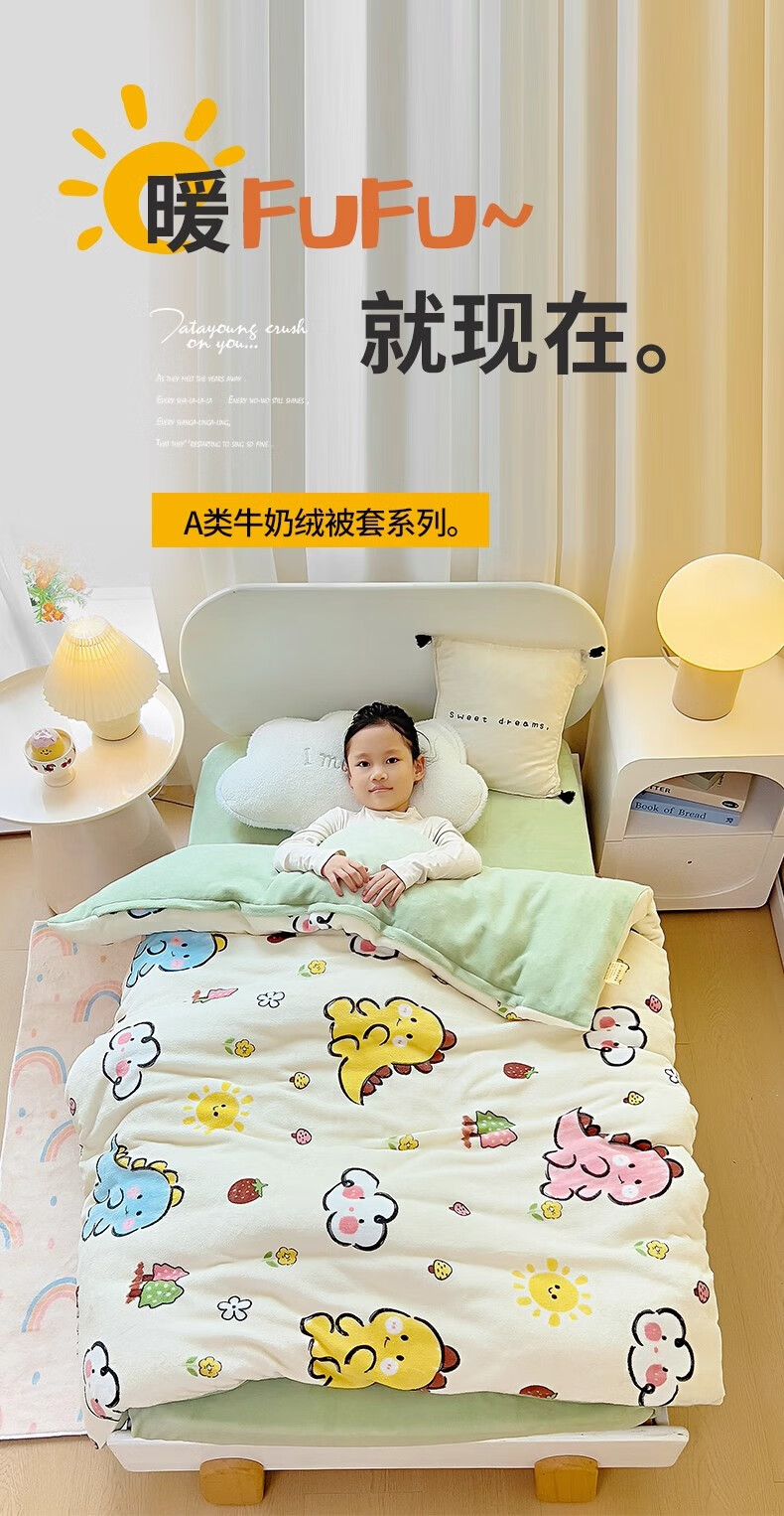 Nanjiren Class A Kindergarten Children's Quilt Winter with Removable and Washable Milk Velvet Quilt Core Autumn Thick Blanket Baby Milk Dragon Class A High Weight Milk Velvet 100x120cm Quilt Cover +1.3Jin Jin equals 0.5kg soybean quilt