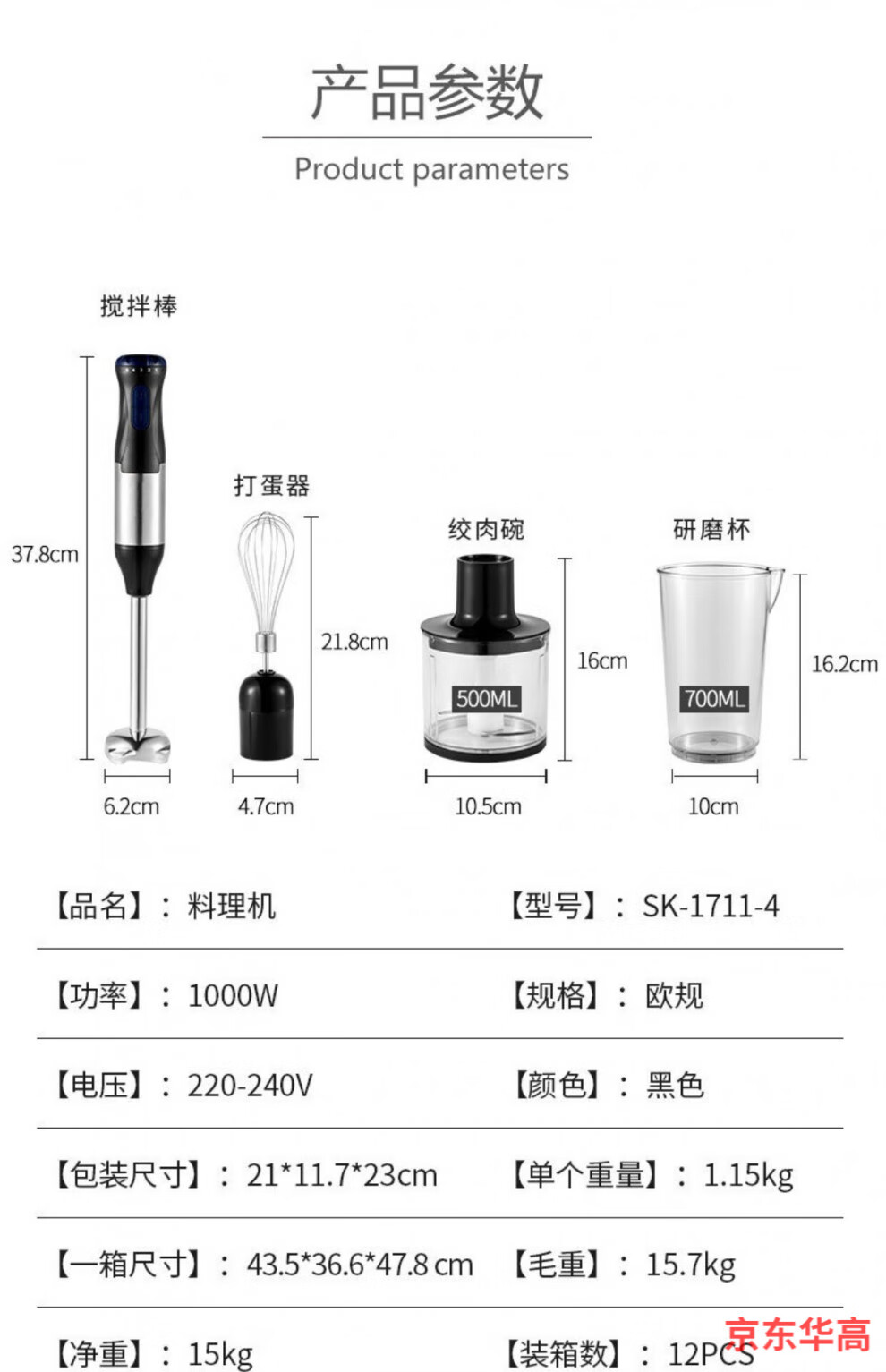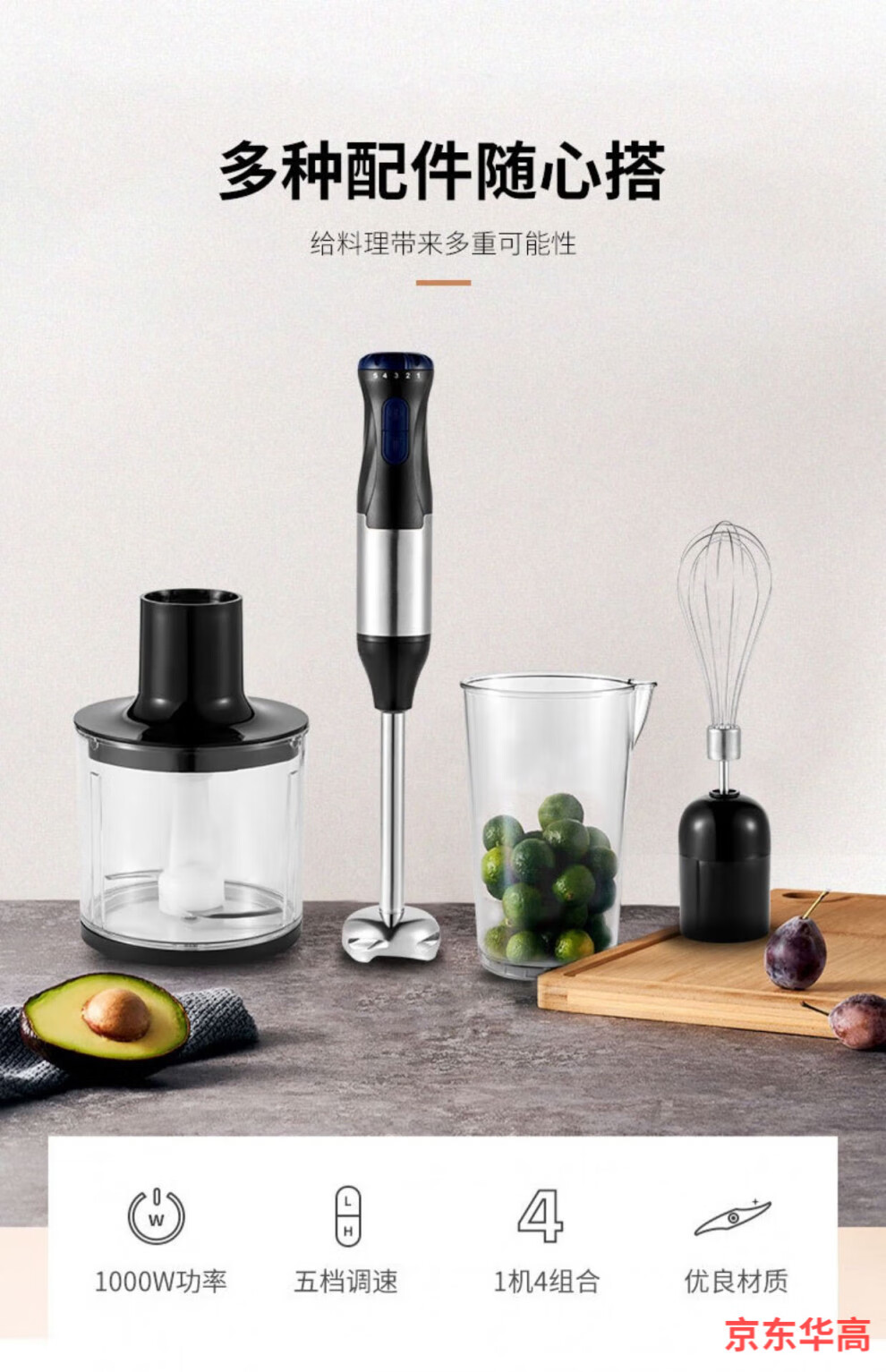 Zhizhou 4 in 1 hand blender food processor English version baking tool 4 in 1 China EUR 220V 52