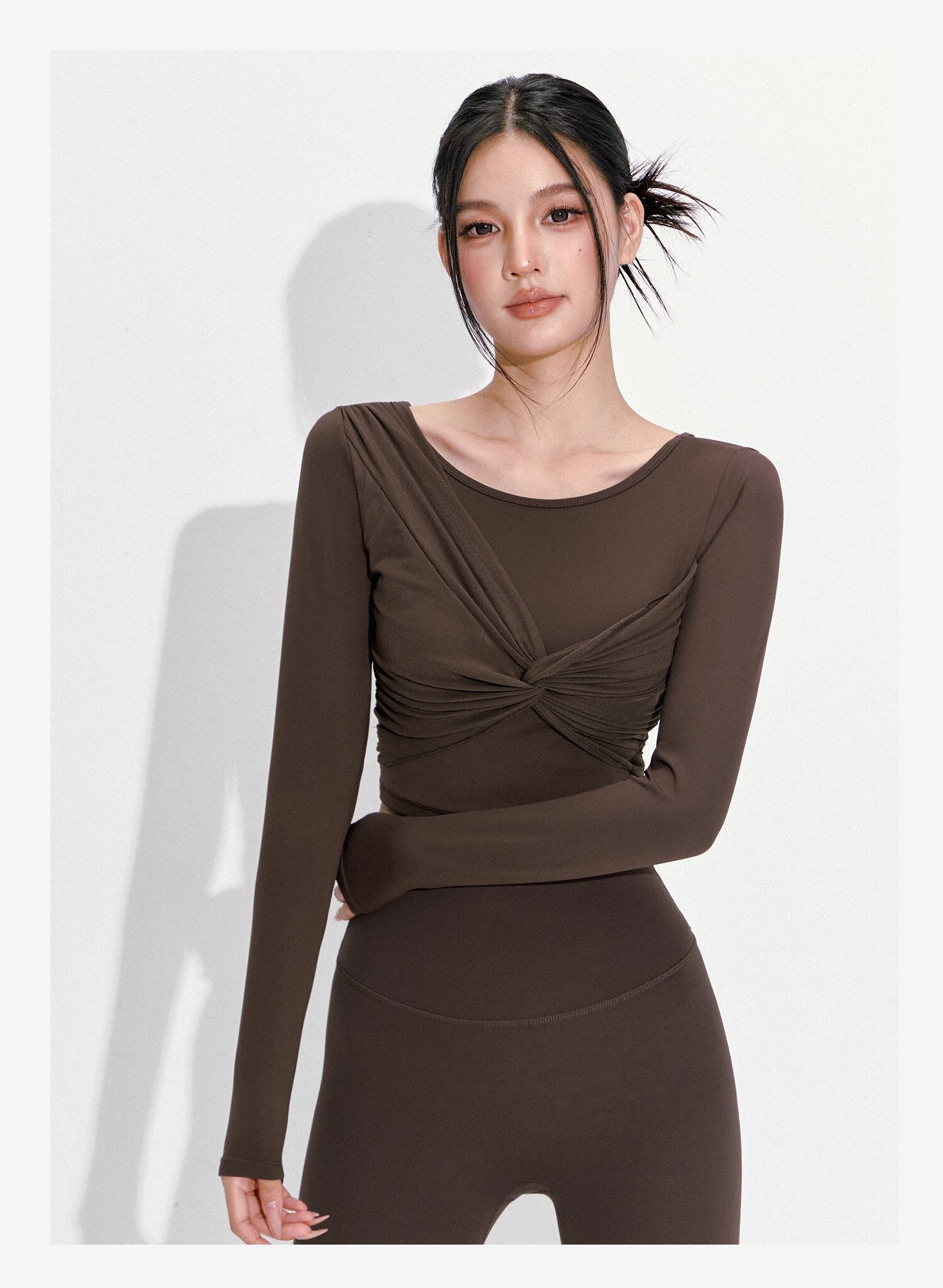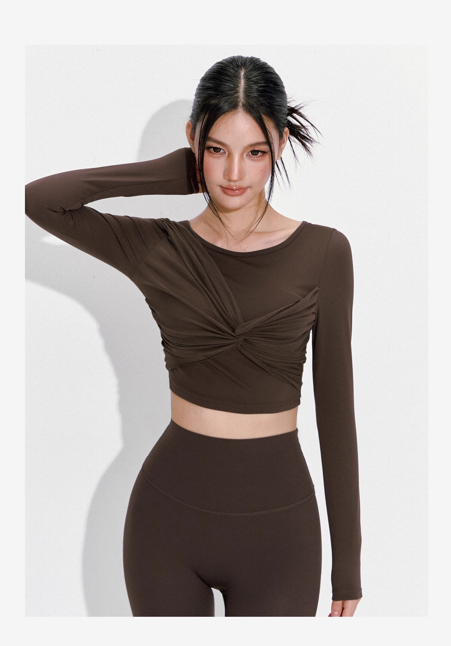 LULUUVTTOH2025 new style yoga wear with chest pad for women in fall, high-end Pilates training sports long-sleeved top, hazy pink, fixed chest pad M (recommended 100-110 Jin Jin equals 0.5 kg)