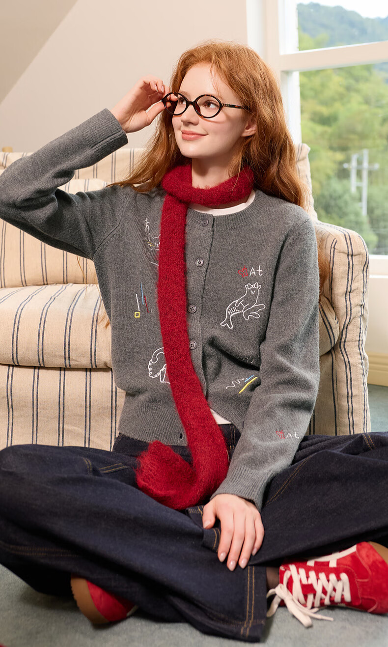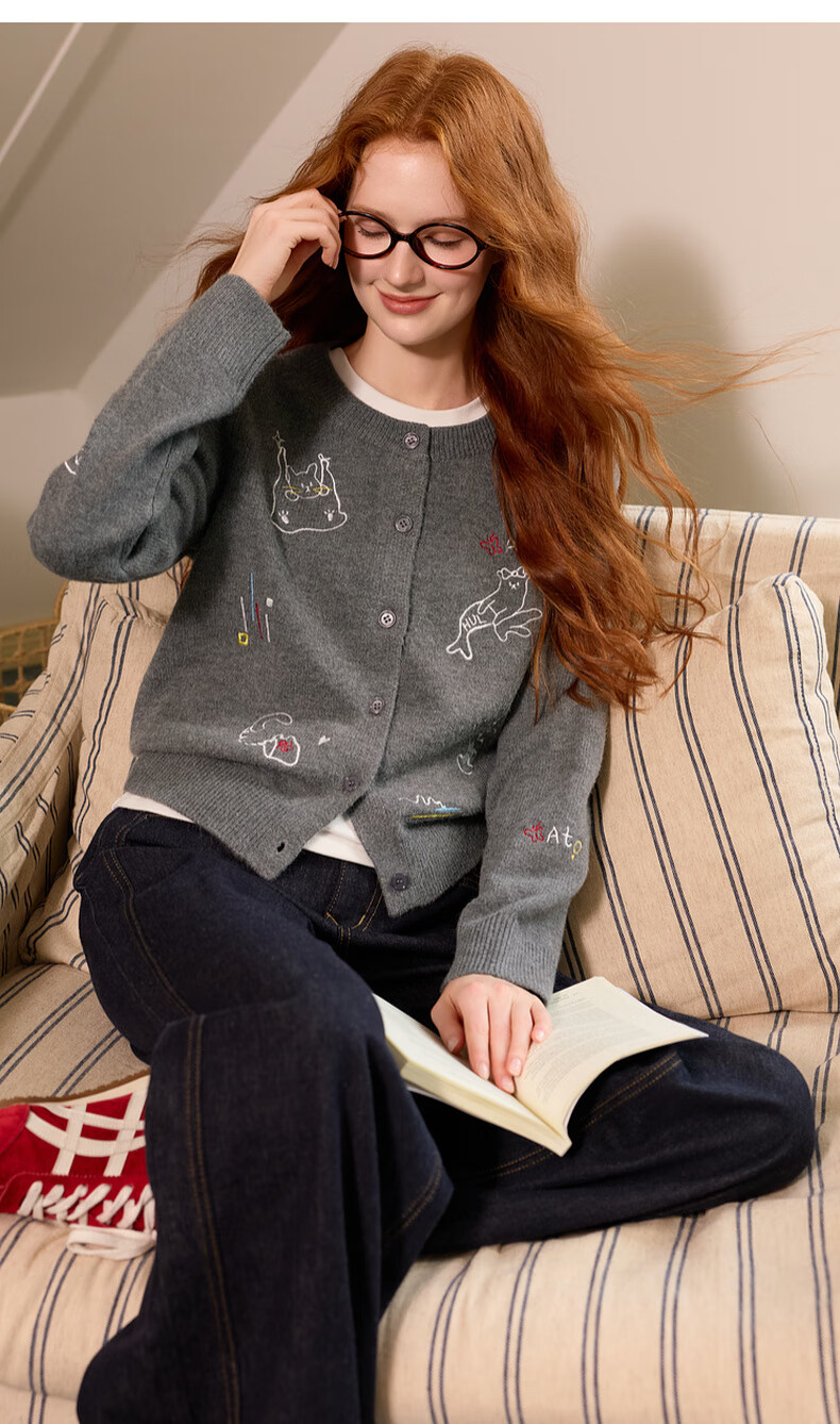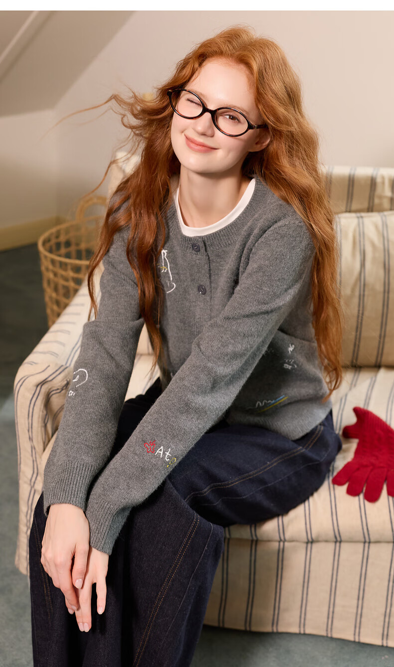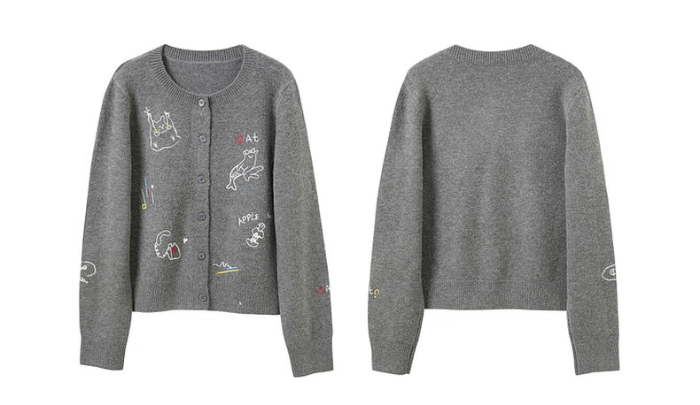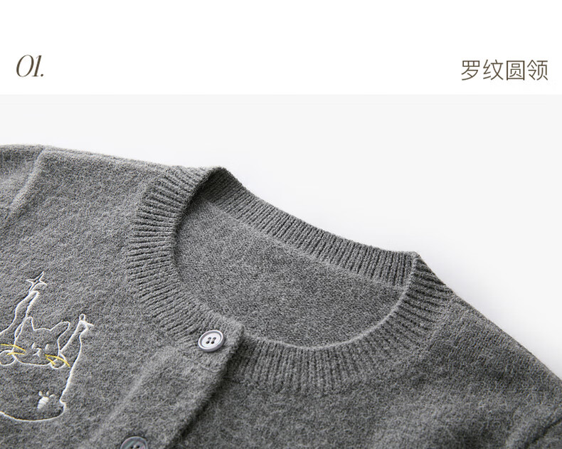 Sancai 2025 Winter New Embroidered Sweater Round Neck Sweater Long Sleeve Cardigan Premium Gray Casual M Rock Gray M 160/84A