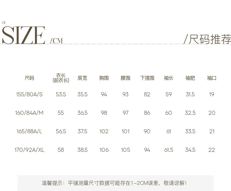 China (cm) 160-165/84-86 165-170 / 88-90 167-172 / 92-96 168-173 / 98-102 170-176 / 106-110