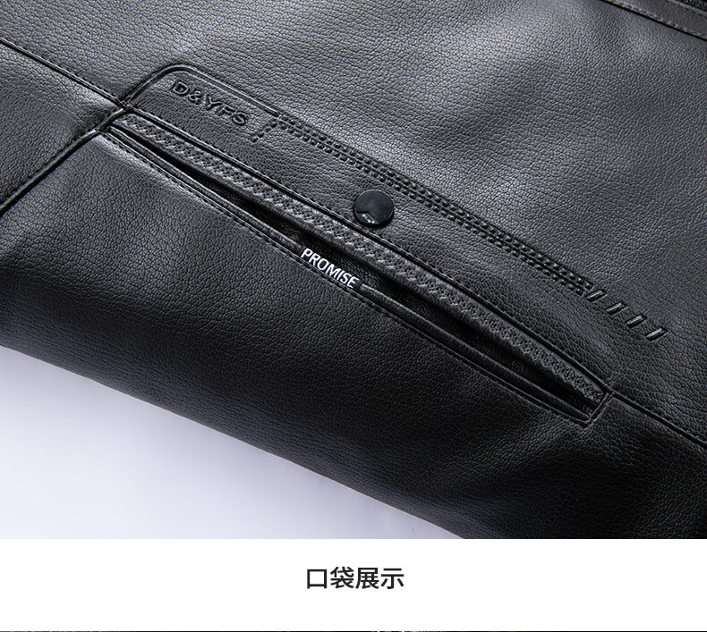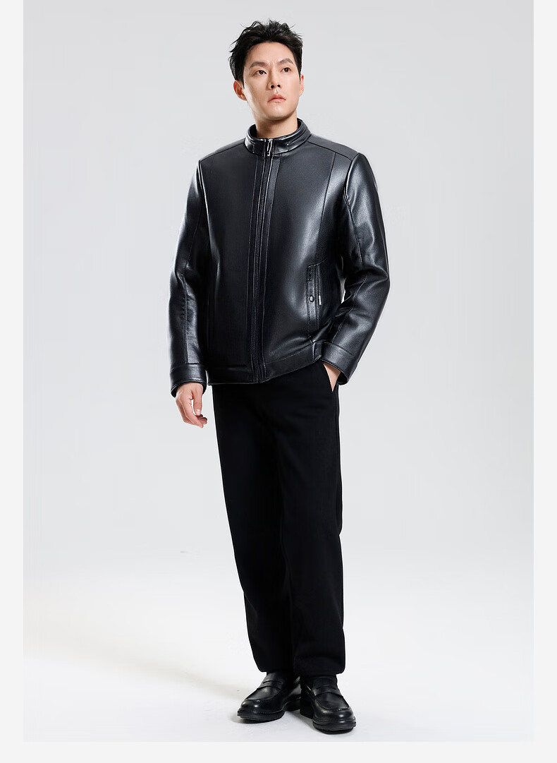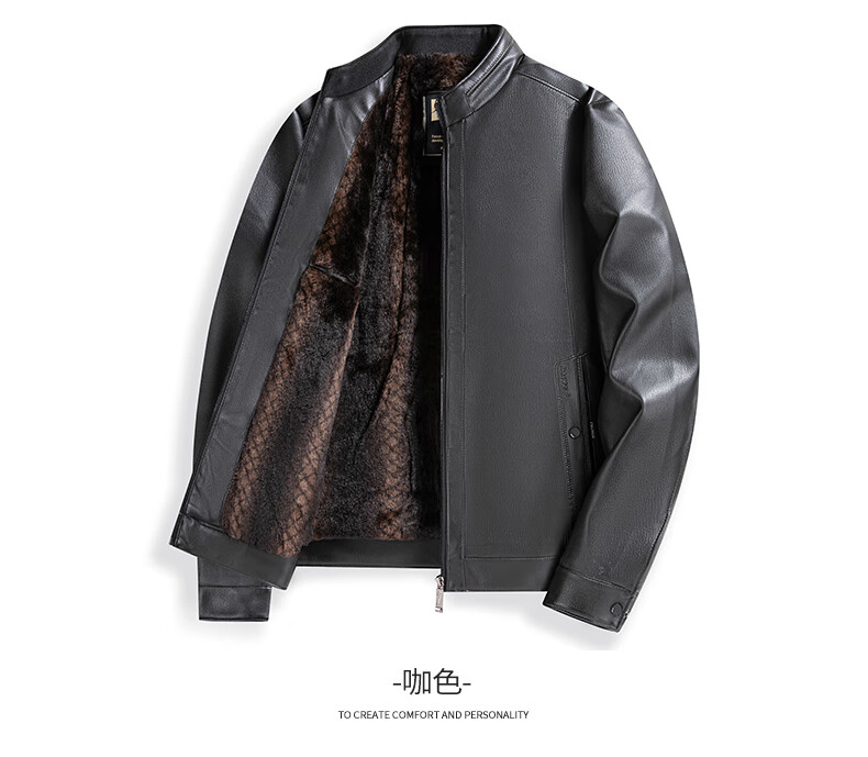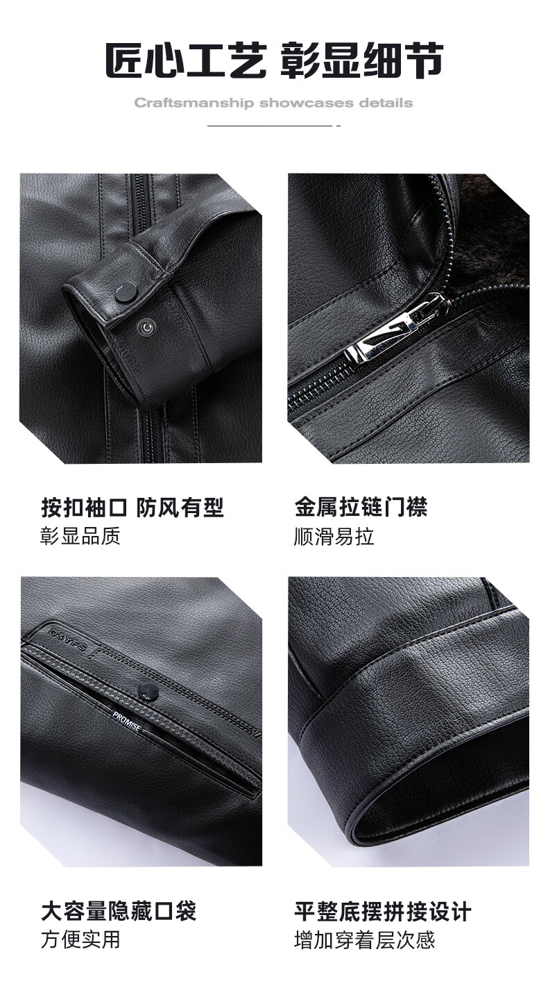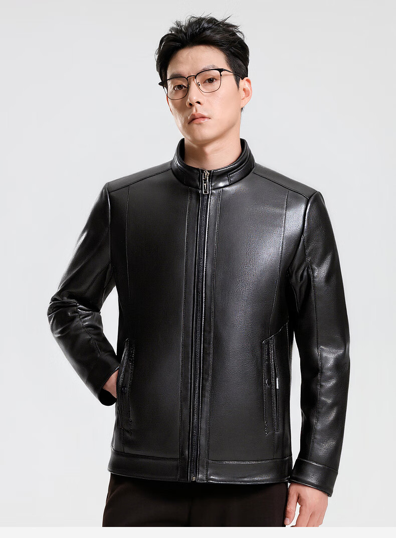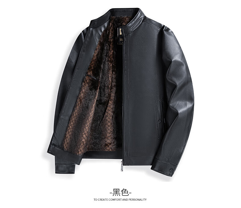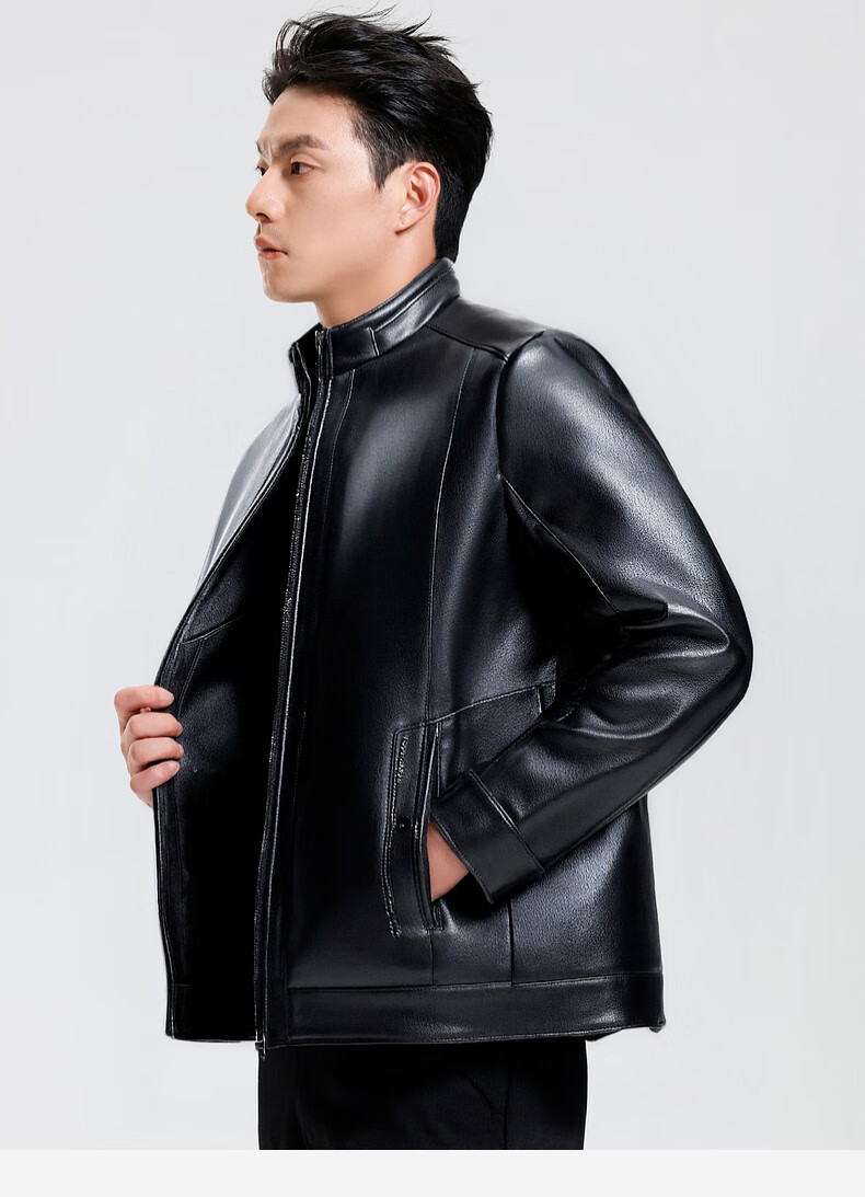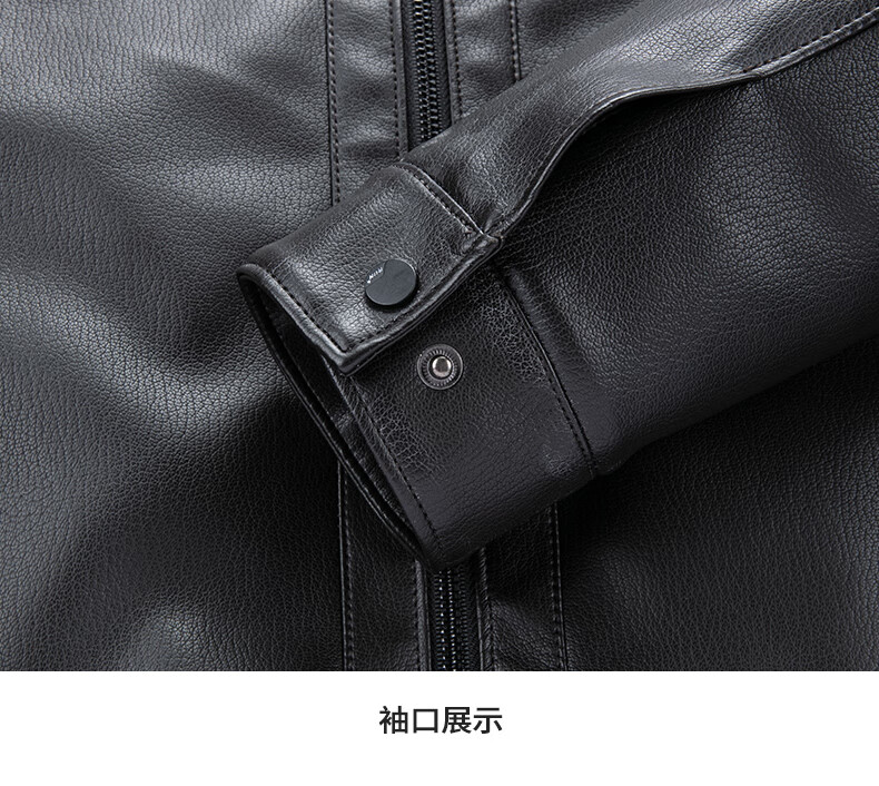 SHANSHAN Shanshan PU Leather Jacket Men's 2025 Winter Warm Casual Lined Velvet Men's Easy-Care Wear-Resistant Long-Sleeved Jacket Black L /175