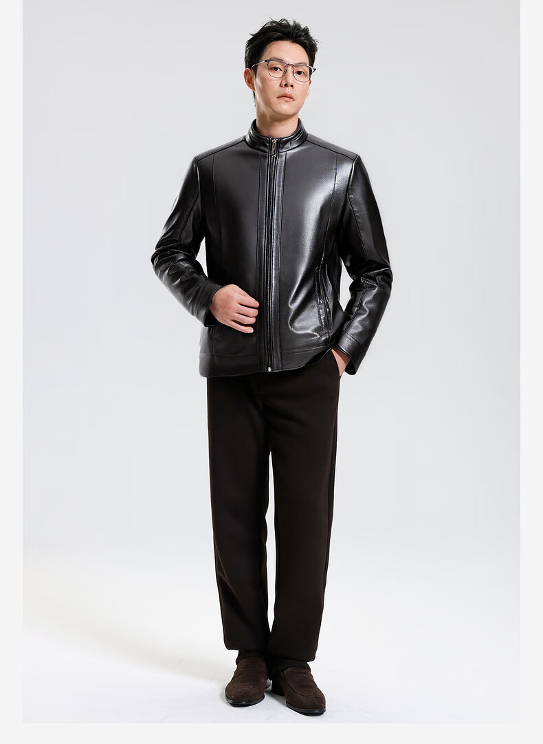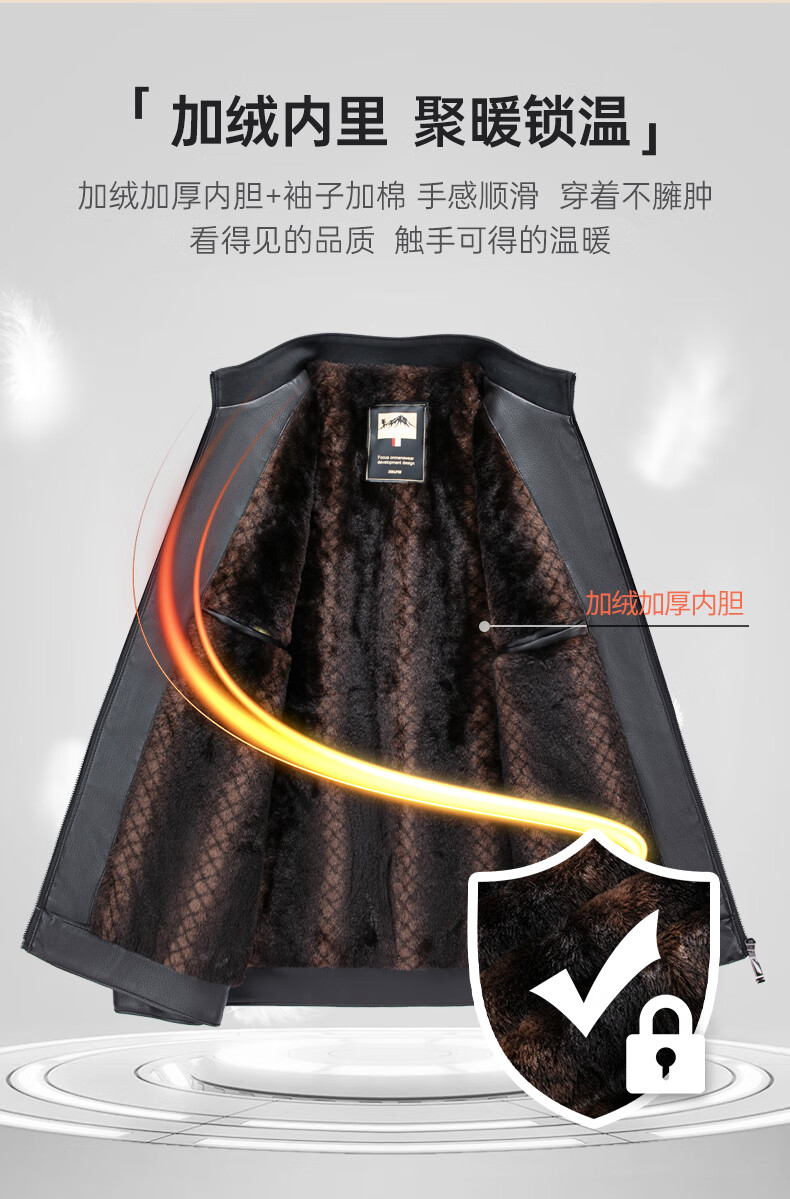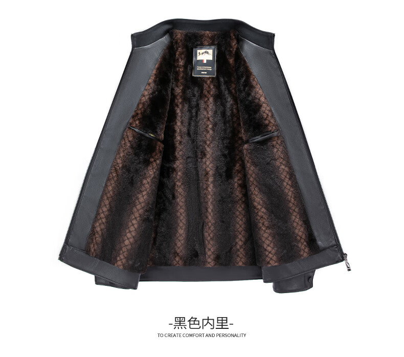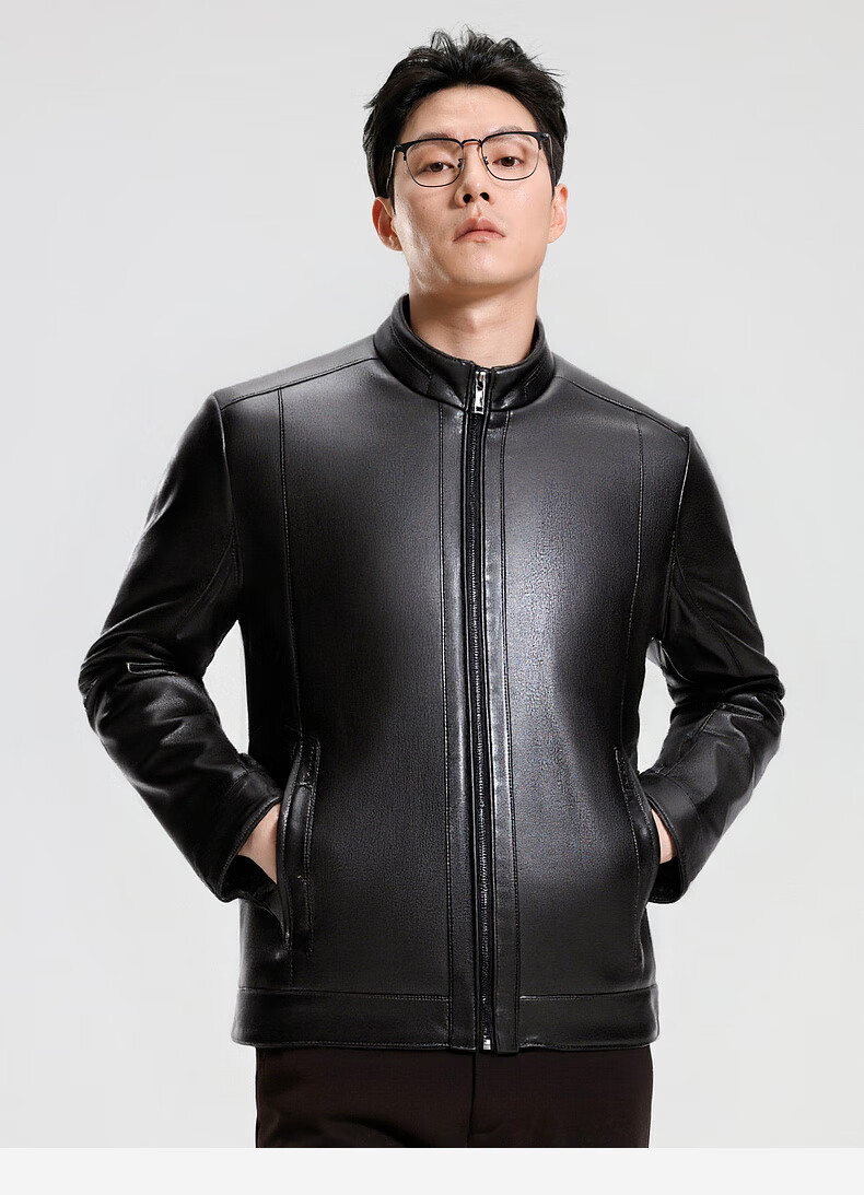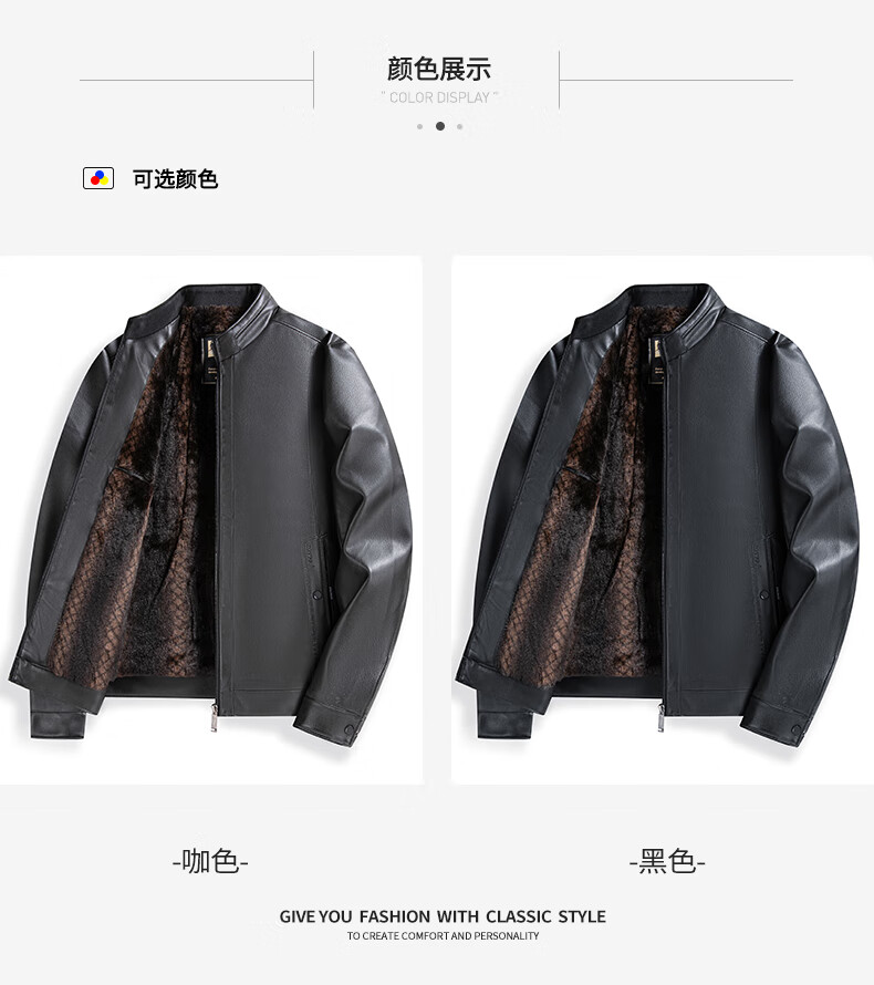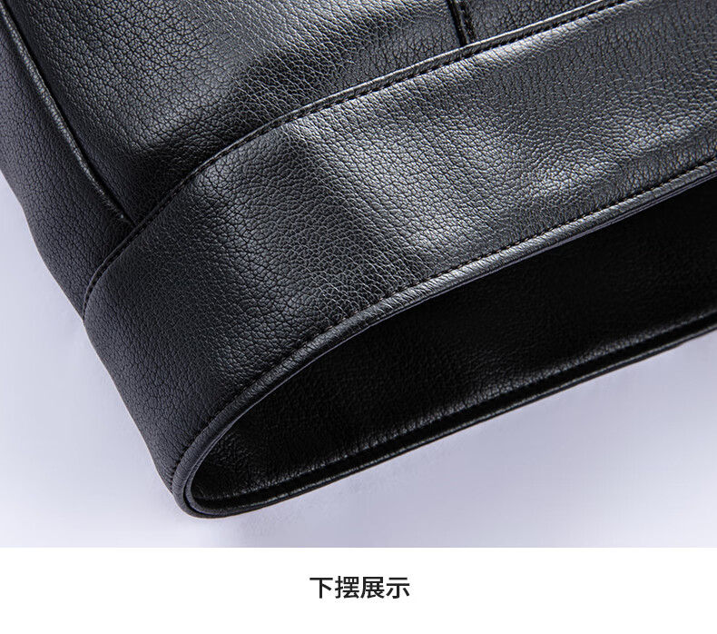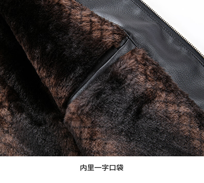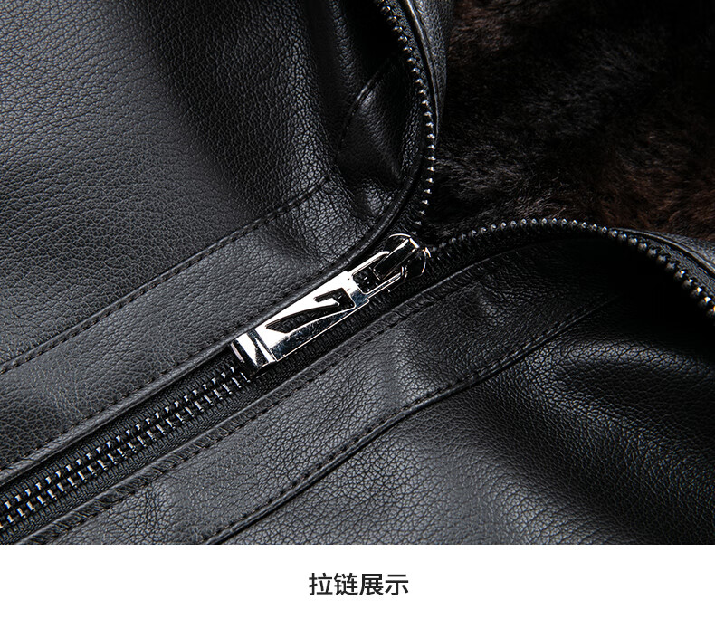 SHANSHAN Shanshan PU Leather Jacket Men's 2025 Winter Warm Casual Lined Velvet Men's Easy-Care Wear-Resistant Long-Sleeved Jacket Black L /175