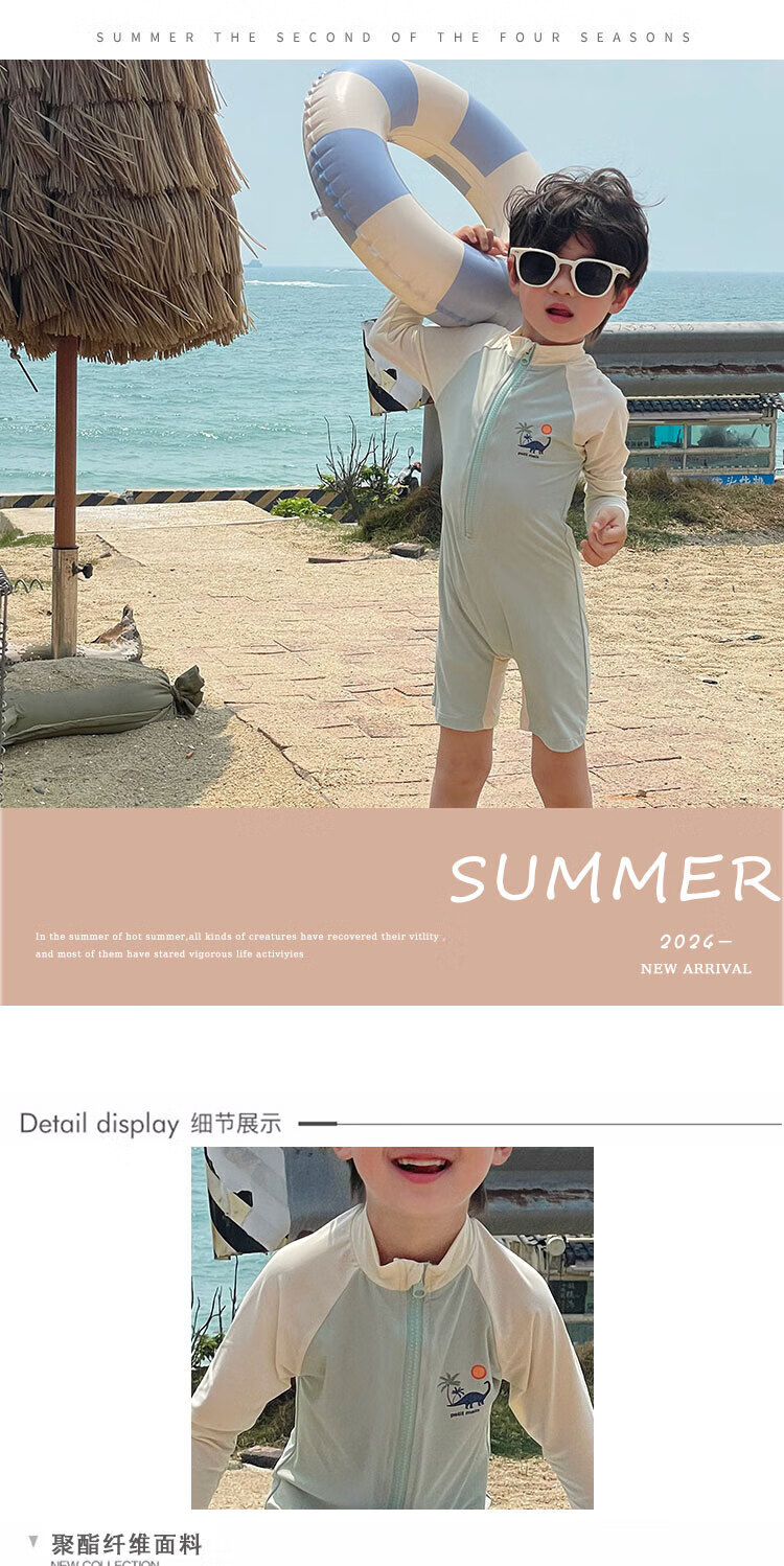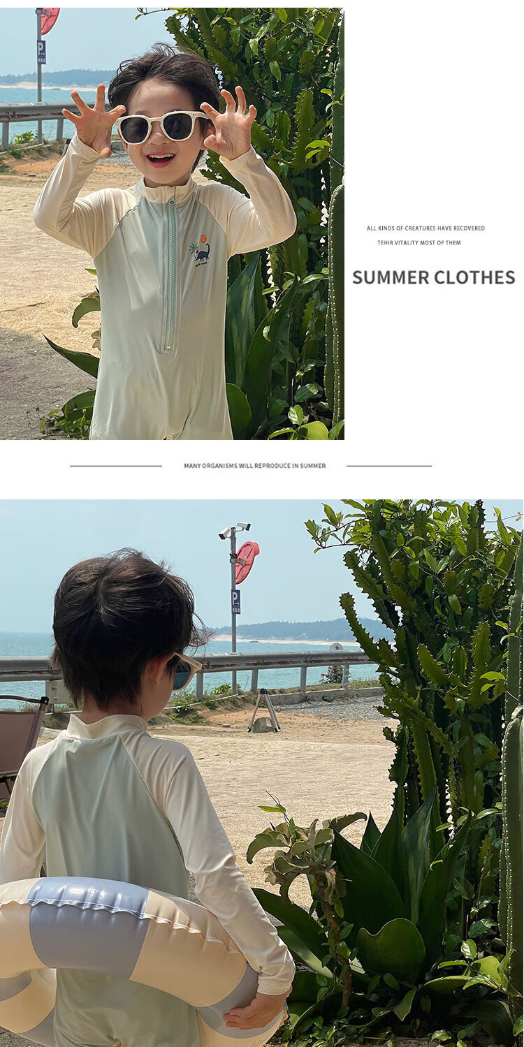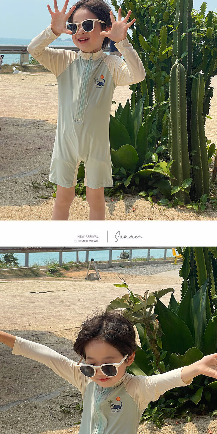 Zailu children's swimsuit for boys and girls 2025 new one-piece long-sleeved sun protection quick-drying dry swimsuit for baby beach vacation travel Dinosaur 90 recommended height 75-85CM