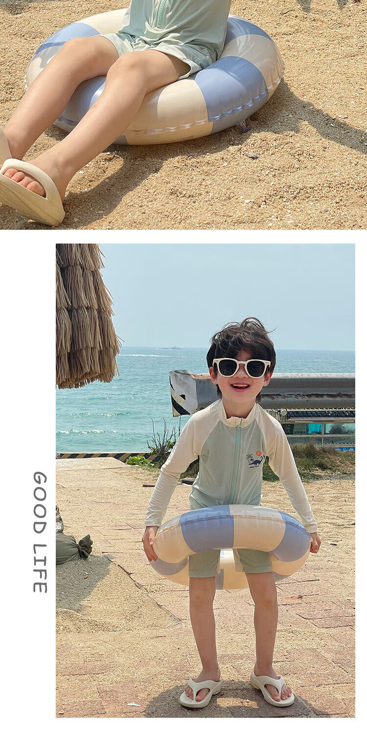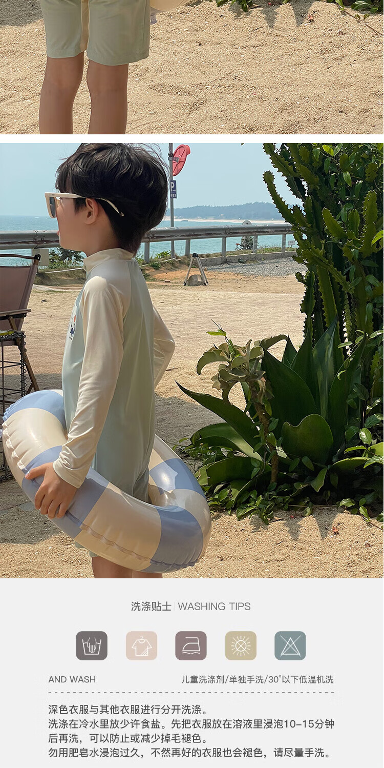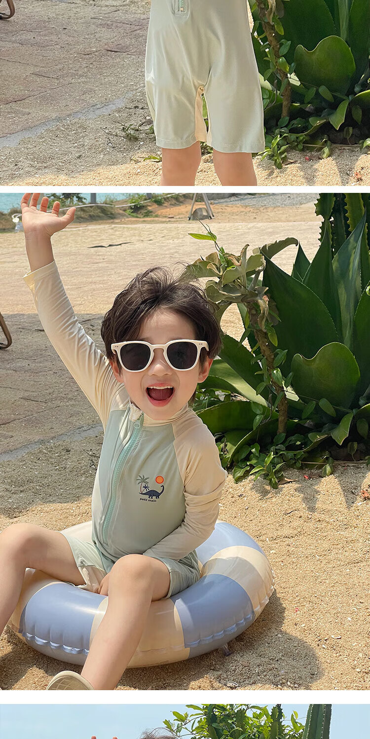 Zailu children's swimsuit for boys and girls 2025 new one-piece long-sleeved sun protection quick-drying dry swimsuit for baby beach vacation travel Dinosaur 90 recommended height 75-85CM