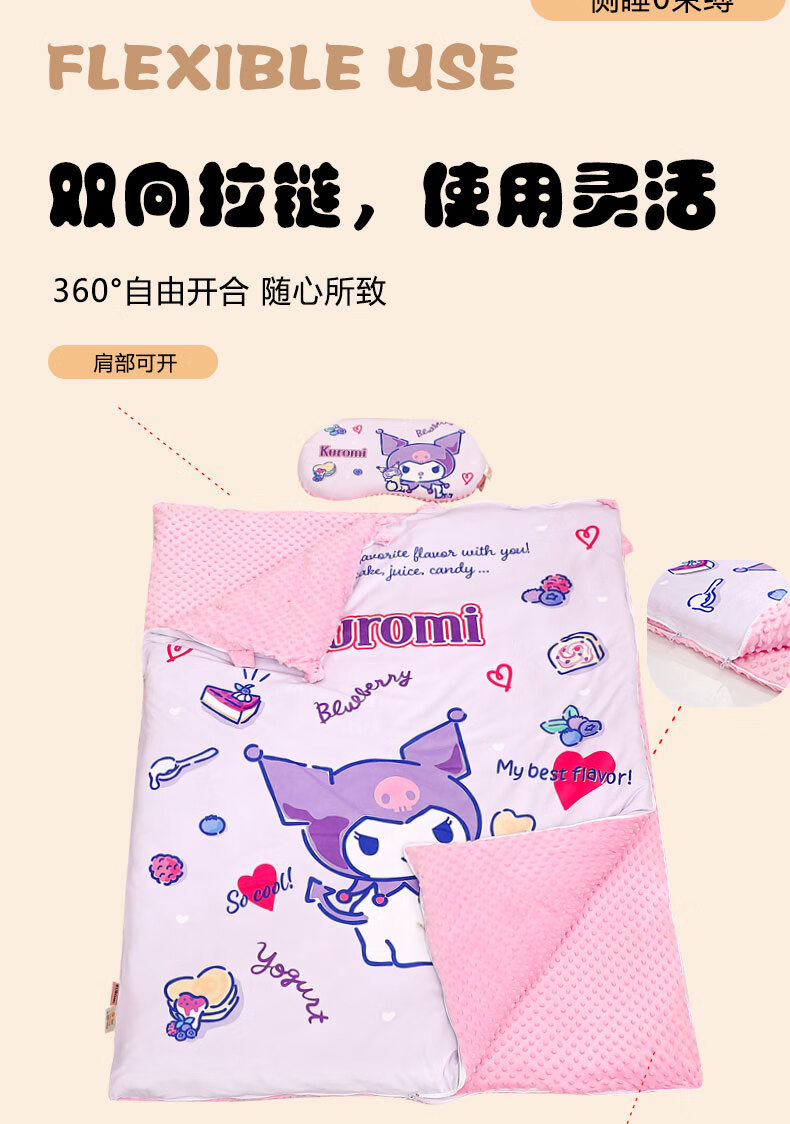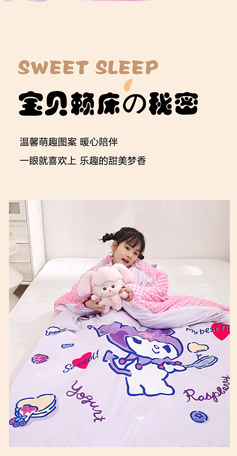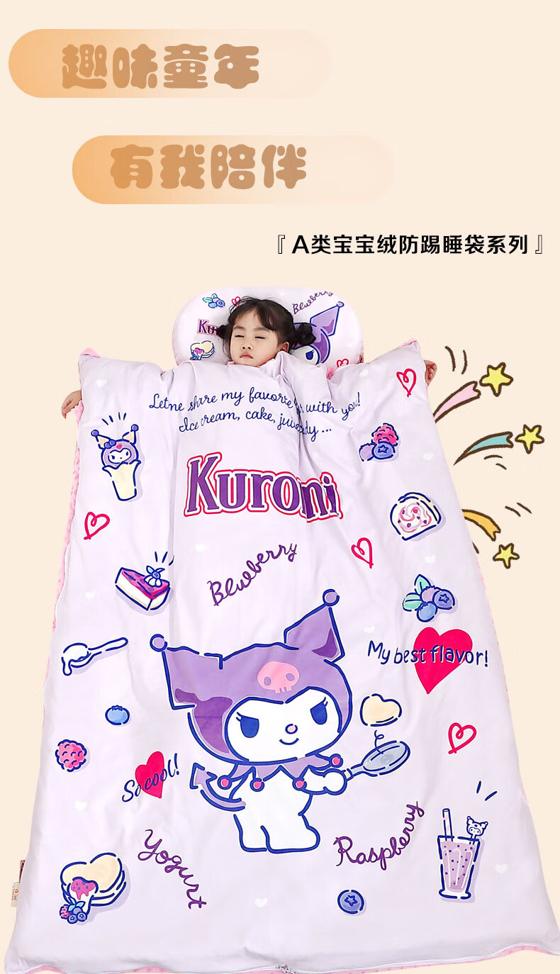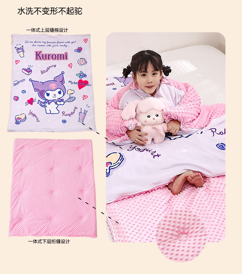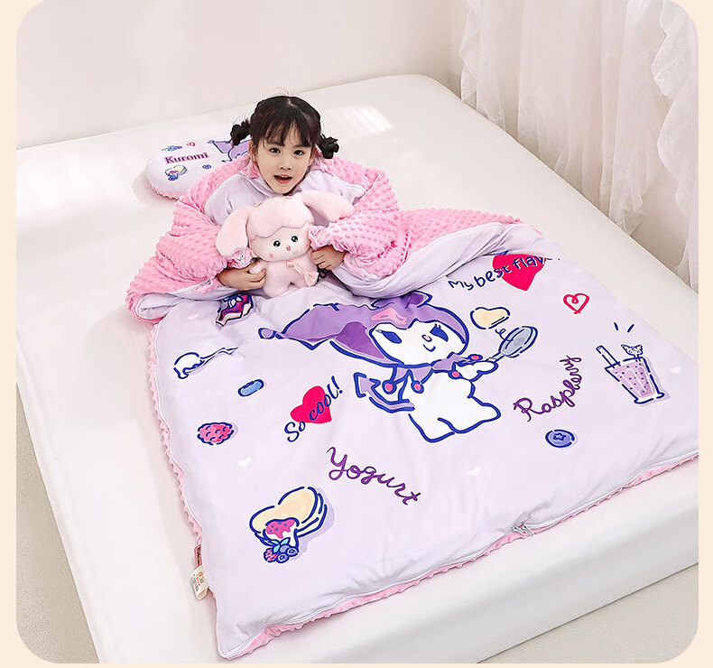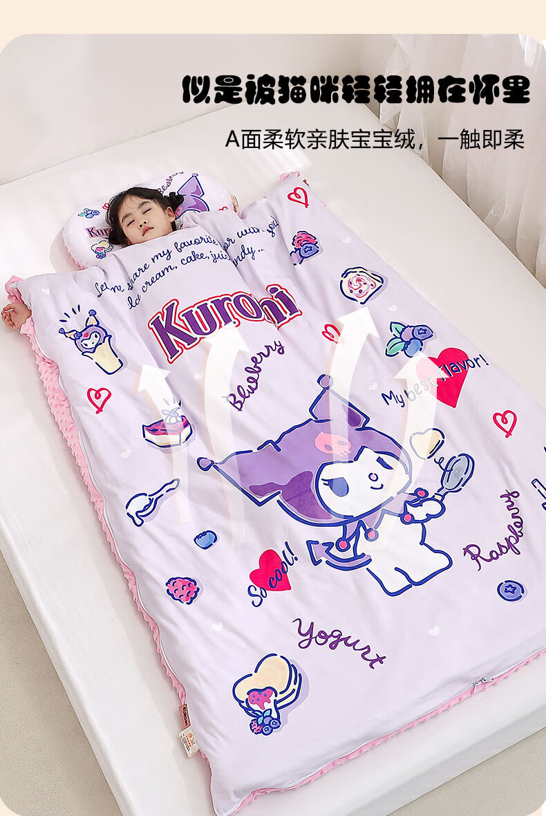 Yalu Category A Kuromi Melody All-in-one Sleeping Bag Baby Velvet Sheet Dual-Purpose Thin Padded Sheet for Girls, Medium and Large Children Split-Type Detachable Sleeping Bag-Melody Trojan Warm Velvet Beanie Double-sided Partitioned Neck Pillow