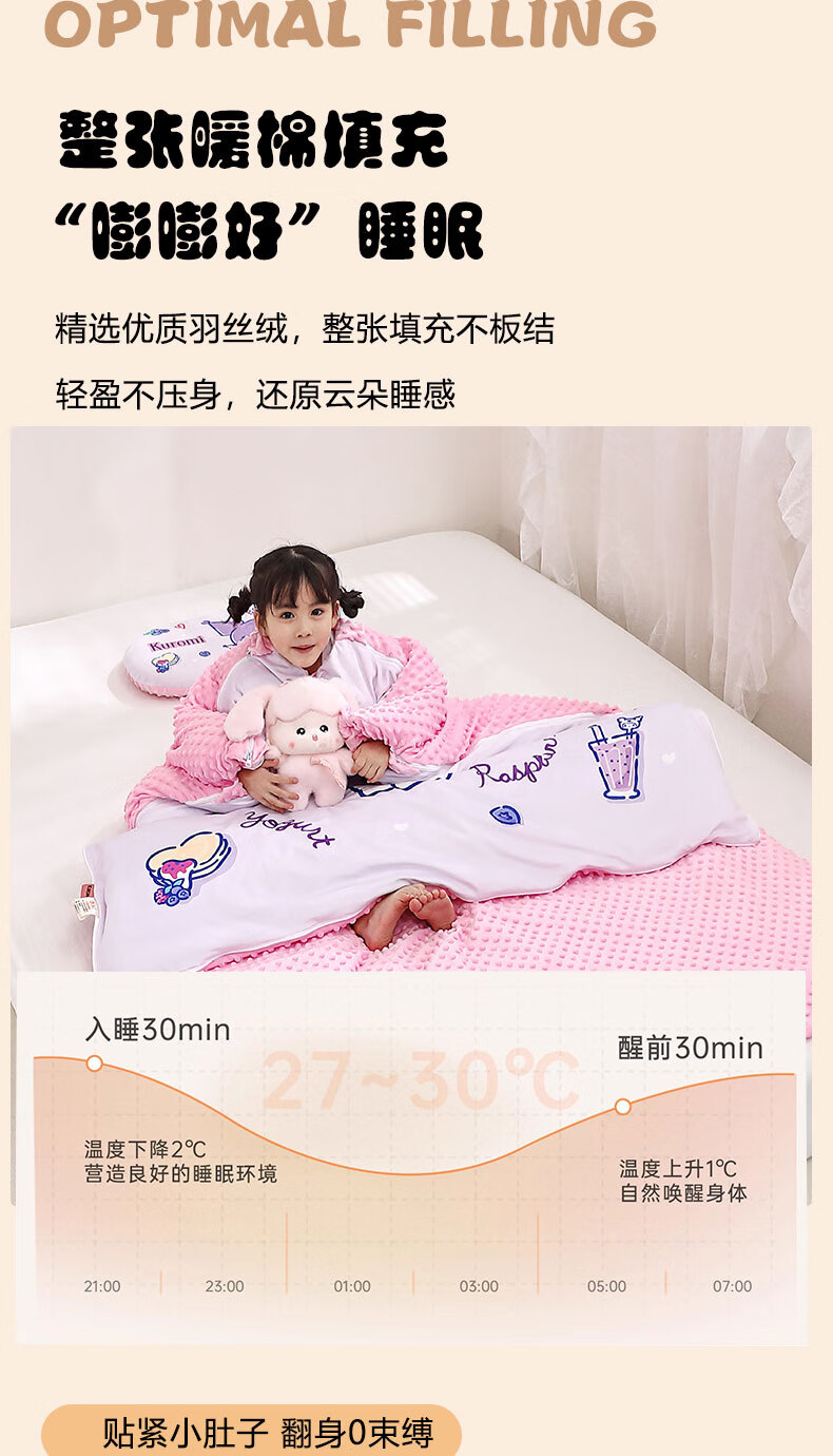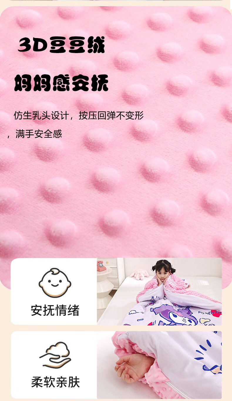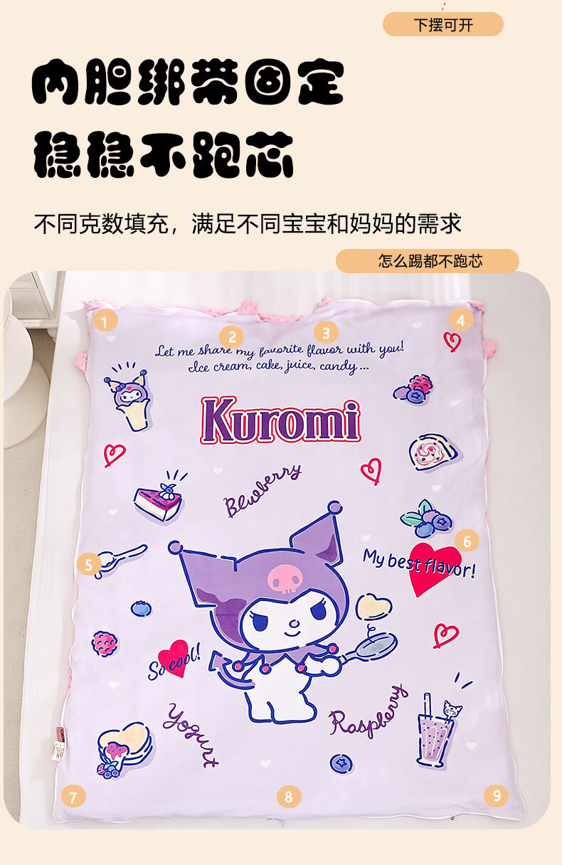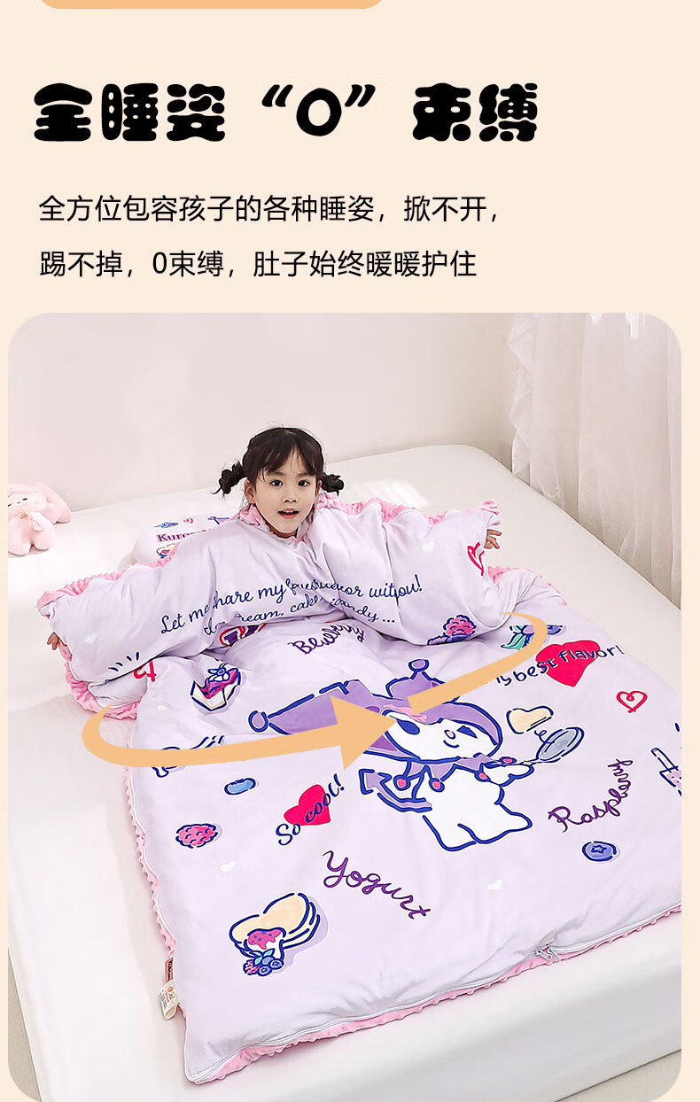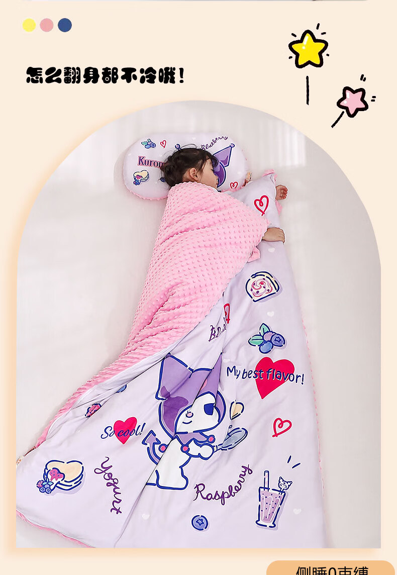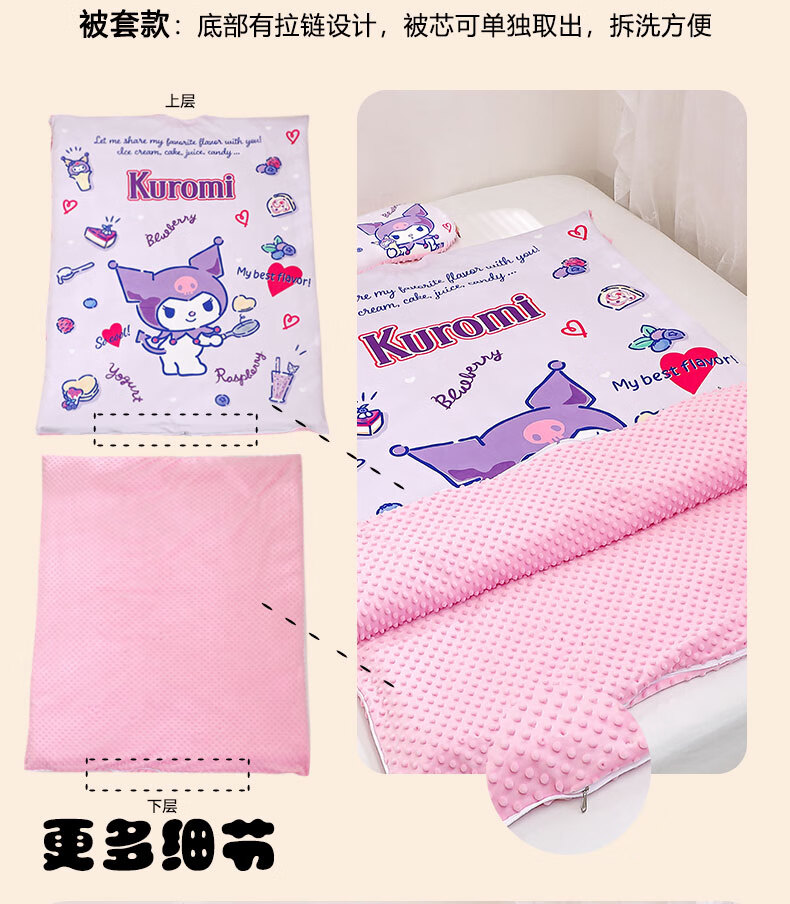 Yalu Category A Kuromi Melody All-in-one Sleeping Bag Baby Velvet Sheet Dual-Purpose Thin Padded Sheet for Girls, Medium and Large Children Split-Type Detachable Sleeping Bag-Melody Trojan Warm Velvet Beanie Double-sided Partitioned Neck Pillow