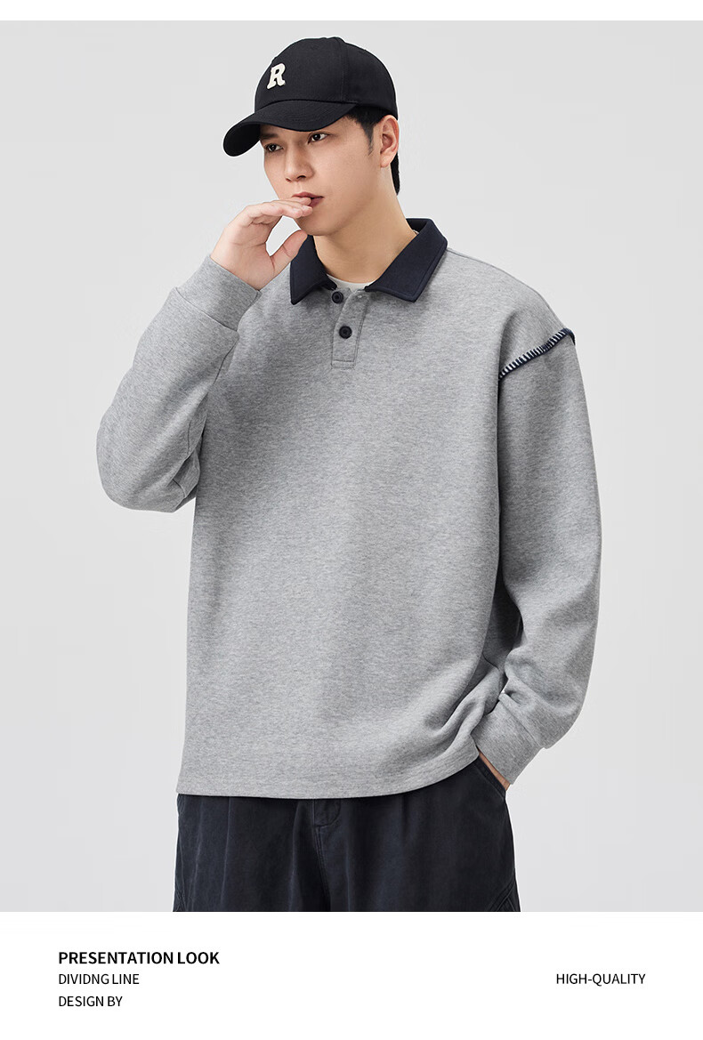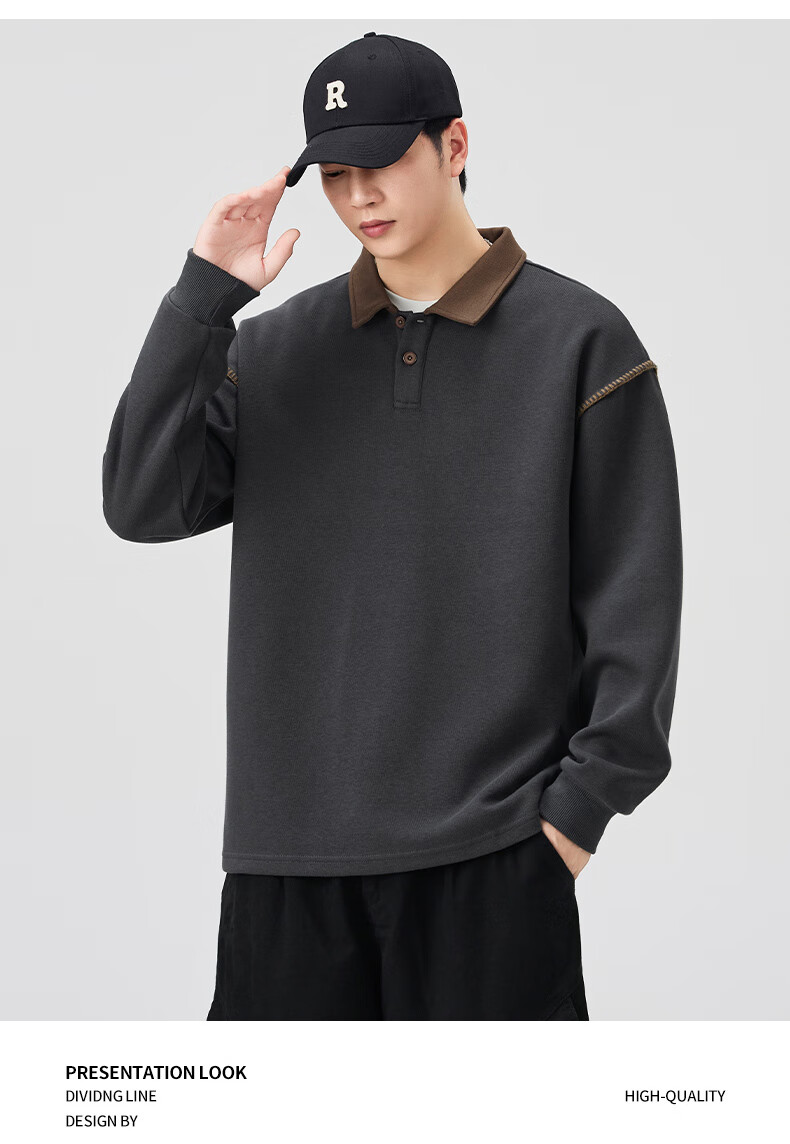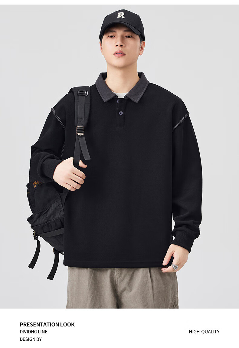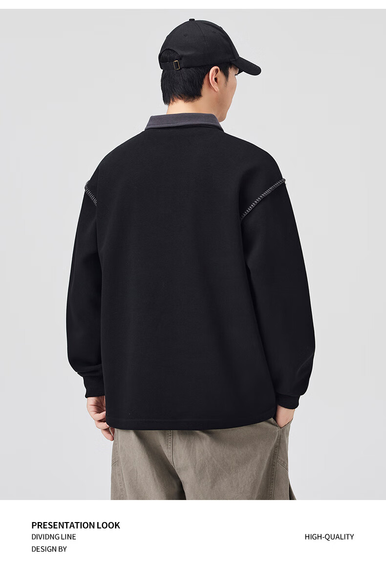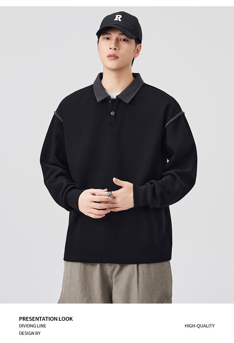 Baleno S&K Series Henley Collar Sweatshirt Men's 2025 Autumn New Loose Spring and Autumn Spliced Lapel Men's Long Sleeve T-Shirt 9605 Black L 120-140Jin Jin is equal to 0.5 kg