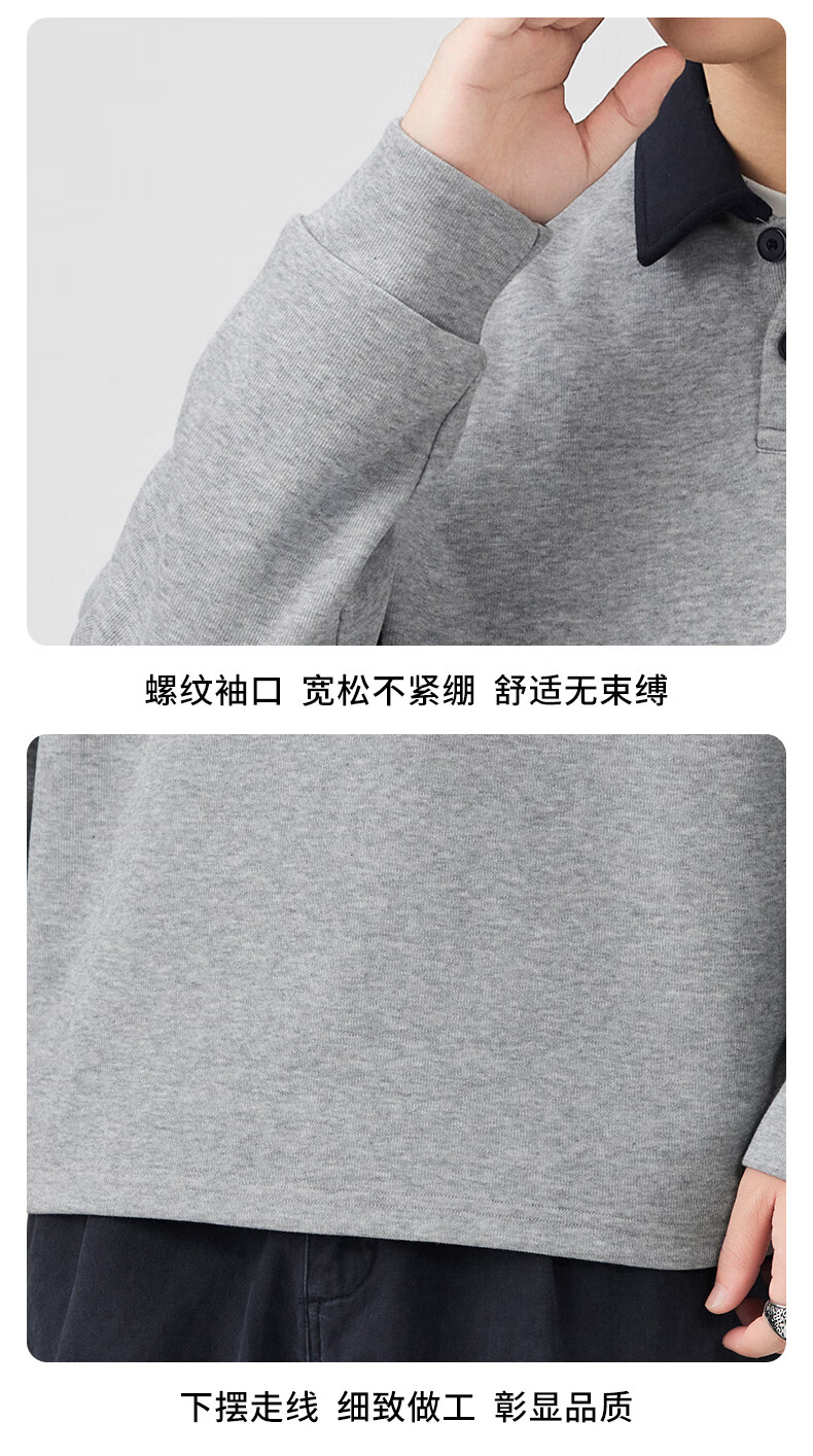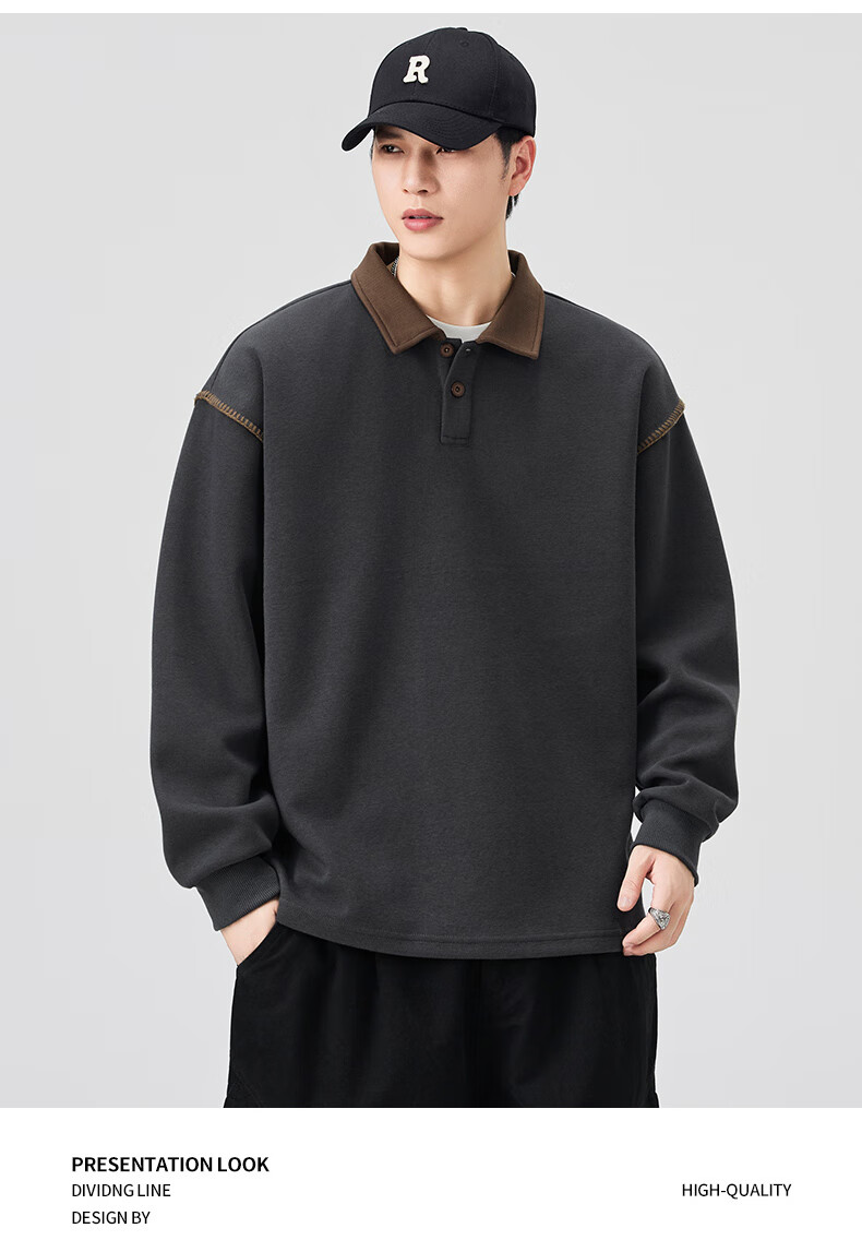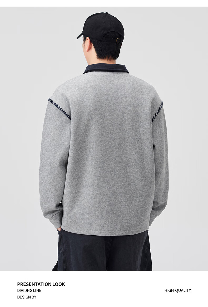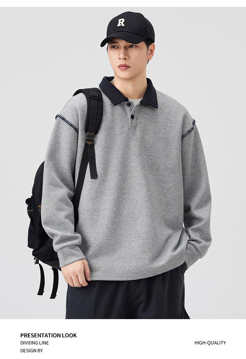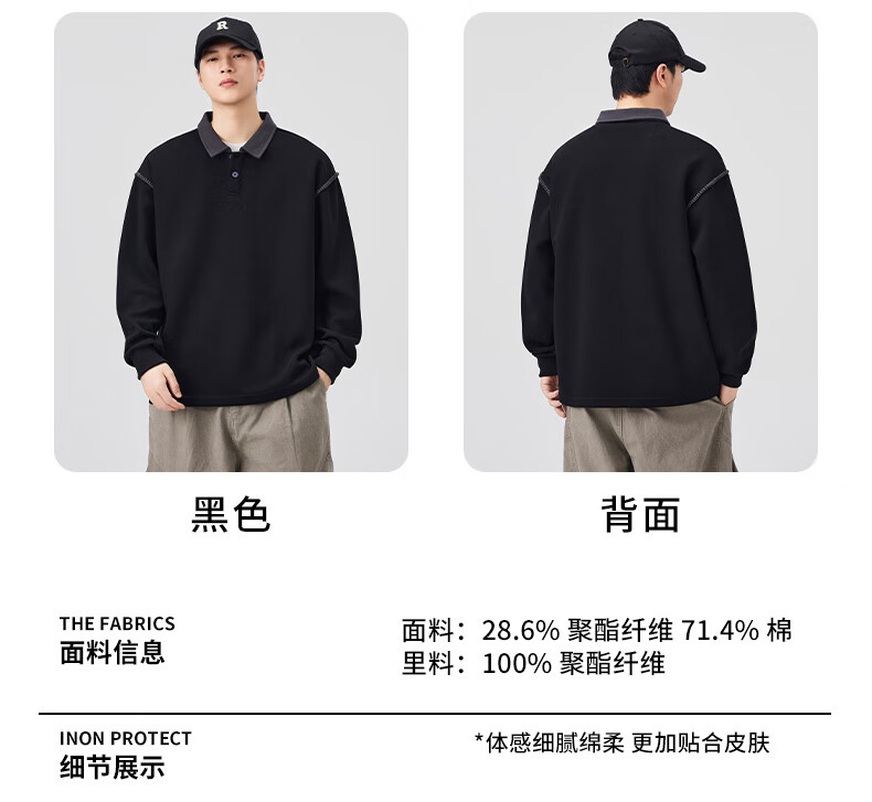 Baleno S&K Series Henley Collar Sweatshirt Men's 2025 Autumn New Loose Spring and Autumn Spliced Lapel Men's Long Sleeve T-Shirt 9605 Black L 120-140Jin Jin is equal to 0.5 kg