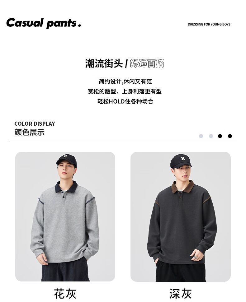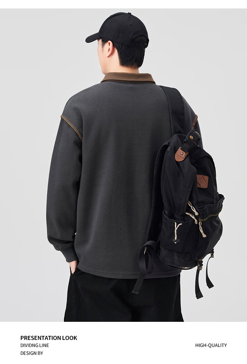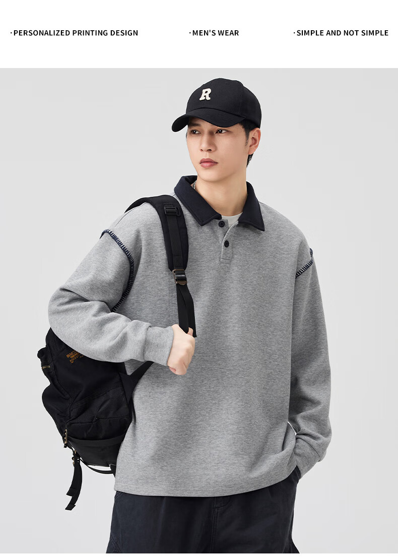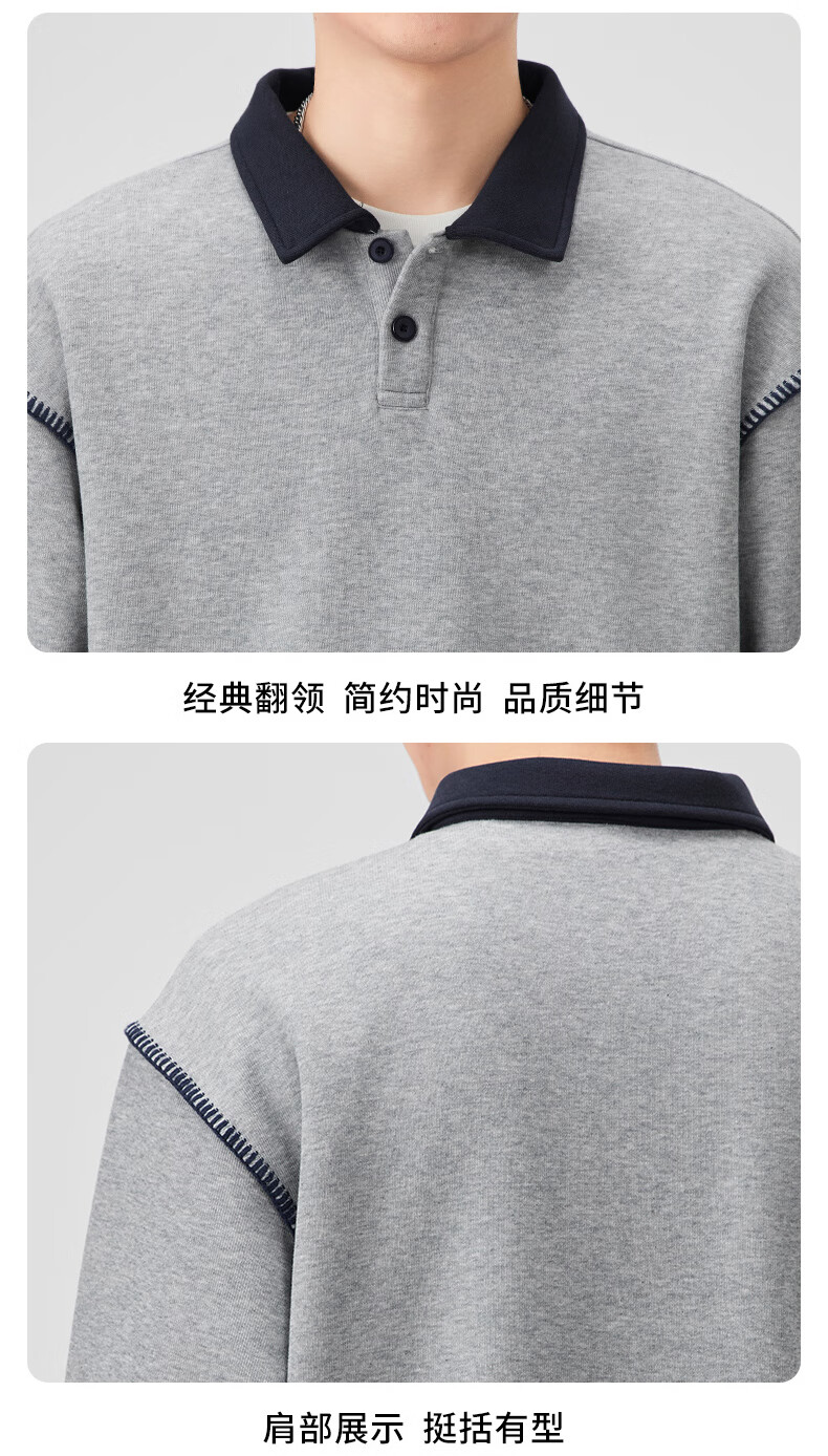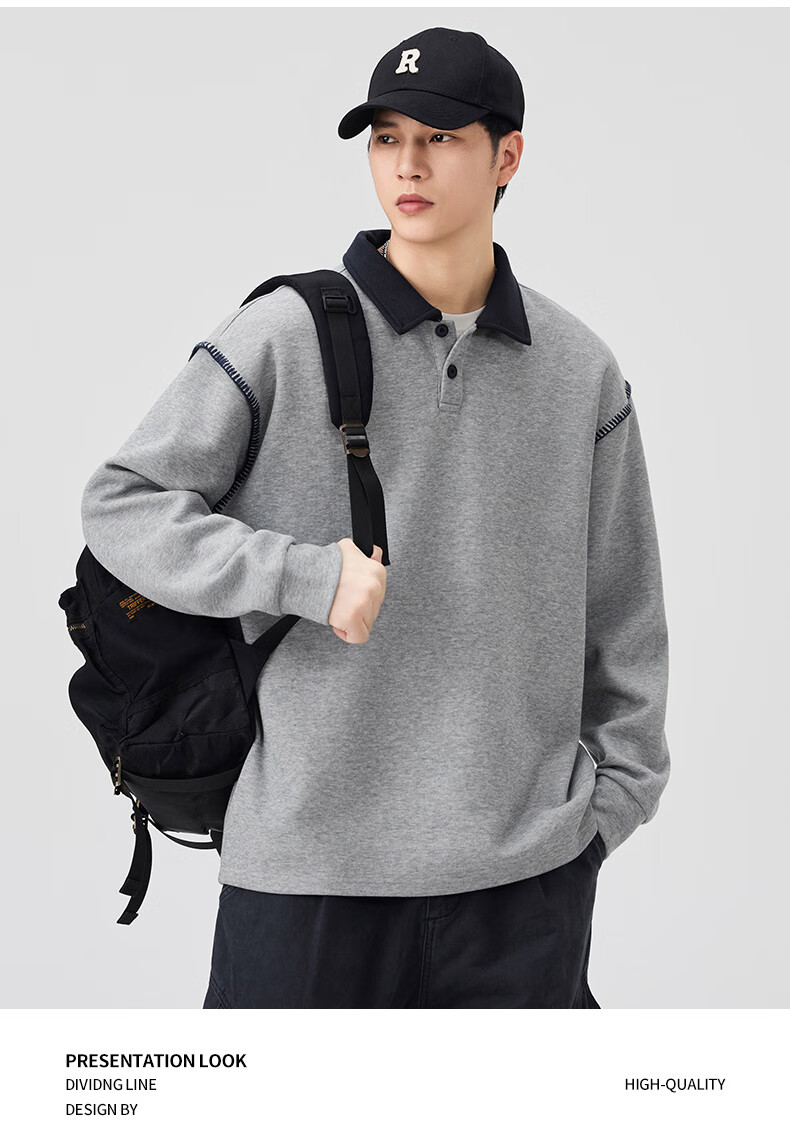 Baleno S&K Series Henley Collar Sweatshirt Men's 2025 Autumn New Loose Spring and Autumn Spliced Lapel Men's Long Sleeve T-Shirt 9605 Black L 120-140Jin Jin is equal to 0.5 kg