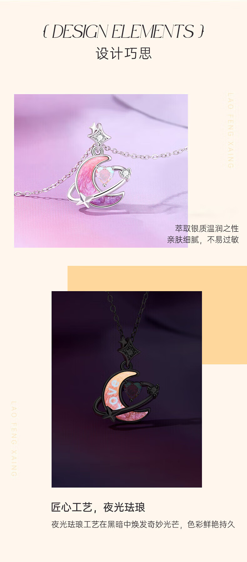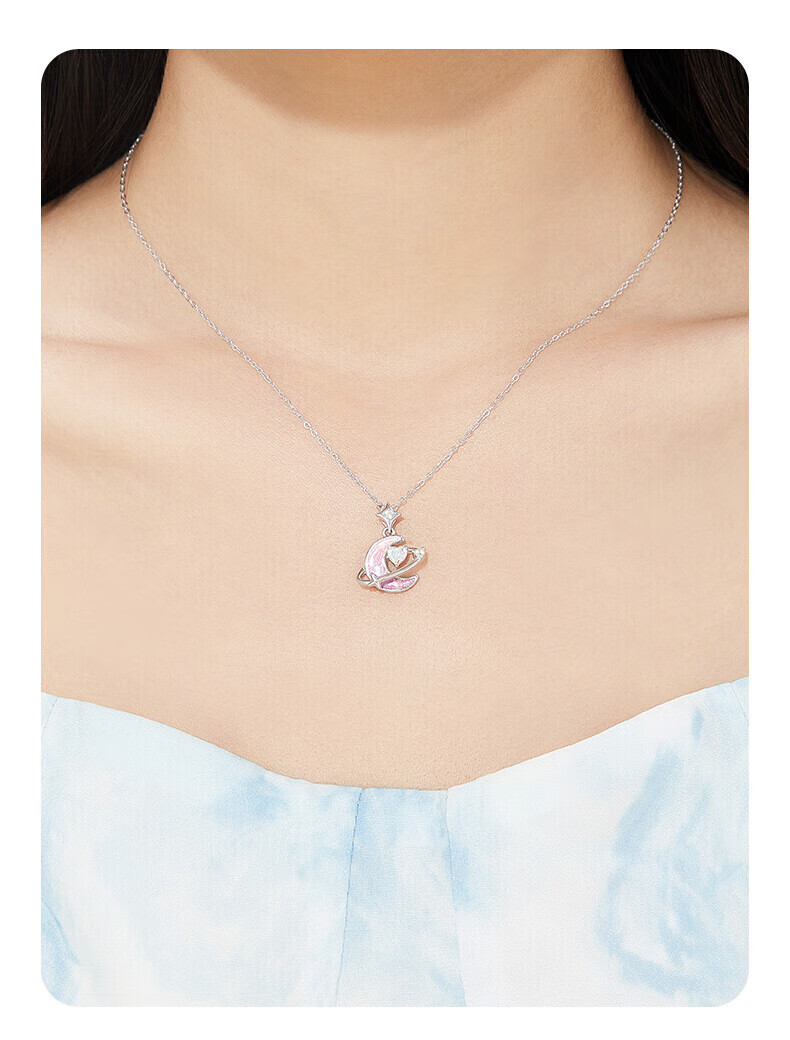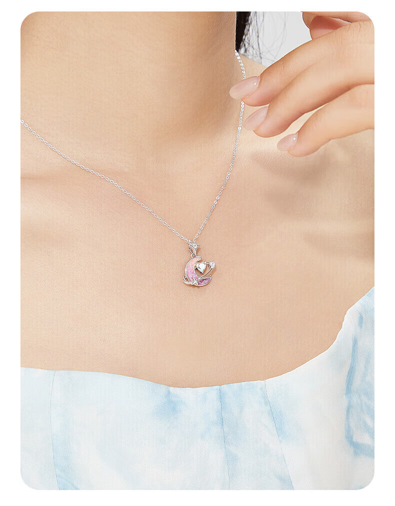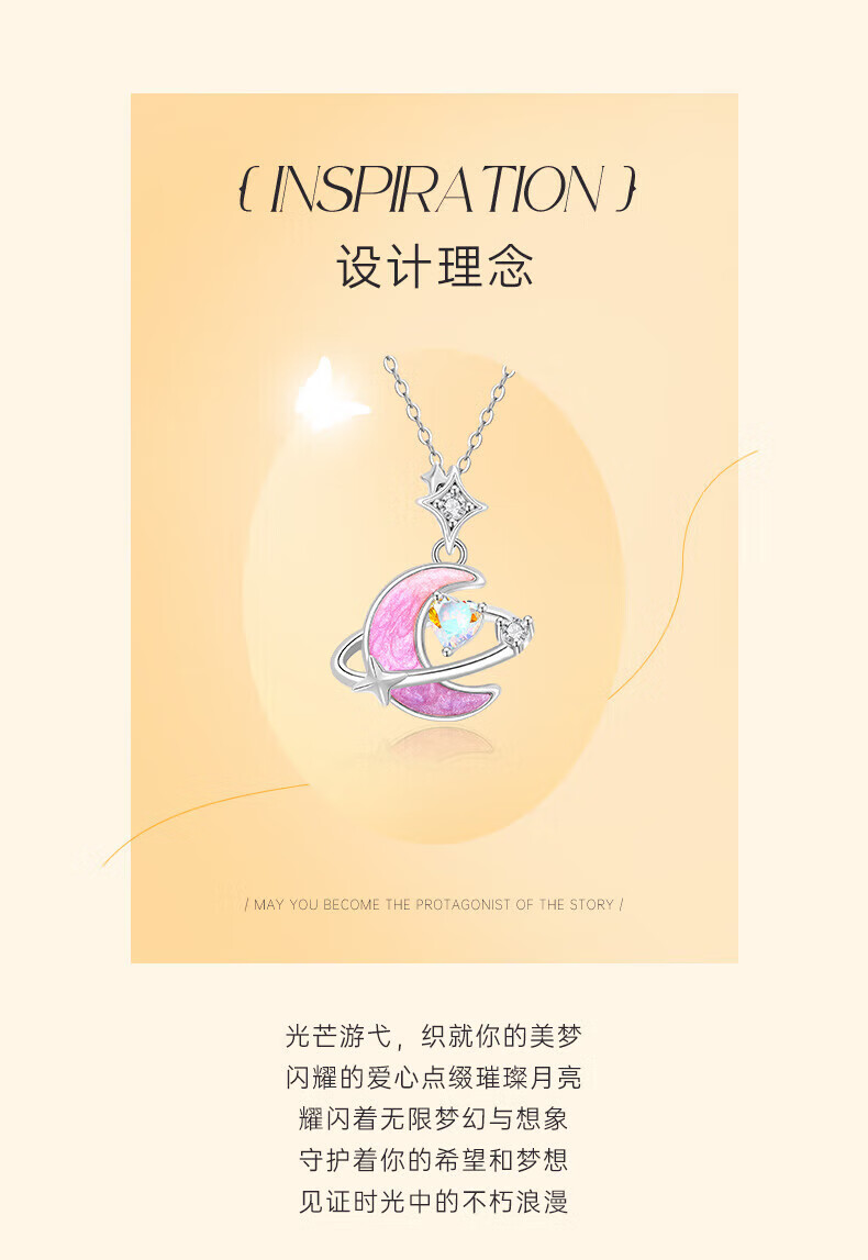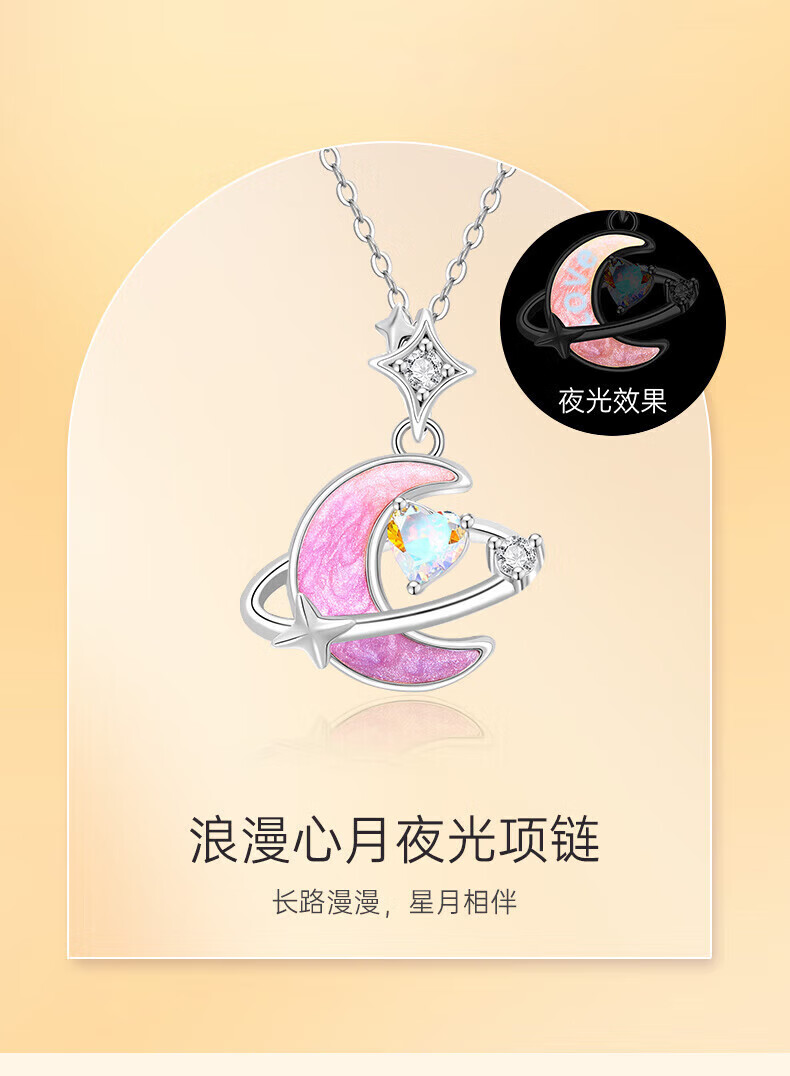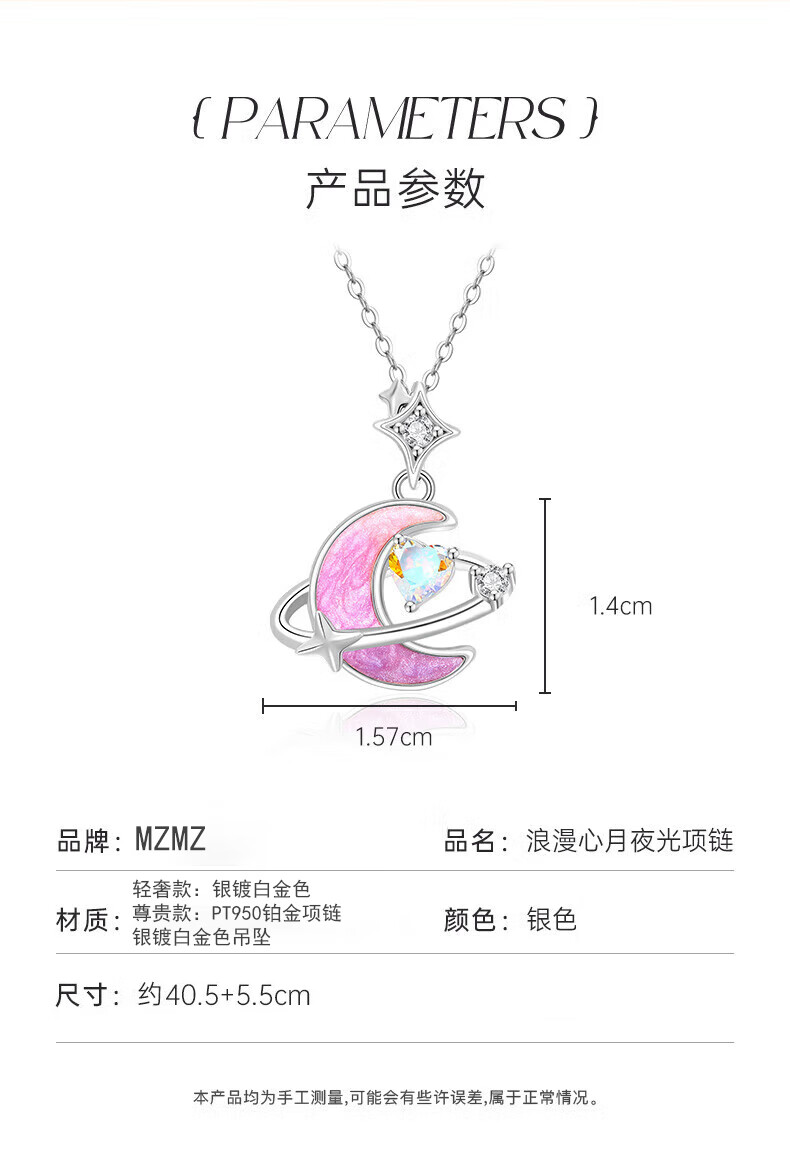 MZMZ Platinum Necklace Women's Platinum PT950 Jewelry Pendant Birthday Gift Valentine's Day for Girlfriend and Wife Light Luxury Style - Romantic Heart Moon Necklace (Free Engraving)