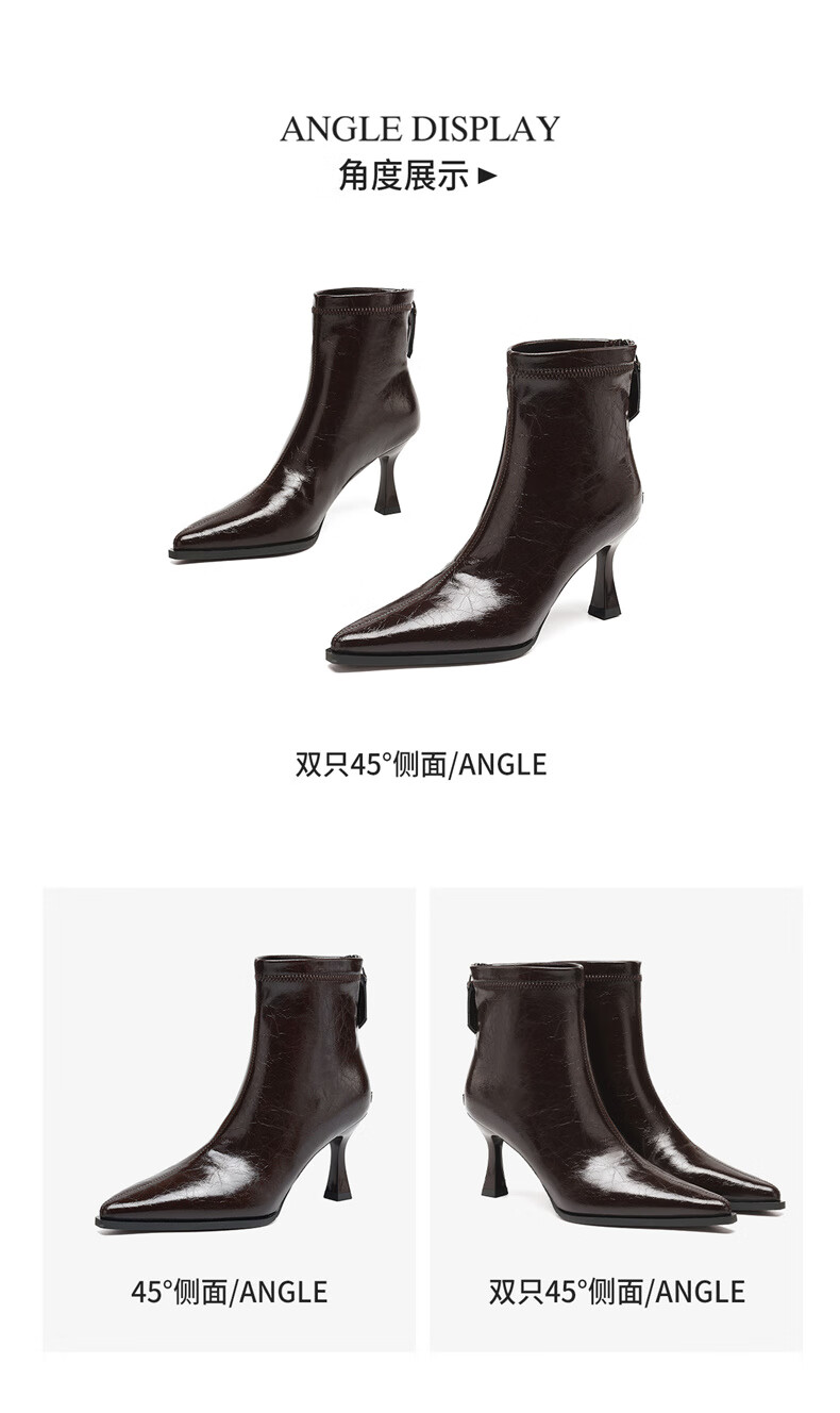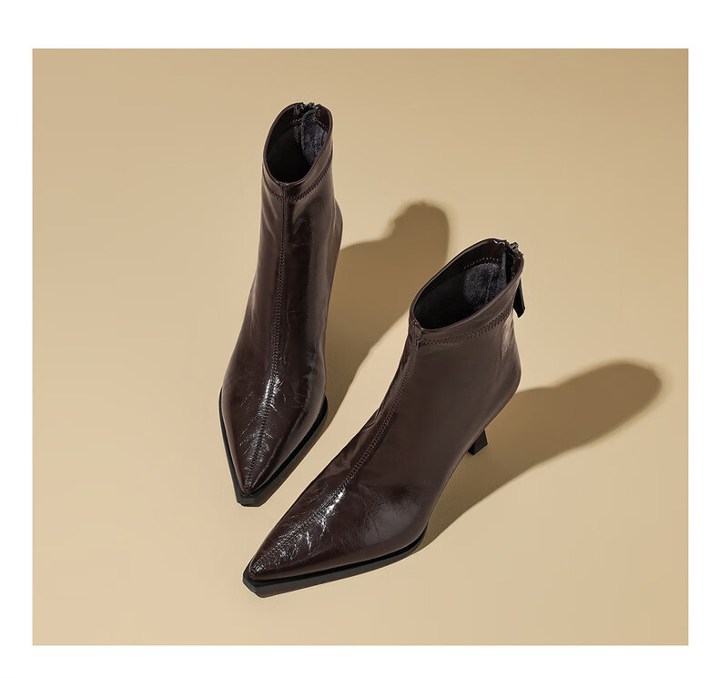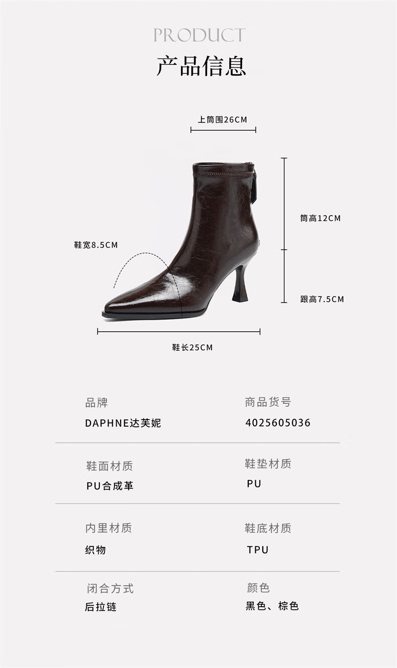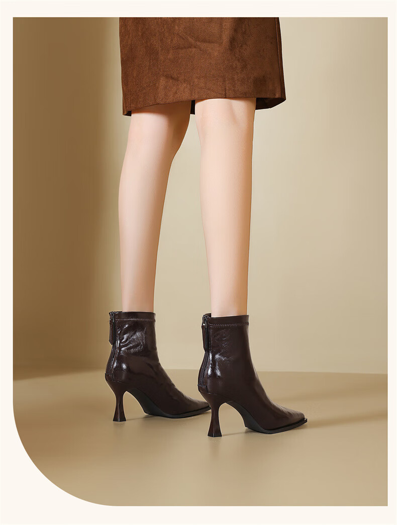 Daphne high-heeled short boots for women with thin heel and temperament autumn single boots 2025 new versatile European and American style ankle boots for women brown 38 (240mm) standard size