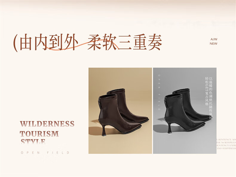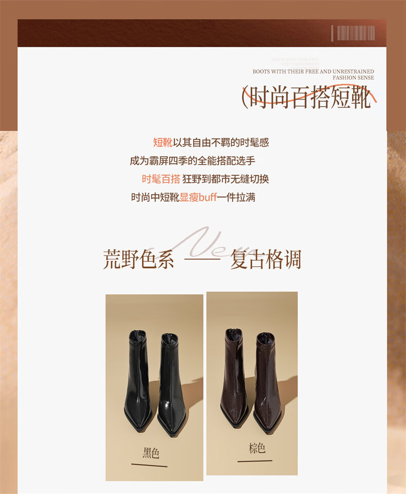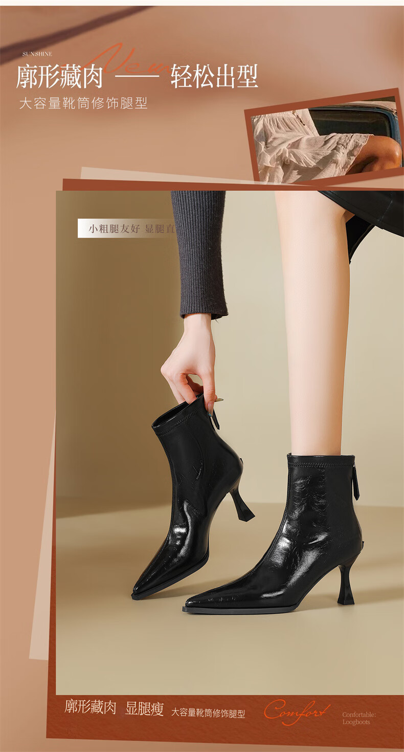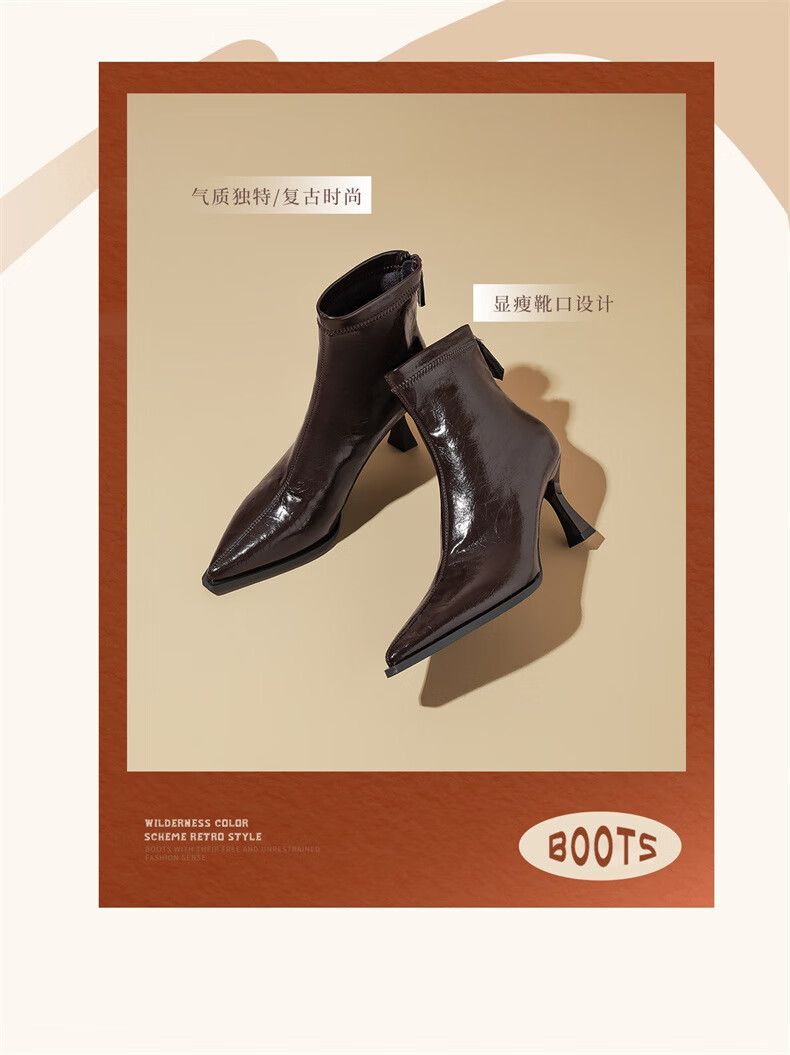 Daphne high-heeled short boots for women with thin heel and temperament autumn single boots 2025 new versatile European and American style ankle boots for women brown 38 (240mm) standard size