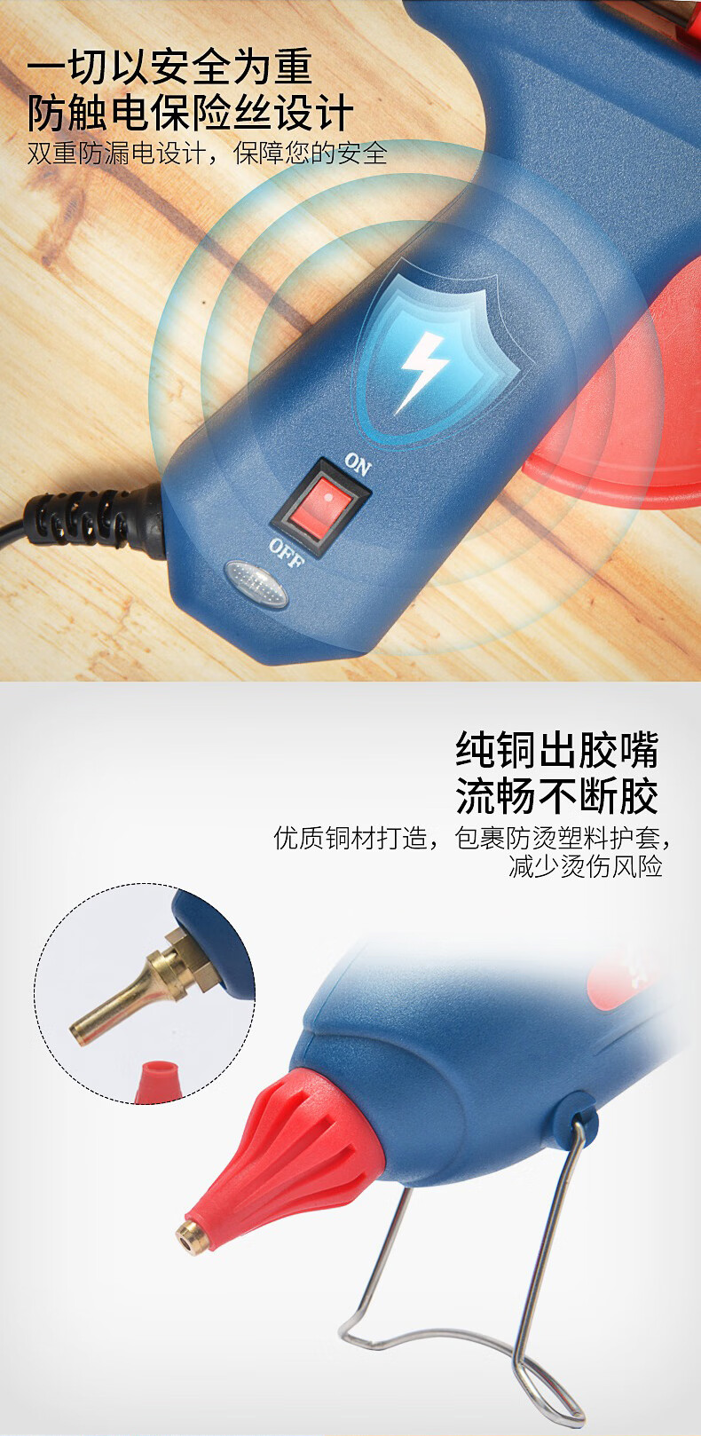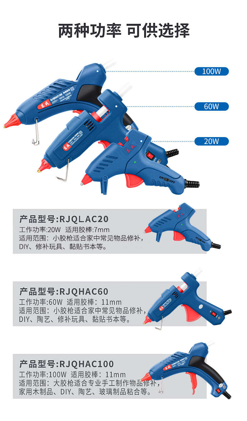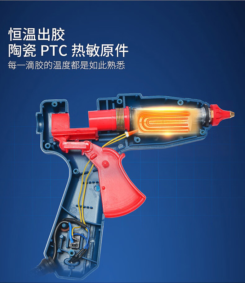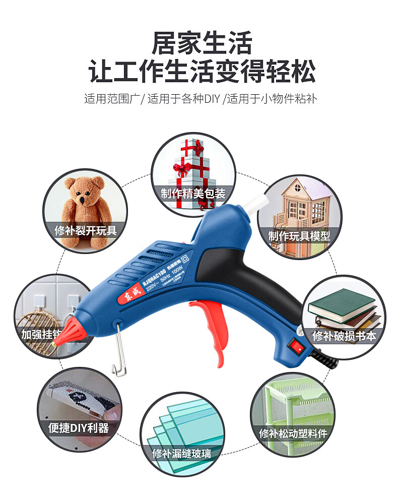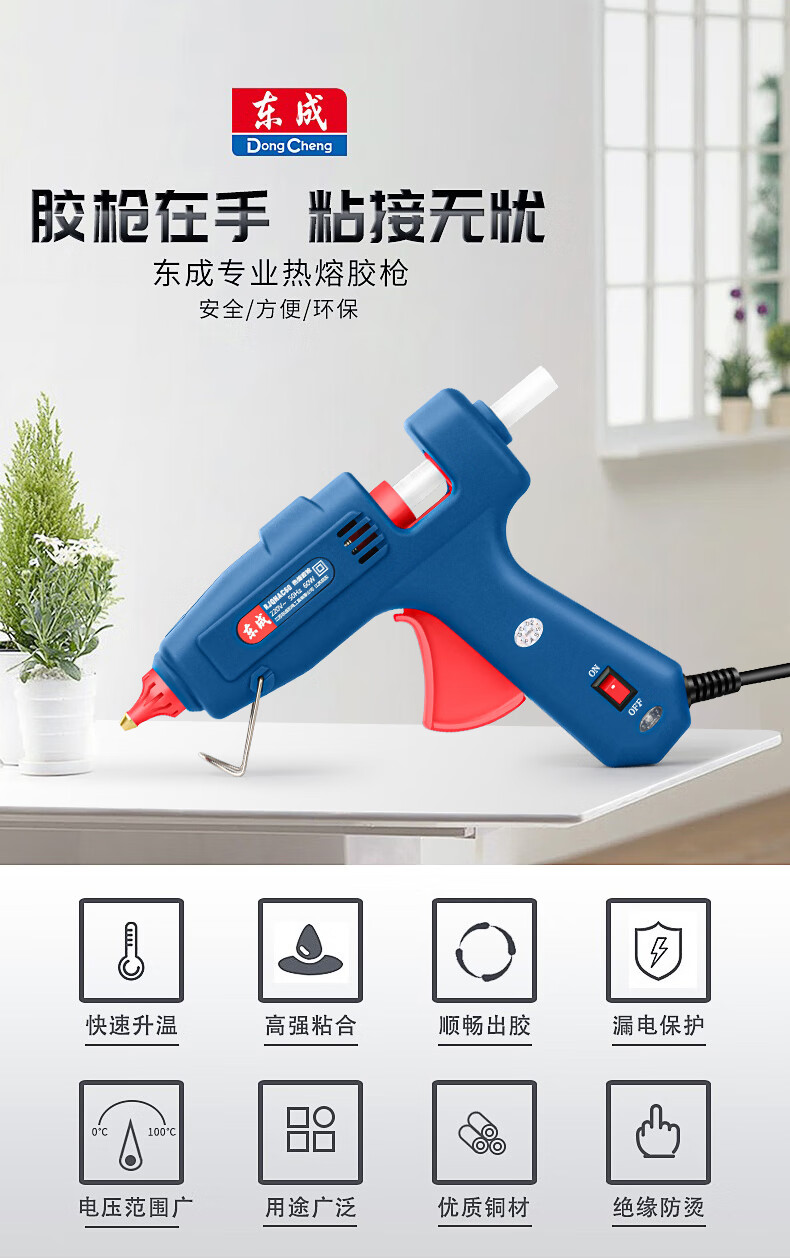 Dongcheng hot melt glue gun children's handmade household hot glue gun high-power hot melt gun hot melt glue stick large 100W leak-proof glue + 15 colors + 30 transparent tape sticks (1